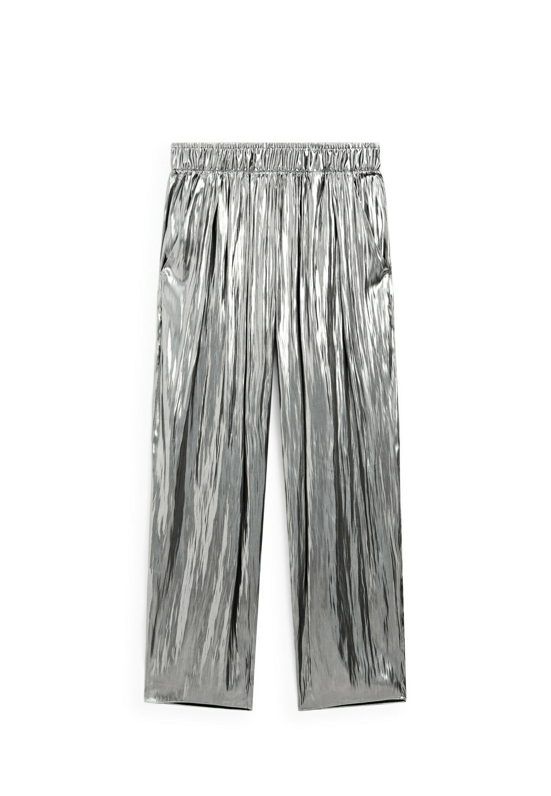 FLOWING METALLIC WITH GATHERED DETAIL – Trousers – silver