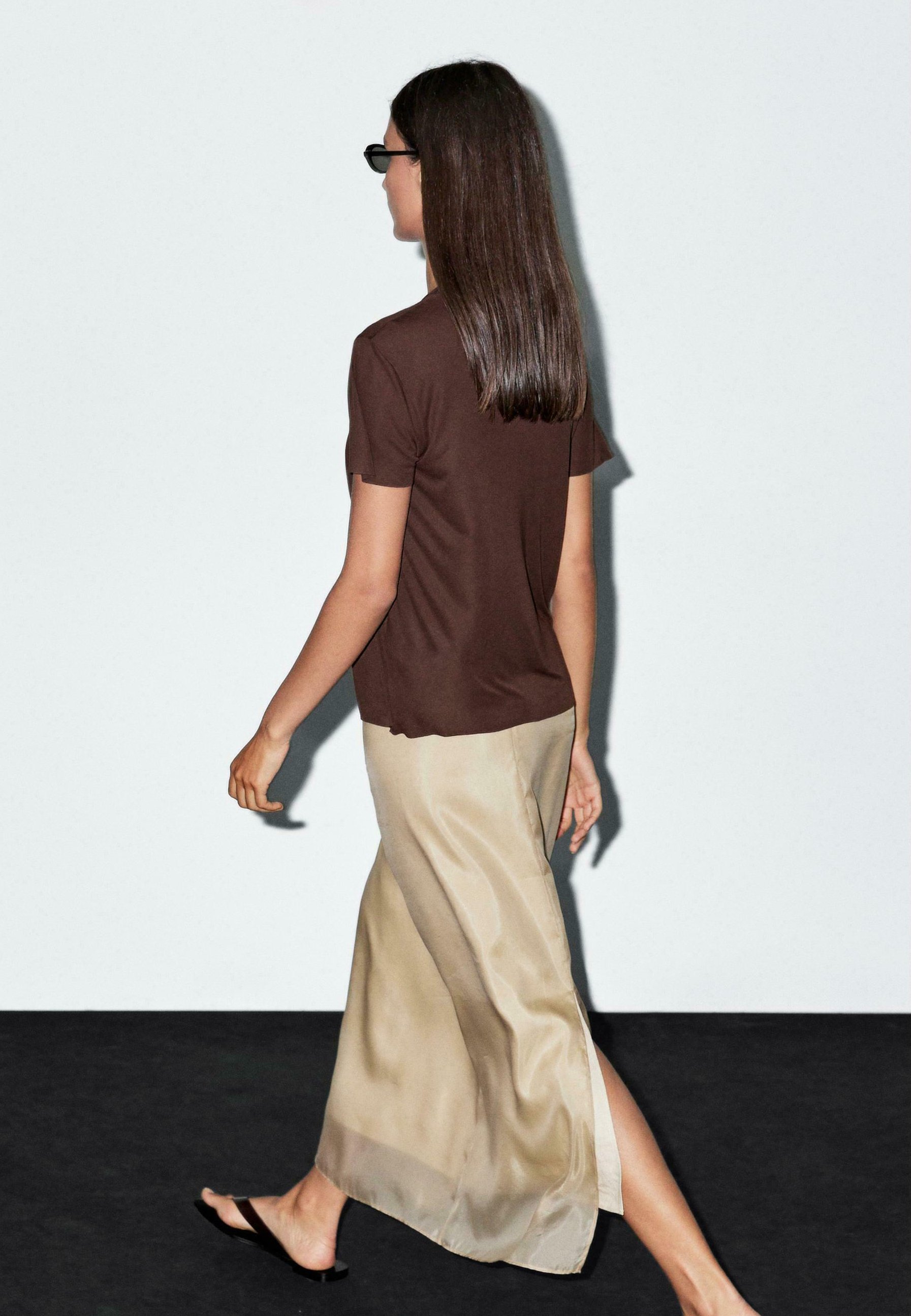 FLOWING SHORT SLEEVE WITH CREW NECK – Basic T-shirt – brown