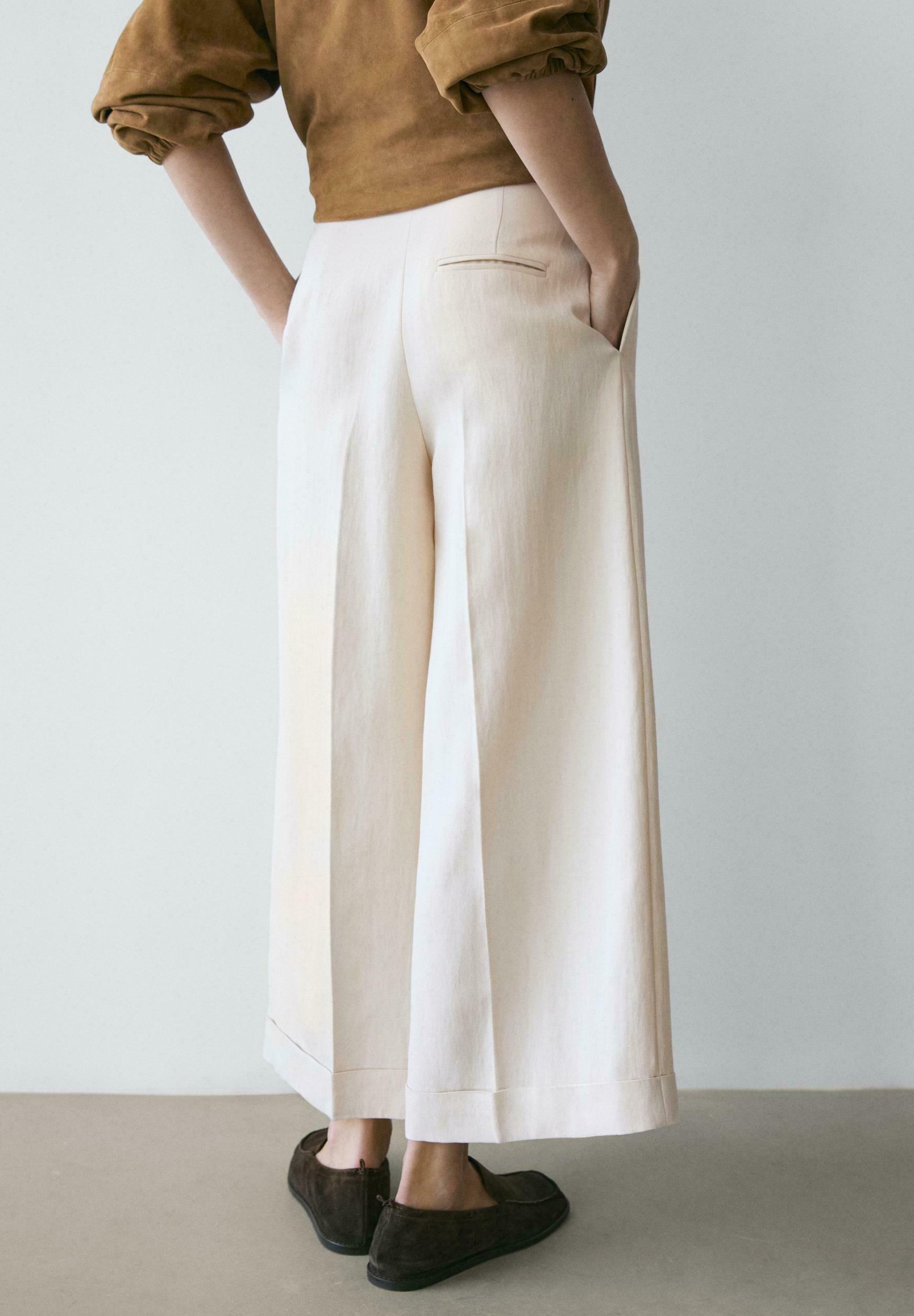 FLOWING WITH TURN-UP HEMS – Trousers – beige