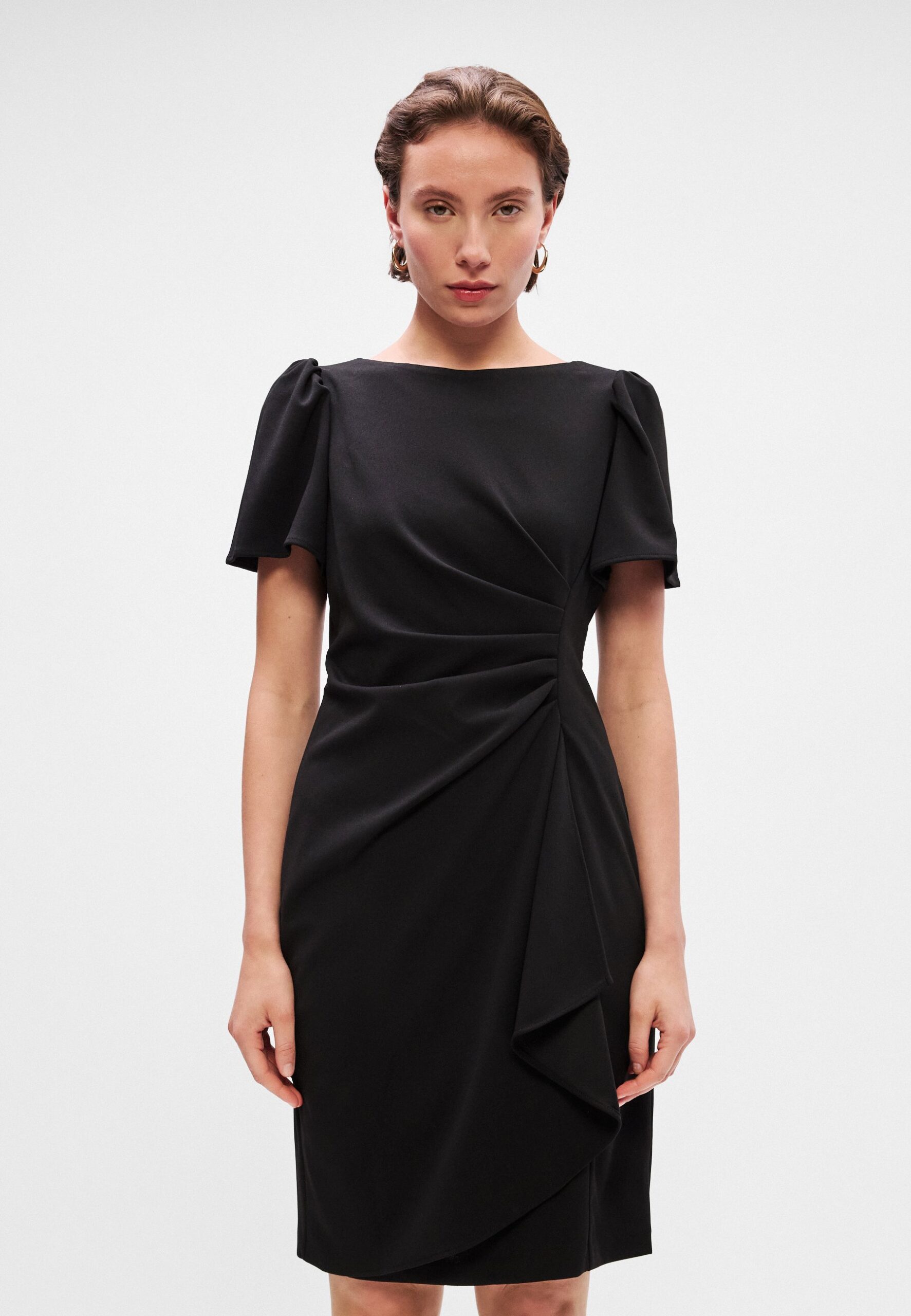 FLUTTER RUCHED BODY SHEATH – Shift dress – black
