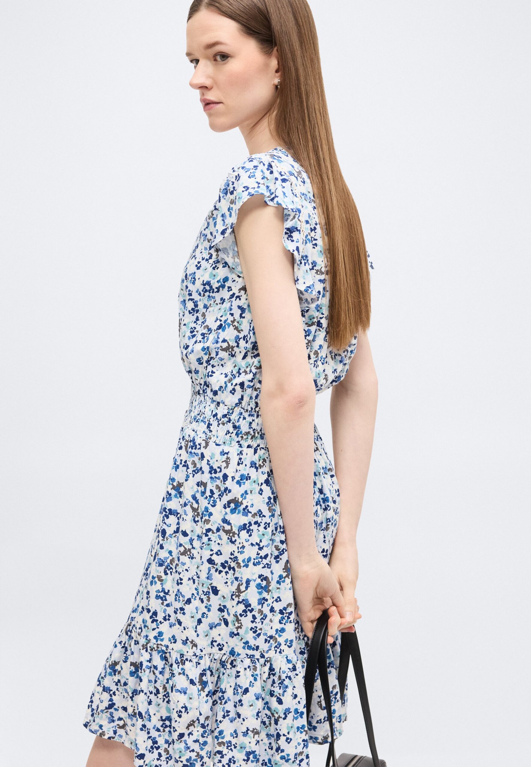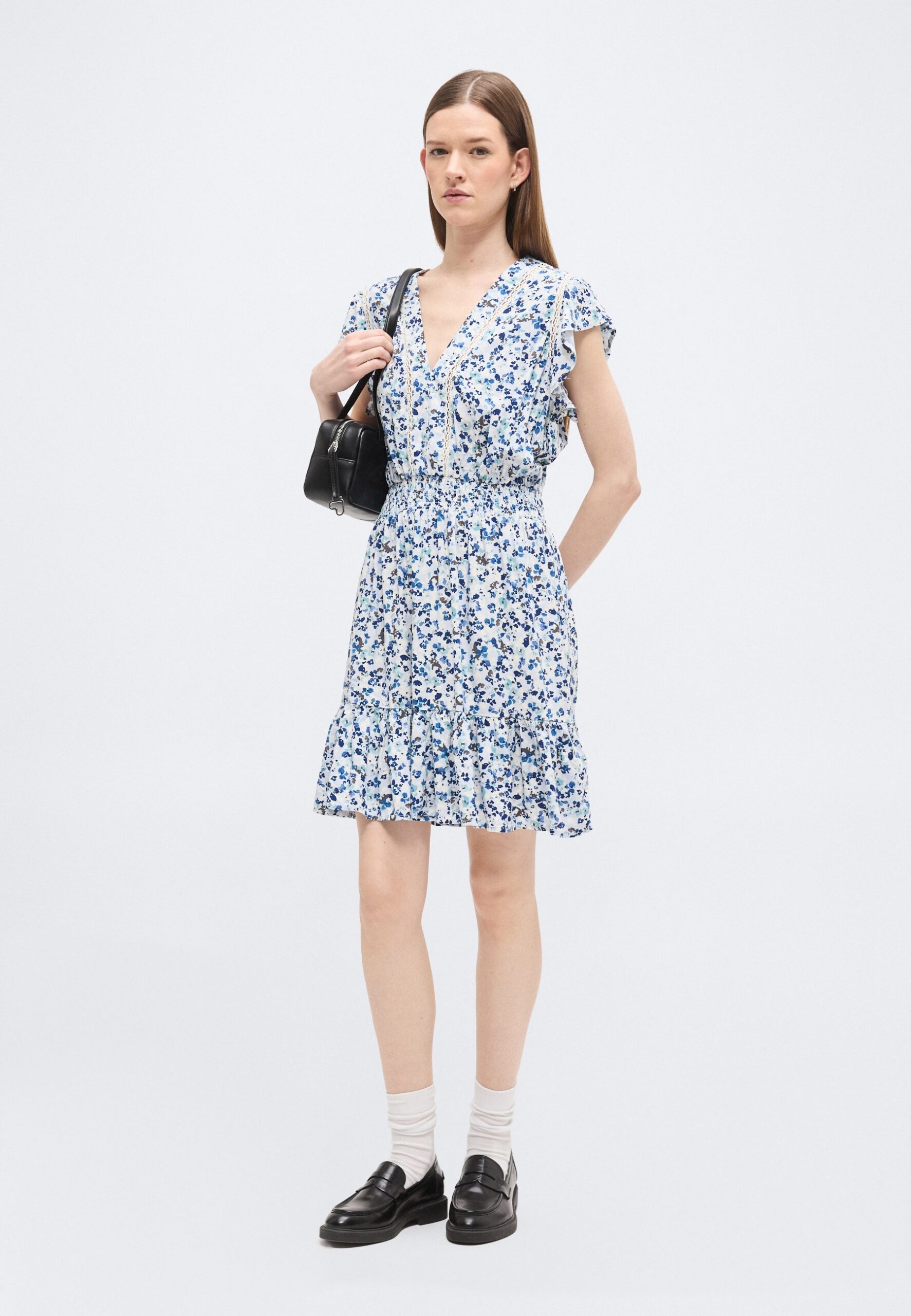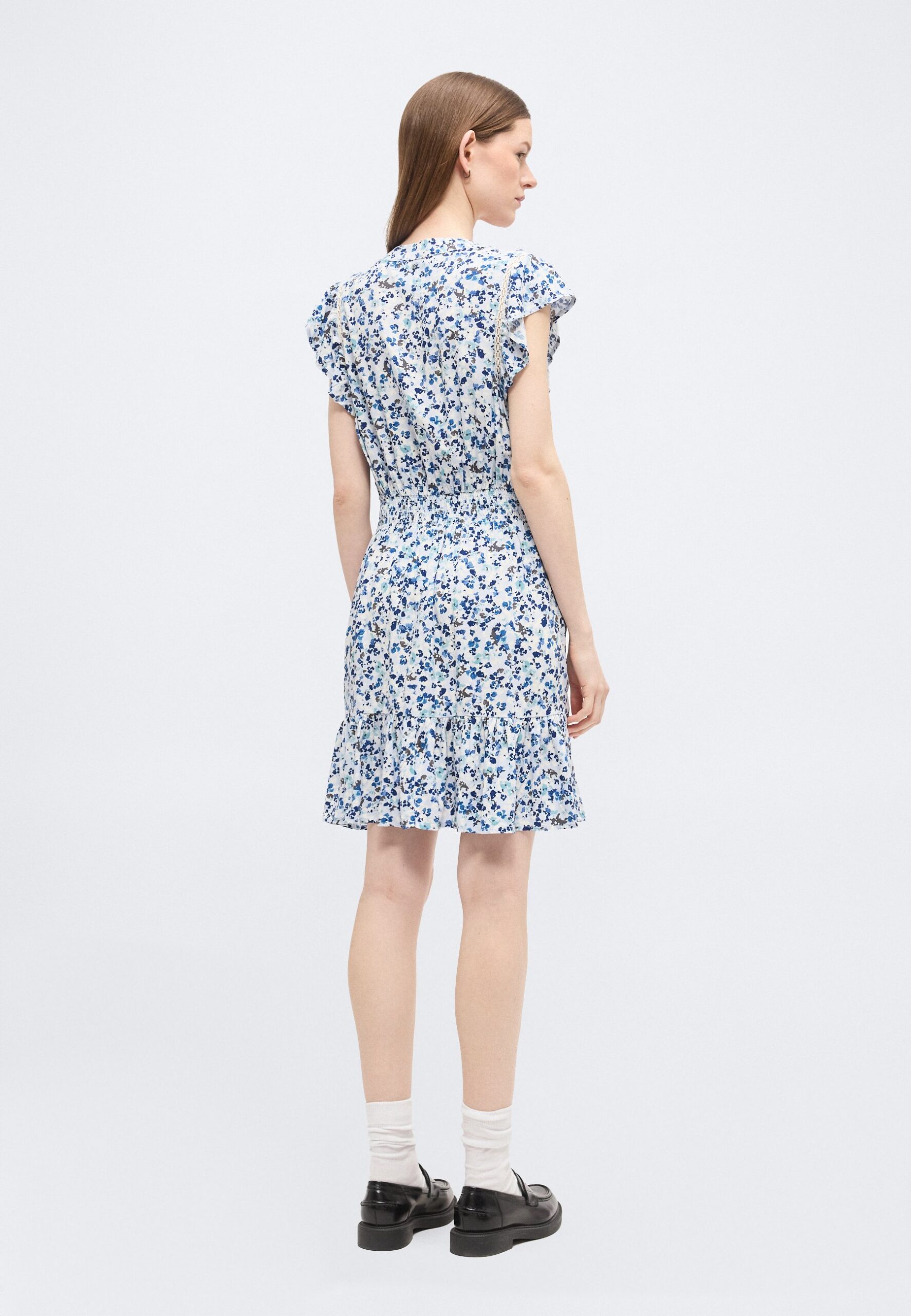 FLUTTER SLEEVE SMOCKED WAIST V NECK DRESS INSETS – Day dress – coastline