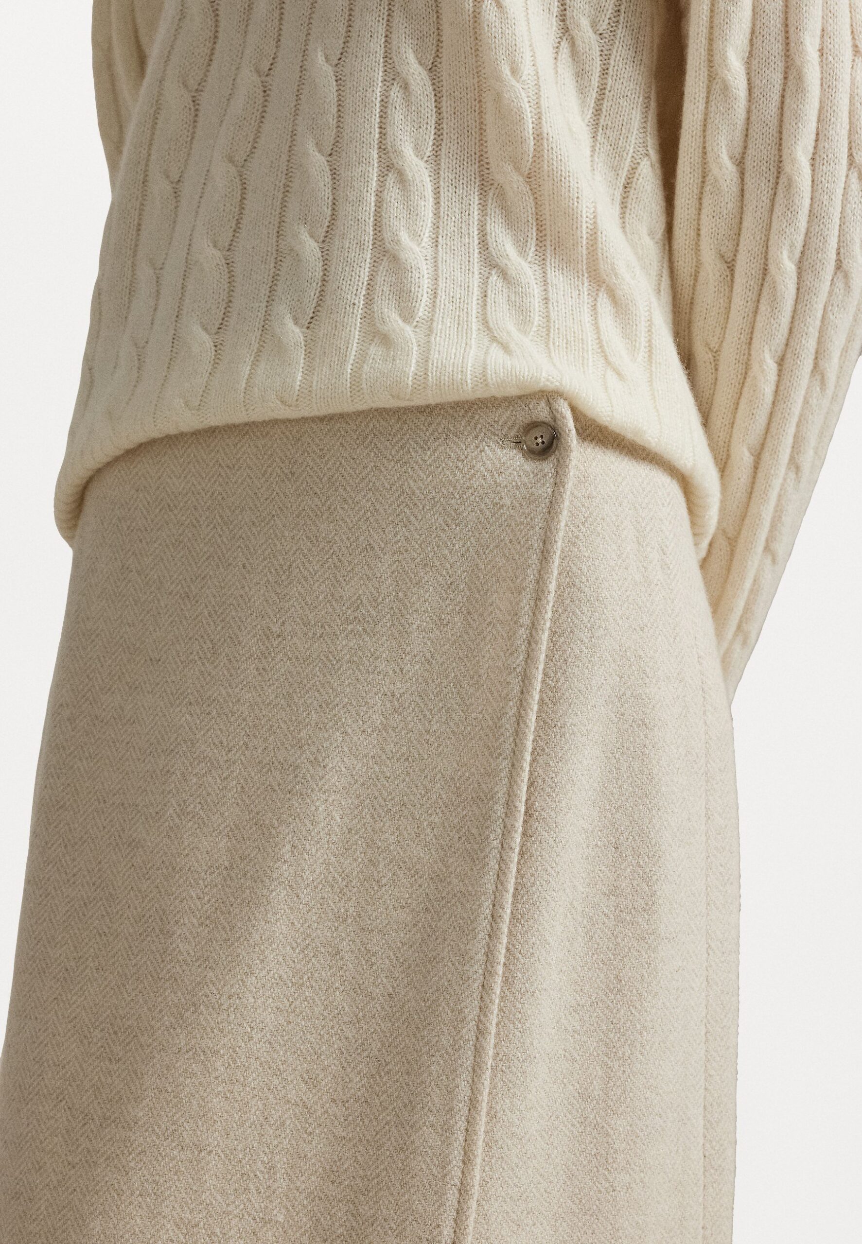 FRINGE HERRINGBONE WRAP SKIRT – Maxi skirt – cream
