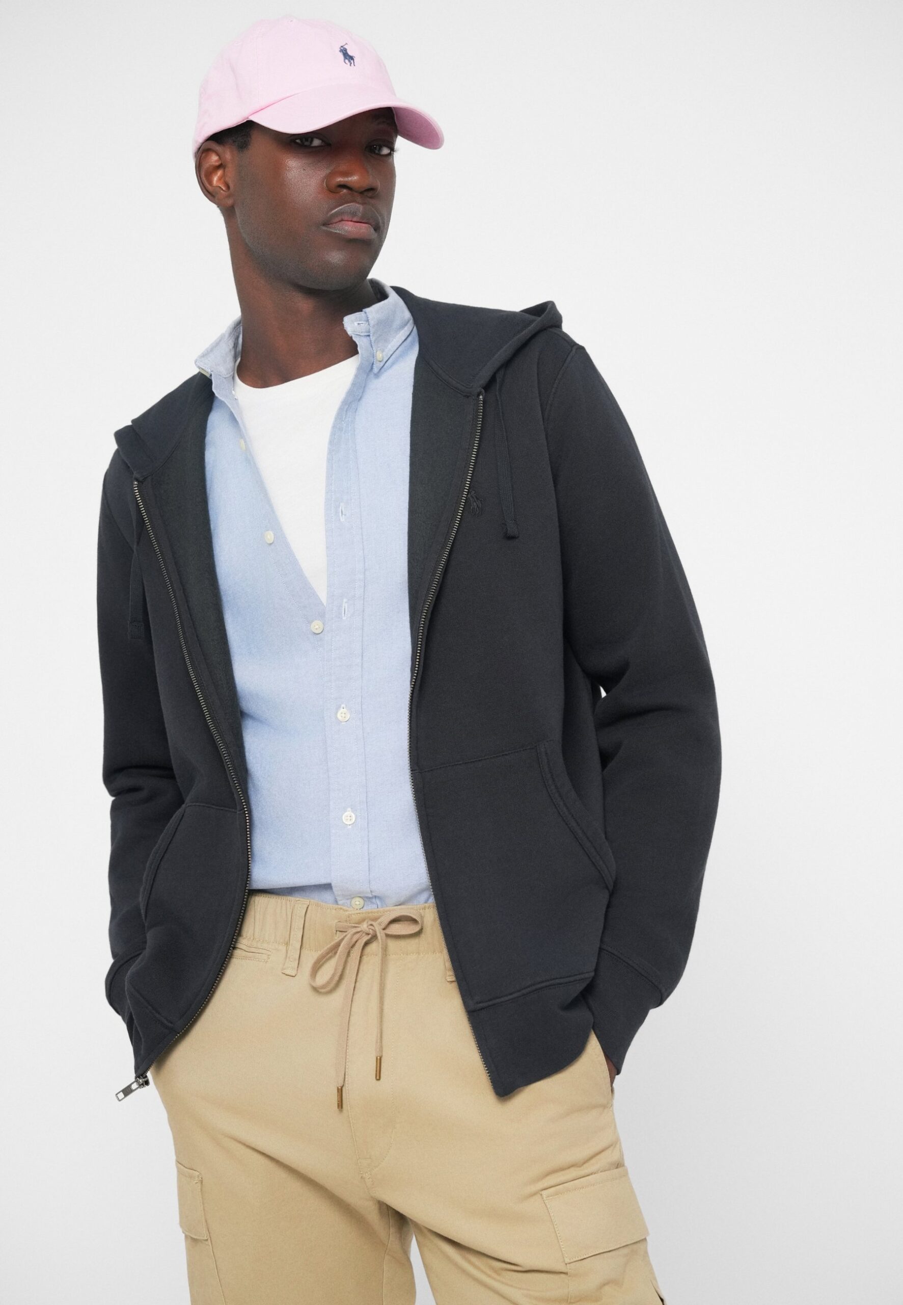 GARMENT-DYED FLEECE FULL-ZIP HOODIE – Zip-up sweatshirt – black