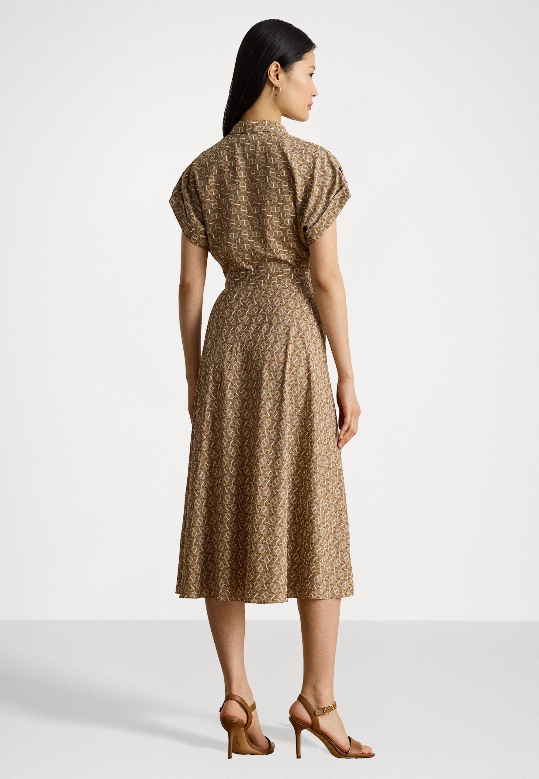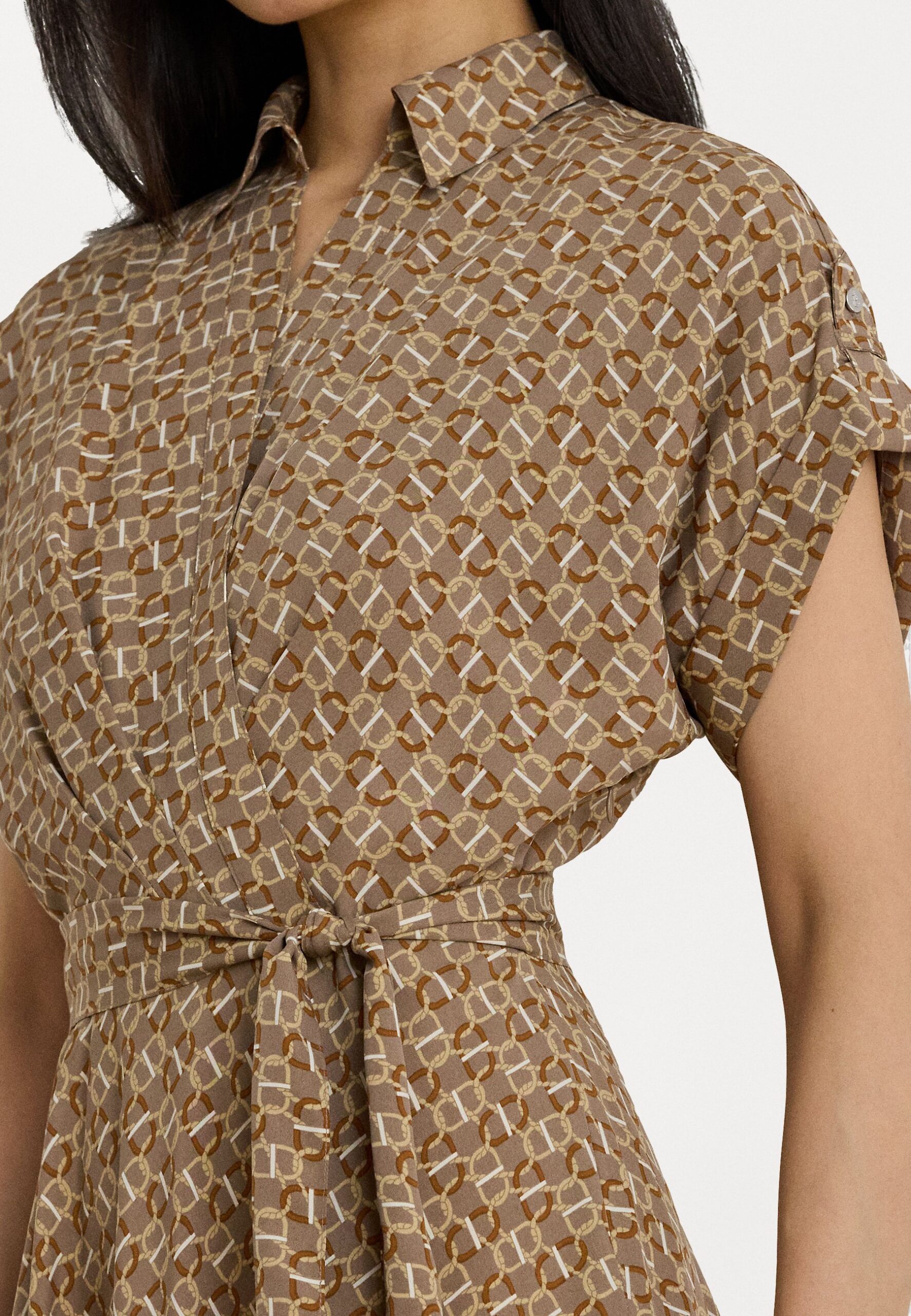 GEO PRINT BELTED CREPE DRESS – Shirt dress – taupe