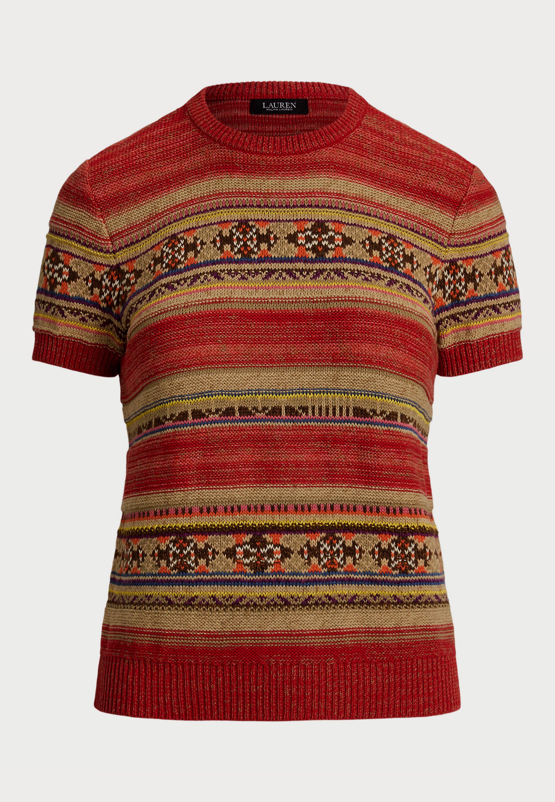 GEO STRIPED SHORT SLEEVE SWEATER – Print T-shirt – red/multi-colored
