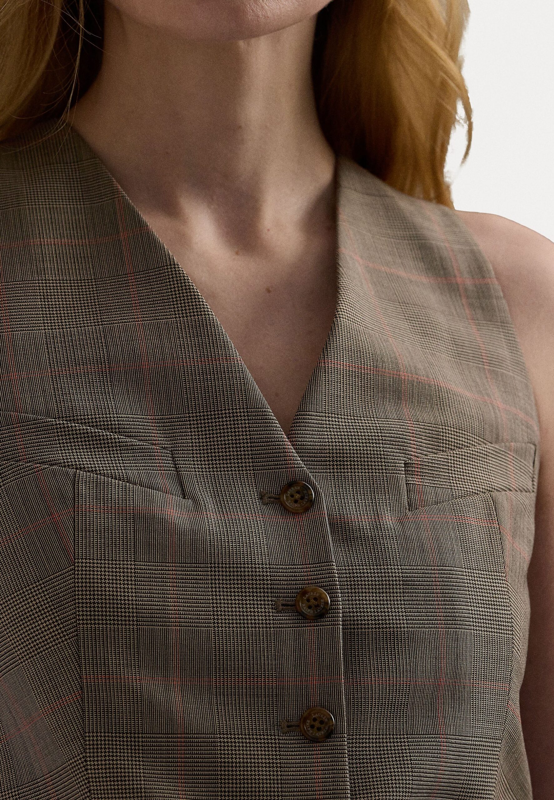 GLEN CHECK STRETCH WOOL WAISTCOAT – Waistcoat – brown multi