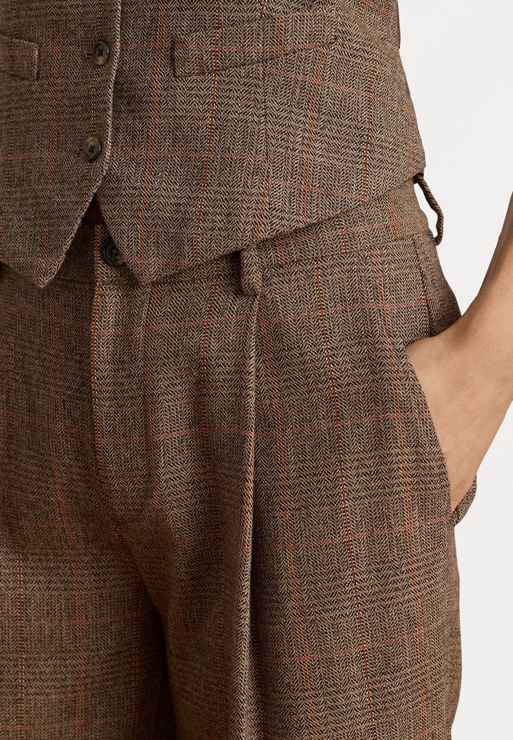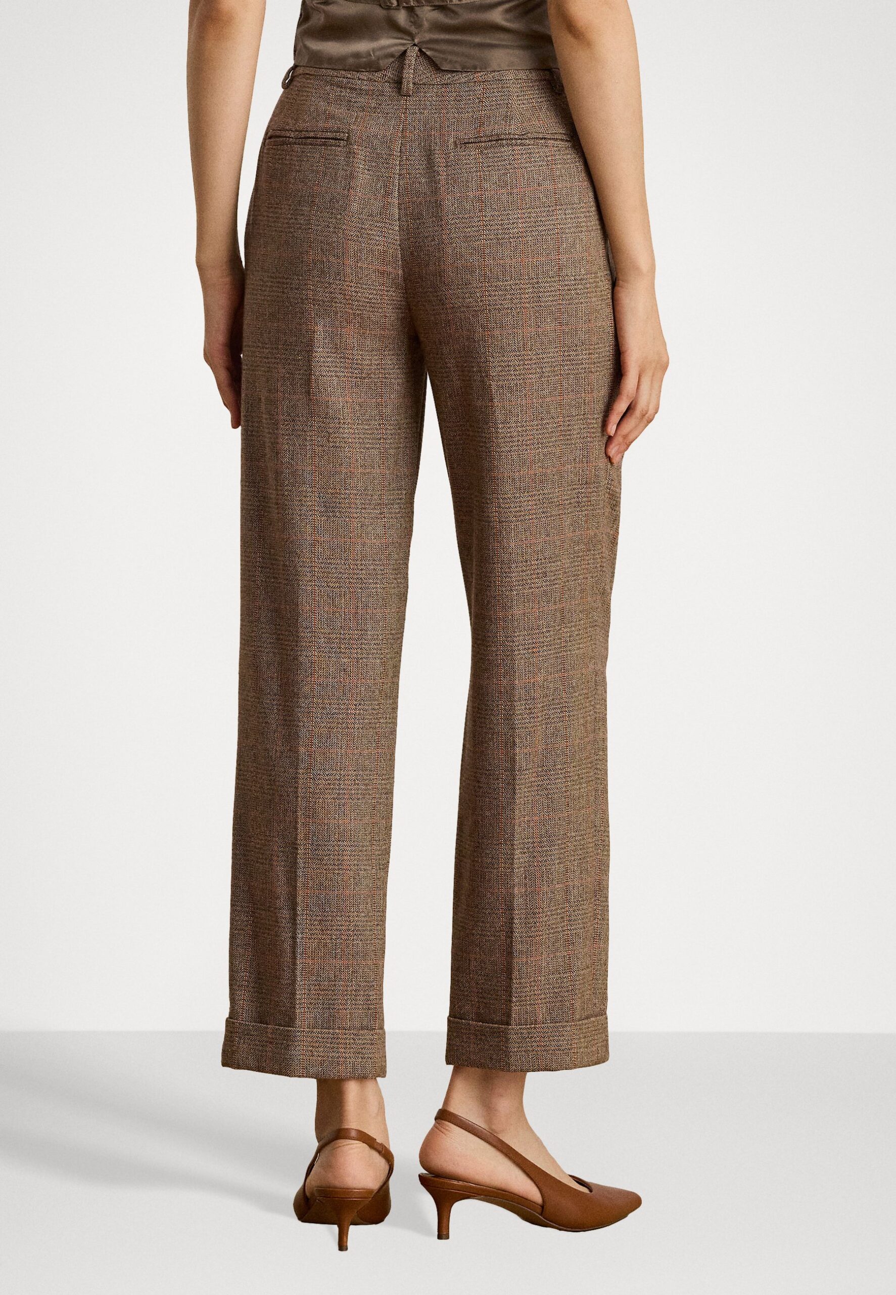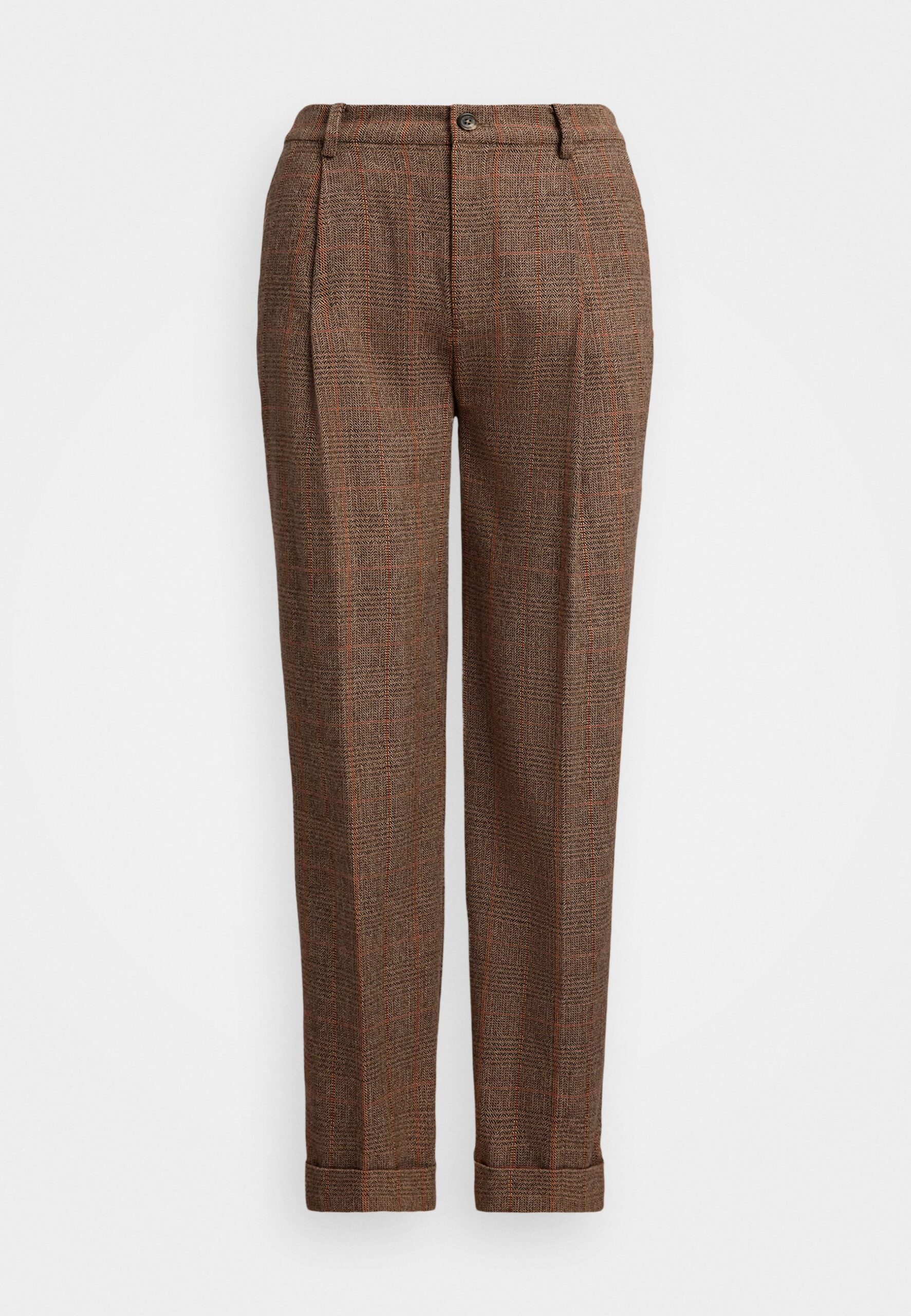GLEN PLAID PLEATED CROPPED PANT – Trousers – brown/cinnamon/taupe multi