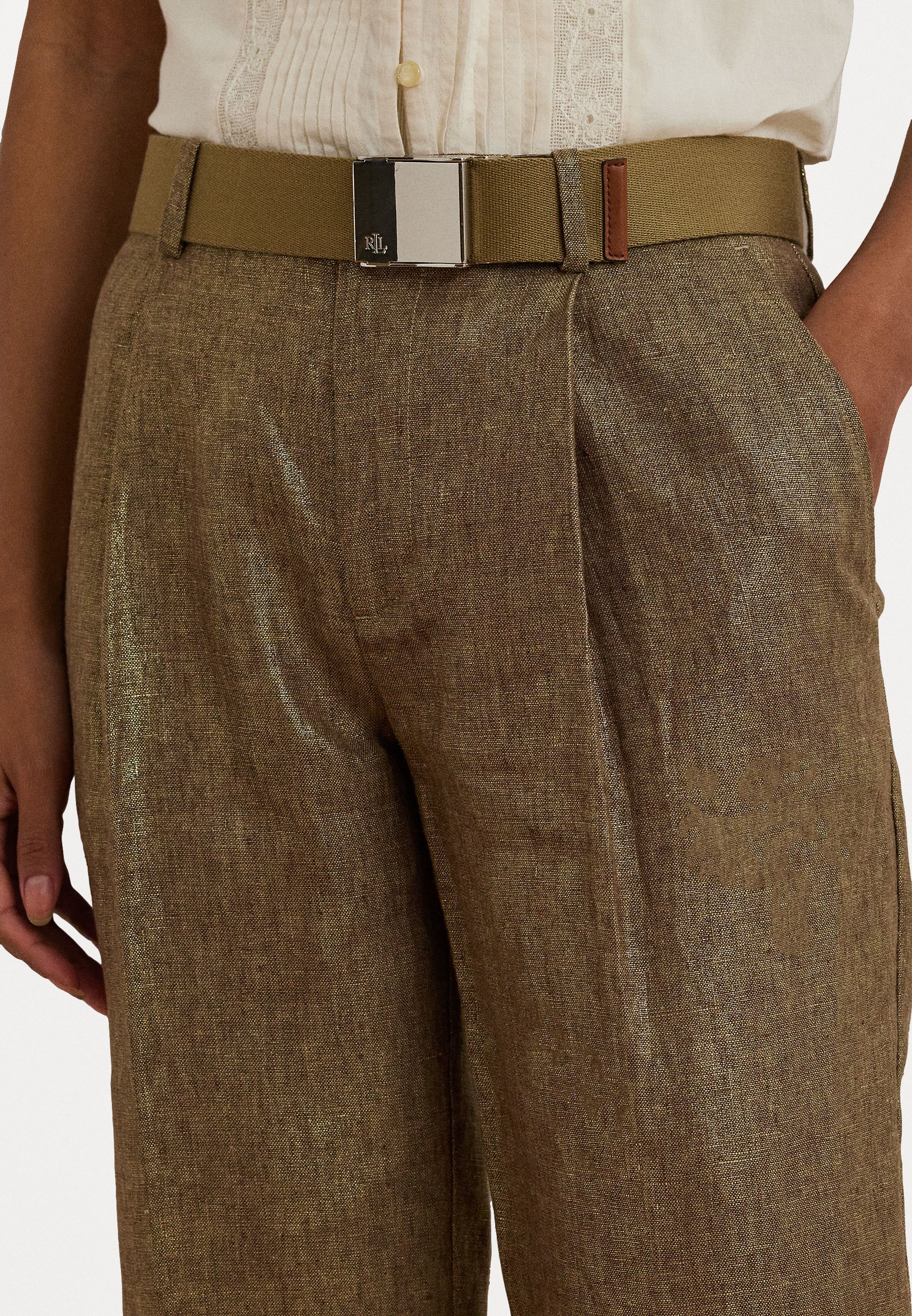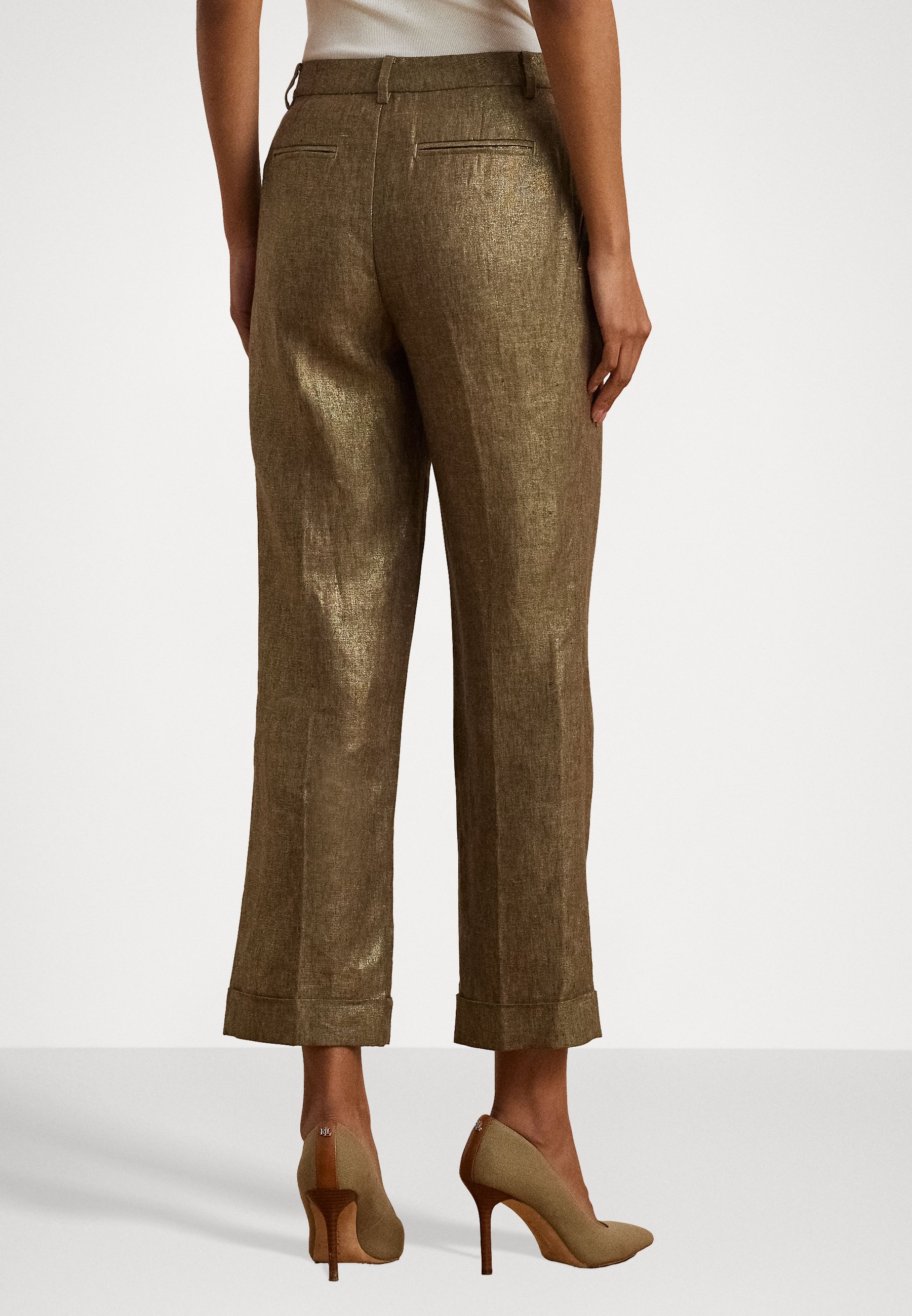 GLEN PLAID PLEATED CROPPED PANT – Trousers – metallic bronze