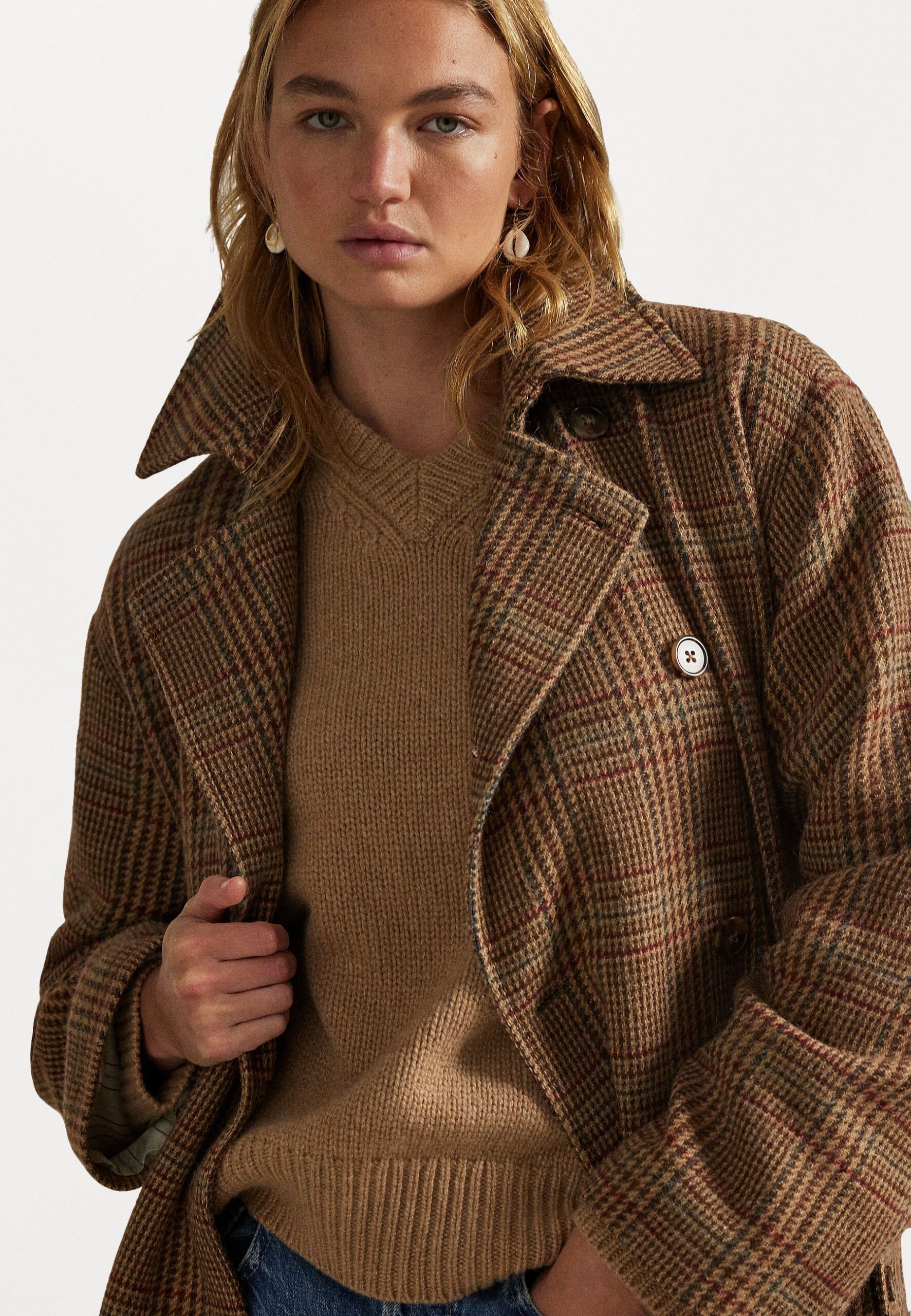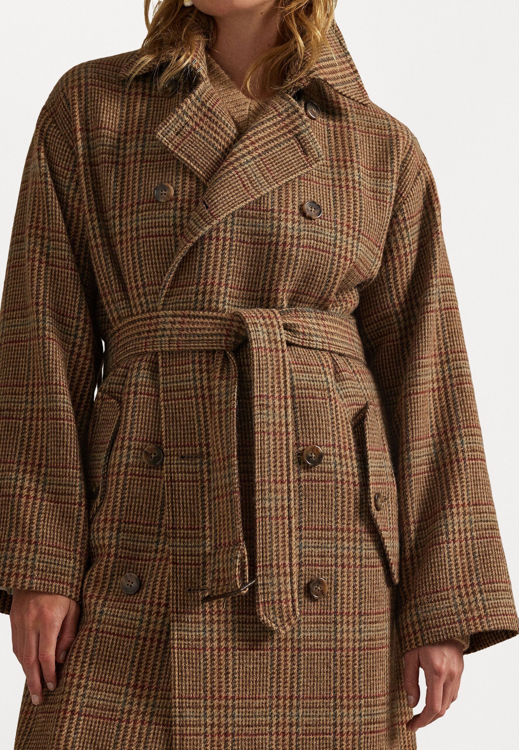 GLEN PLAID WOOL TRENCH COAT – Trenchcoat – brown