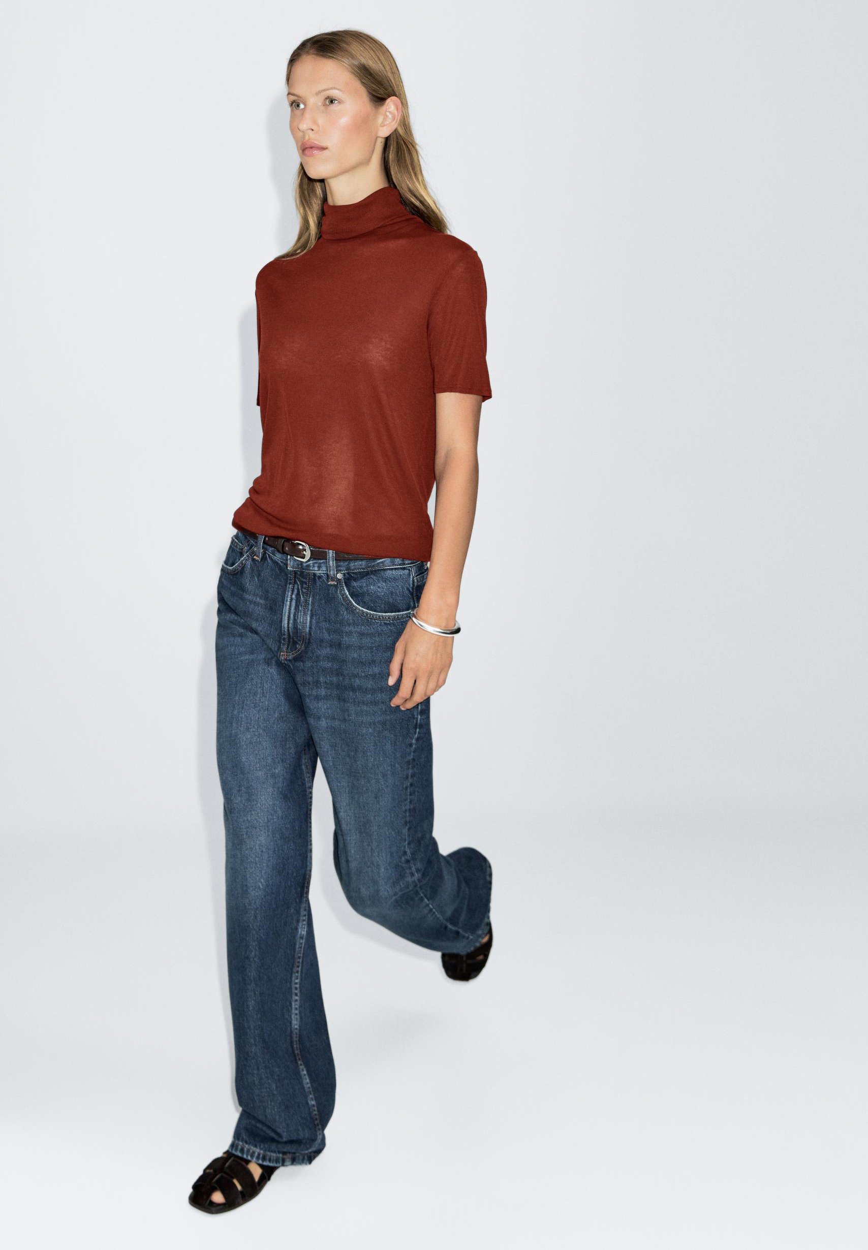 HIGH NECK WITH SHORT SLEEVES – Basic T-shirt – red