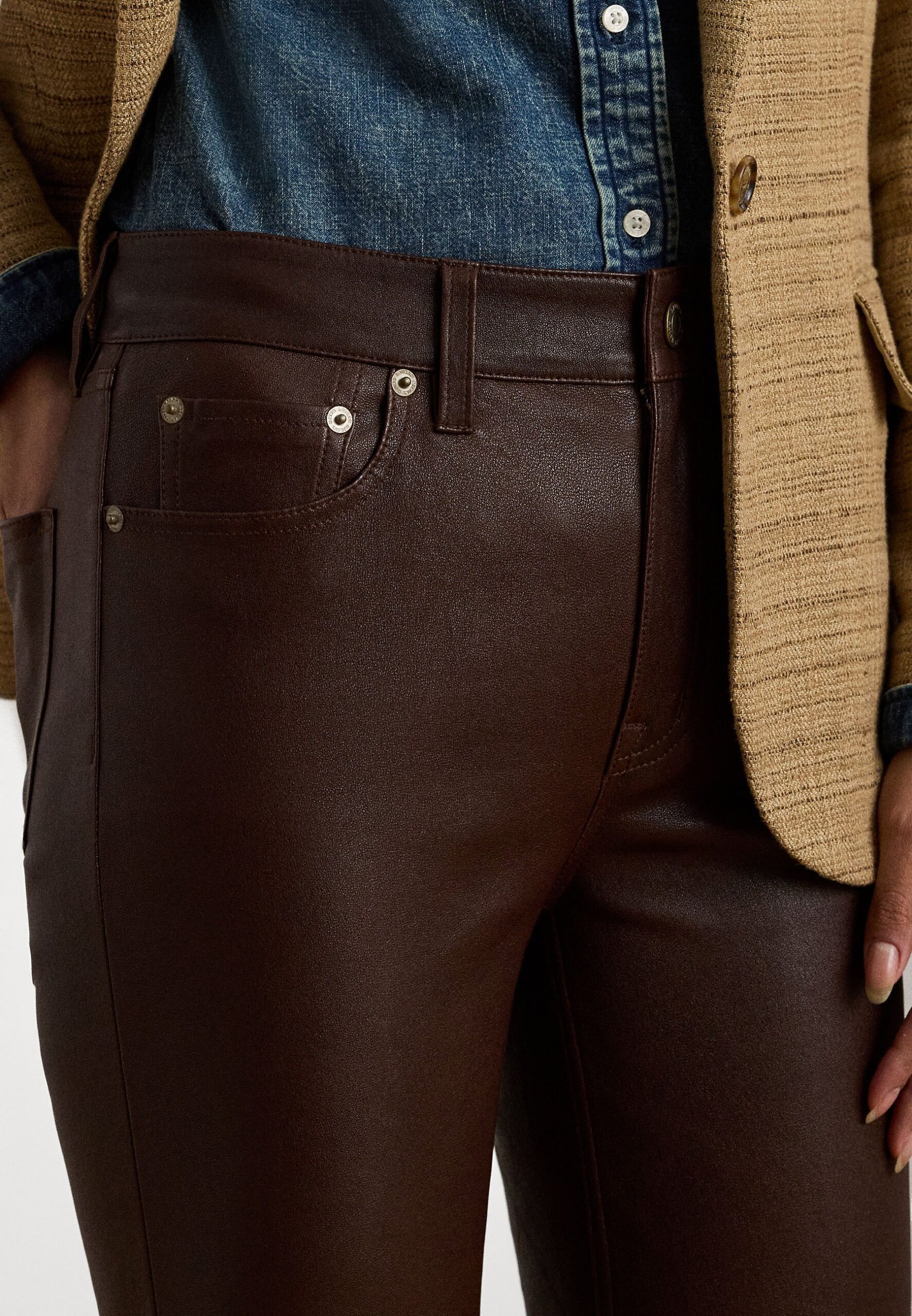 HIGH RISE LAMBSKIN STRAIGHT ANKLE TROUSERS – Leather trousers – dark hickory