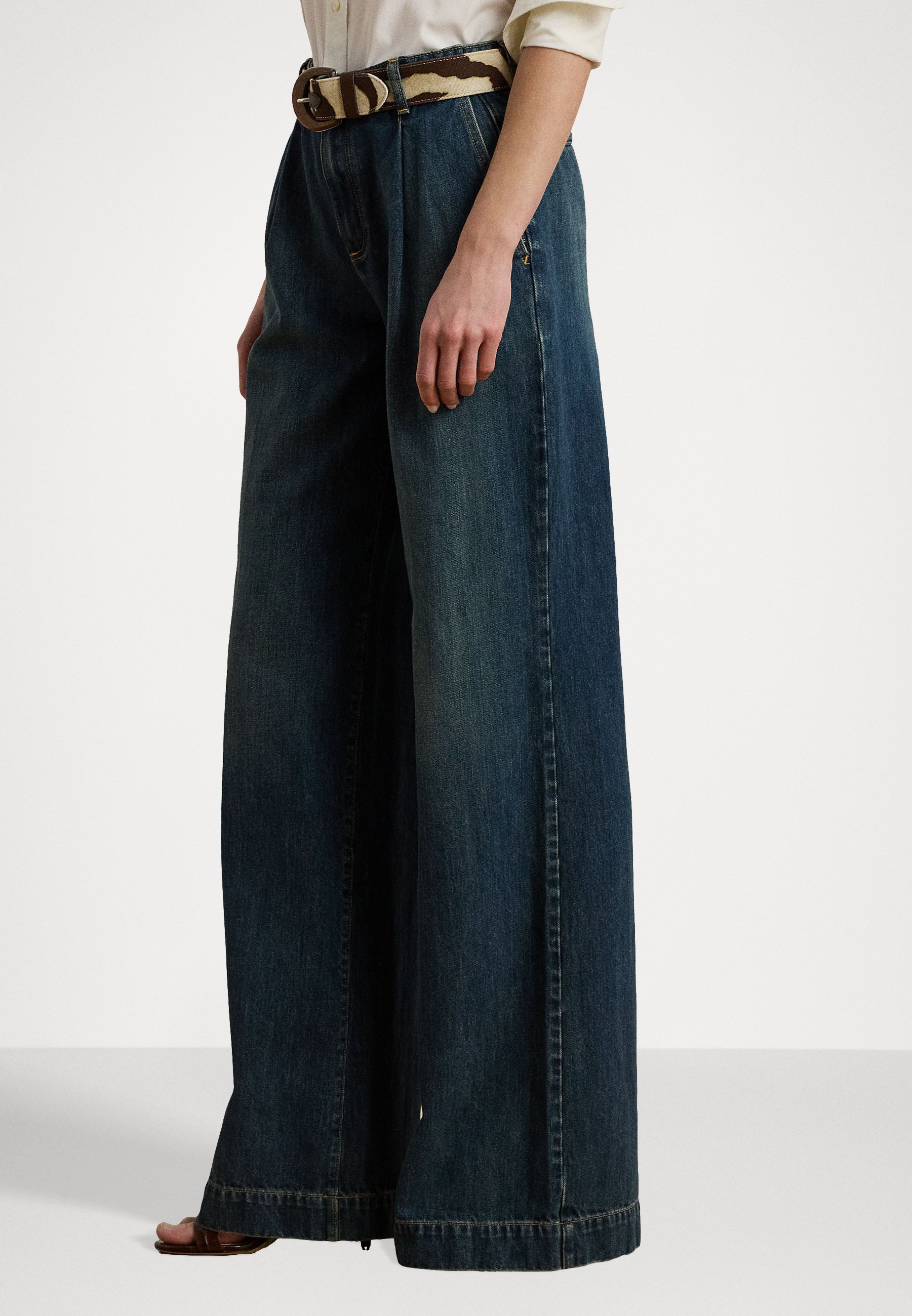 High Rise Pleated Wide Leg Jean – Relaxed fit jeans – haze wash
