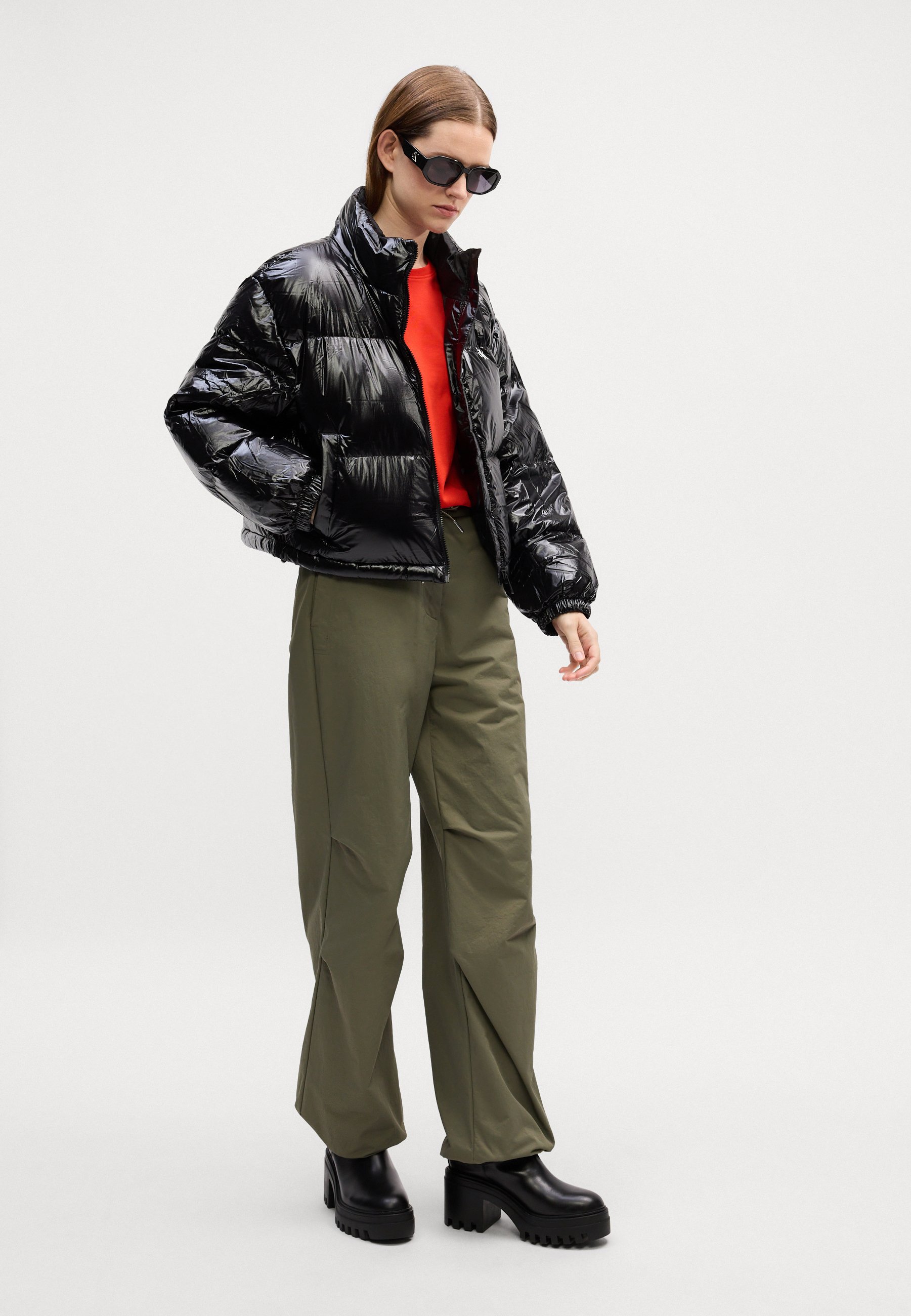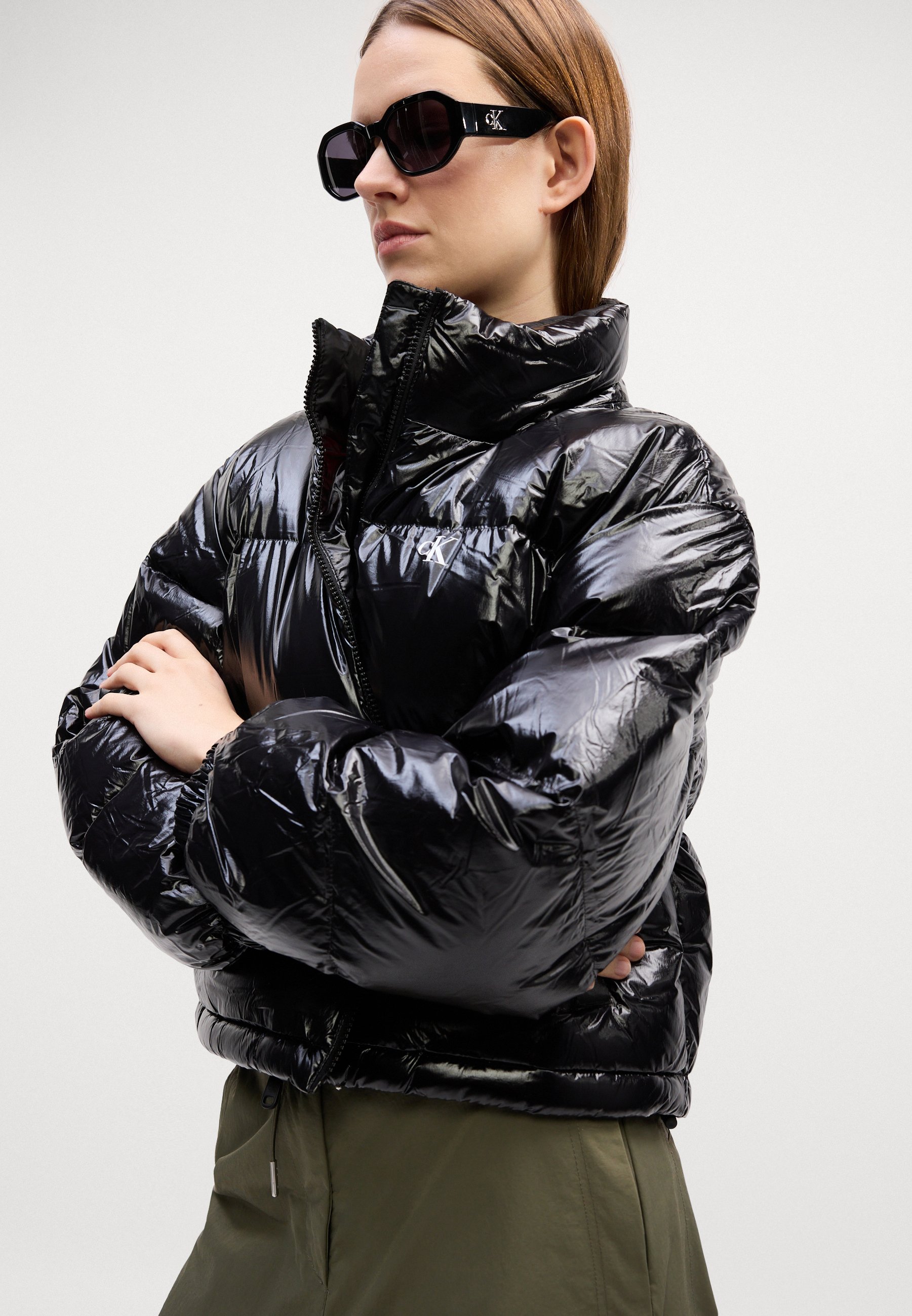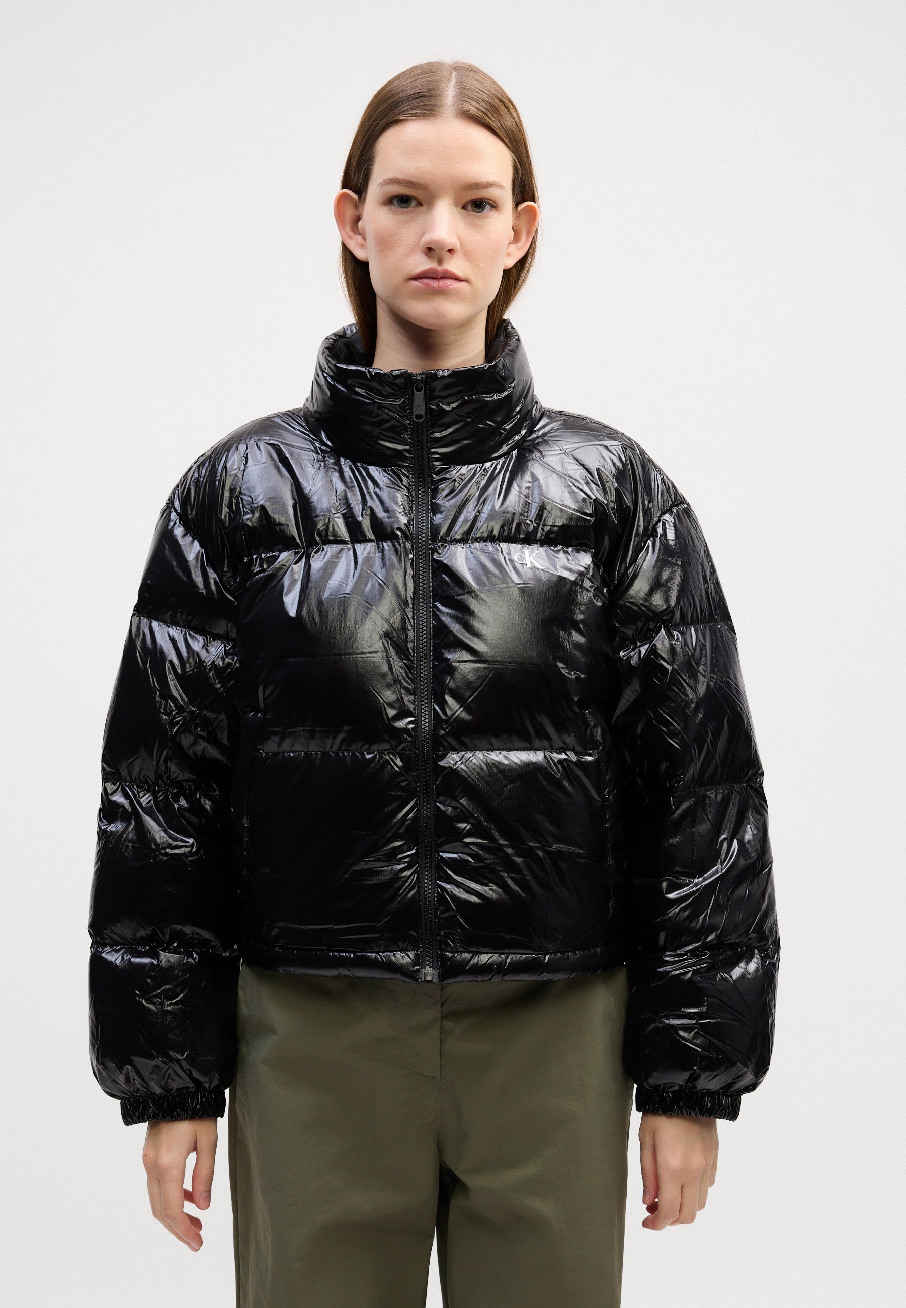 HIGH SHINE CROP JACKET – Down jacket – black