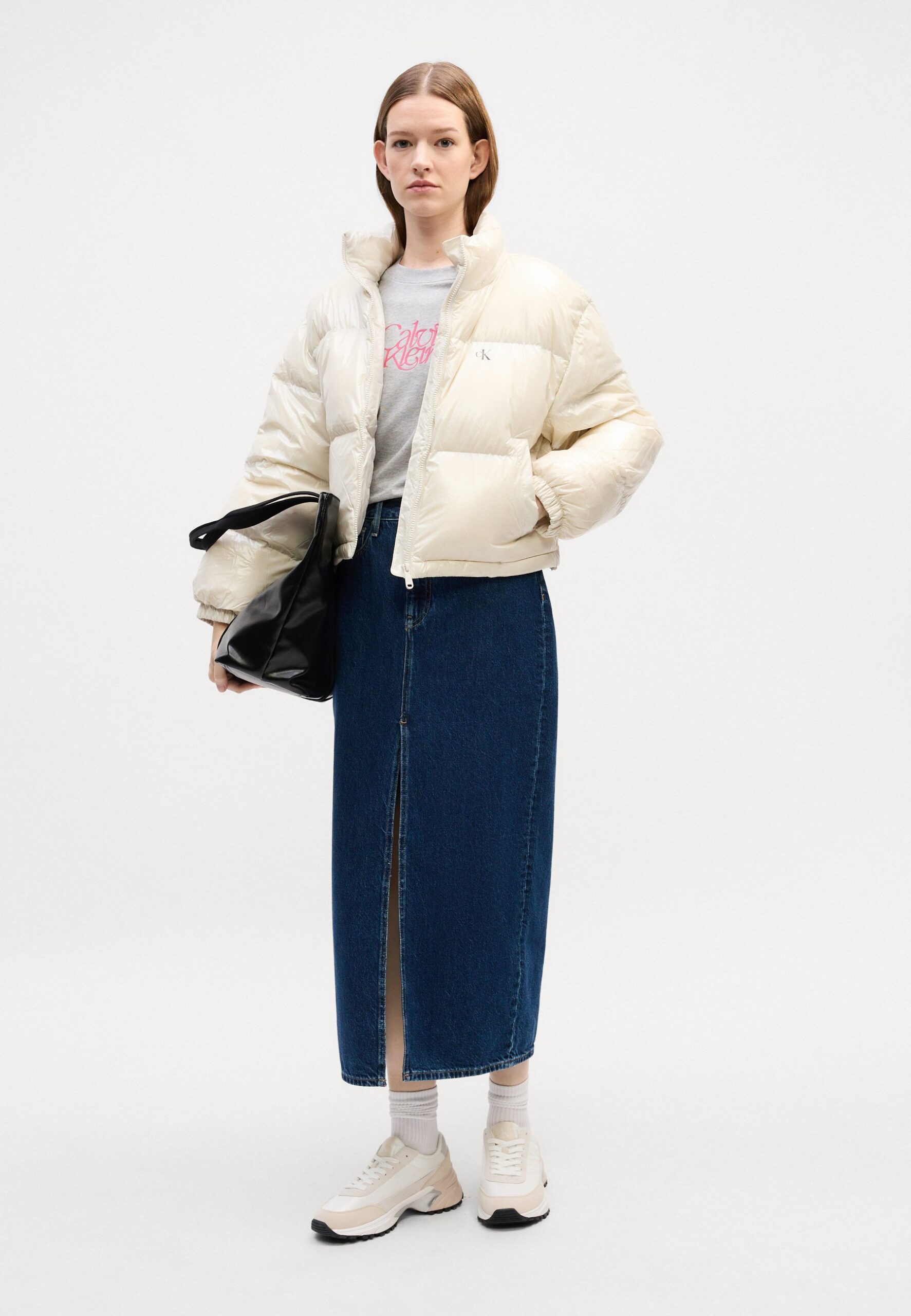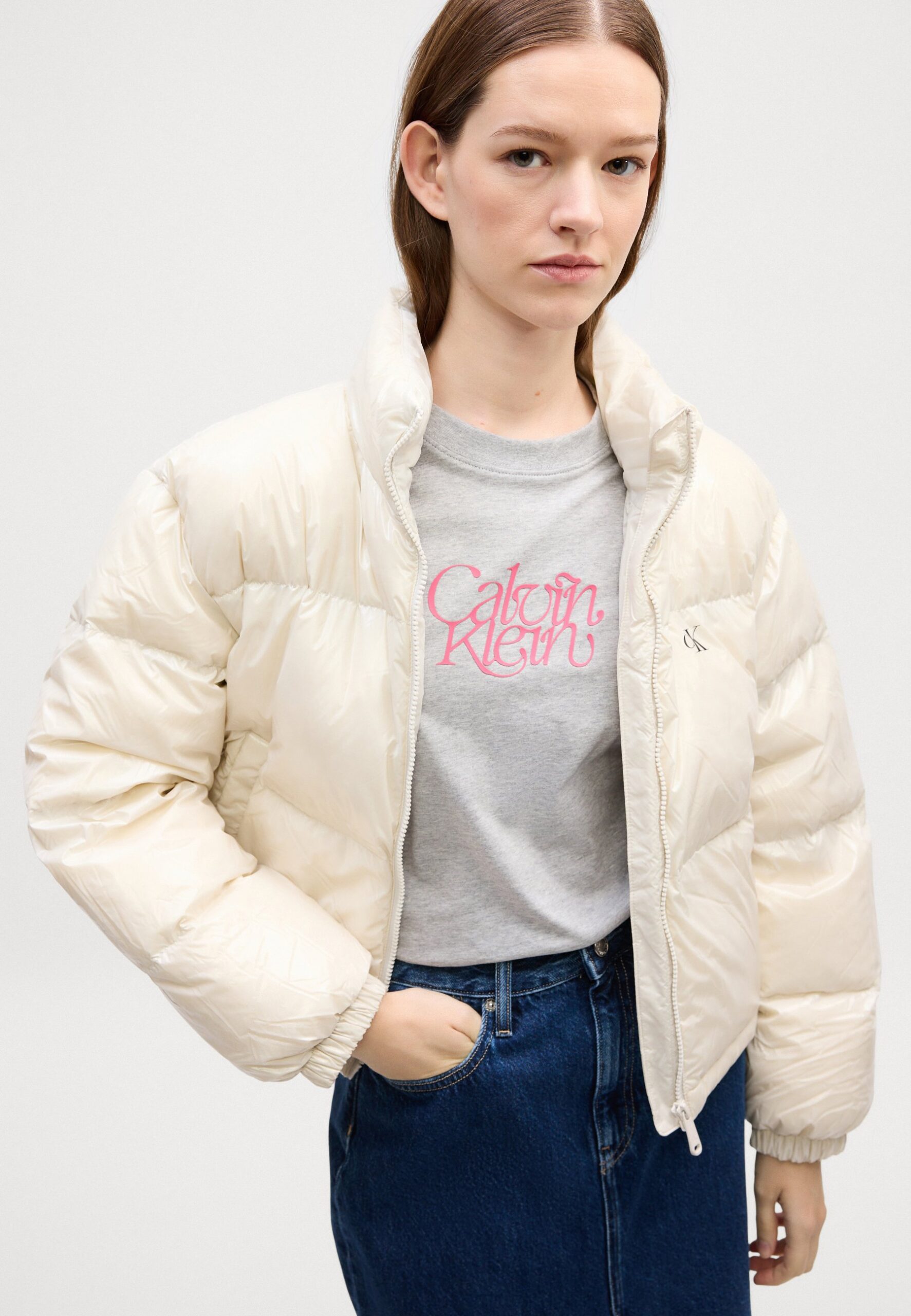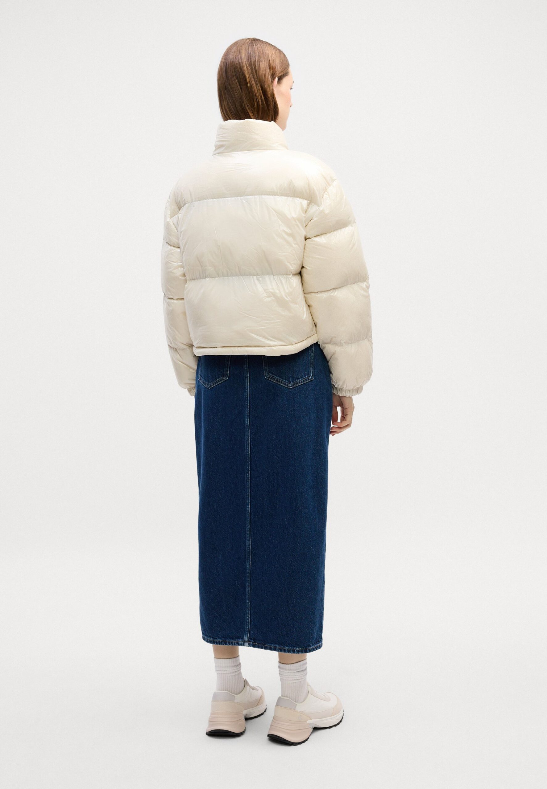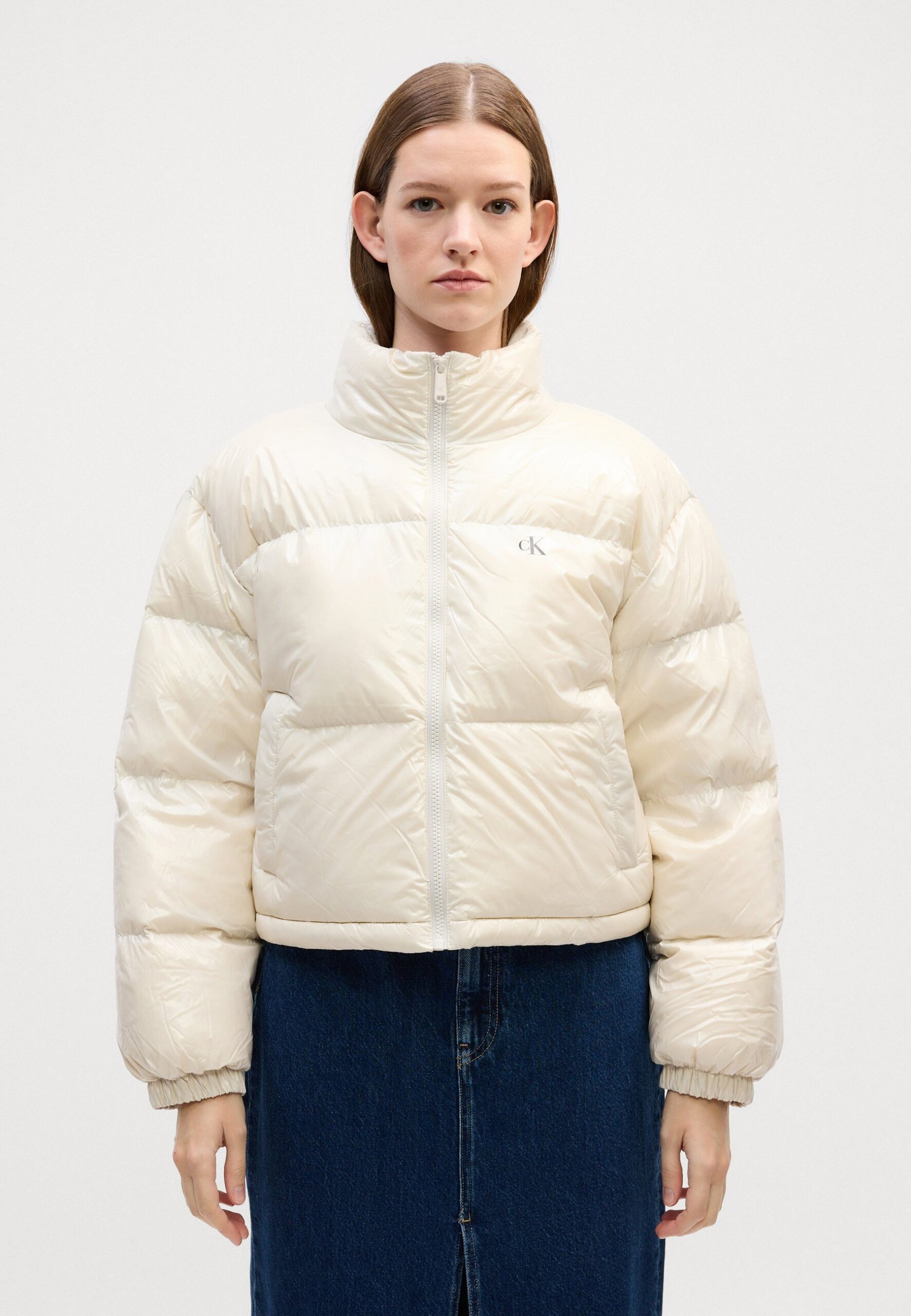 HIGH SHINE CROP JACKET – Down jacket – chalk
