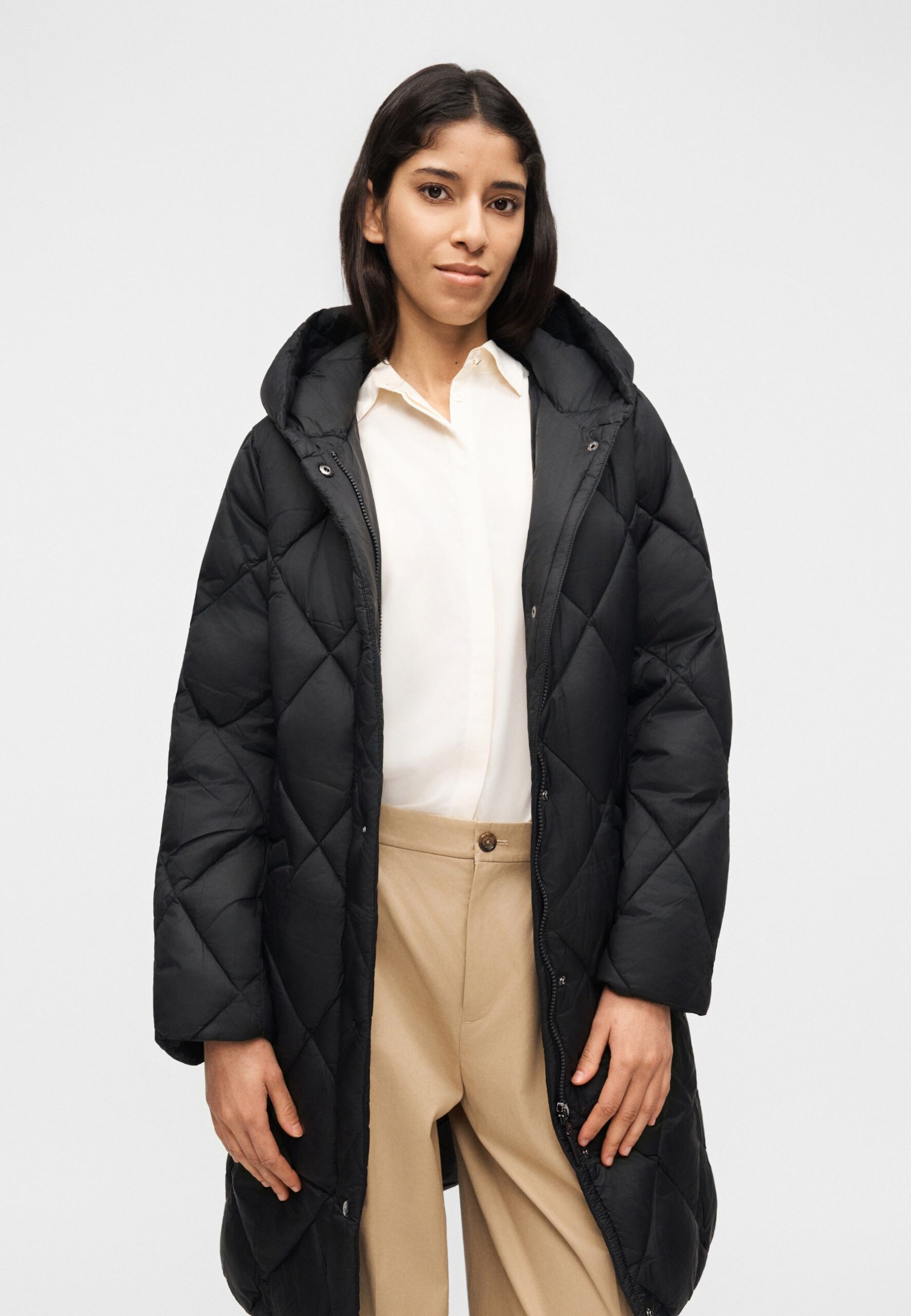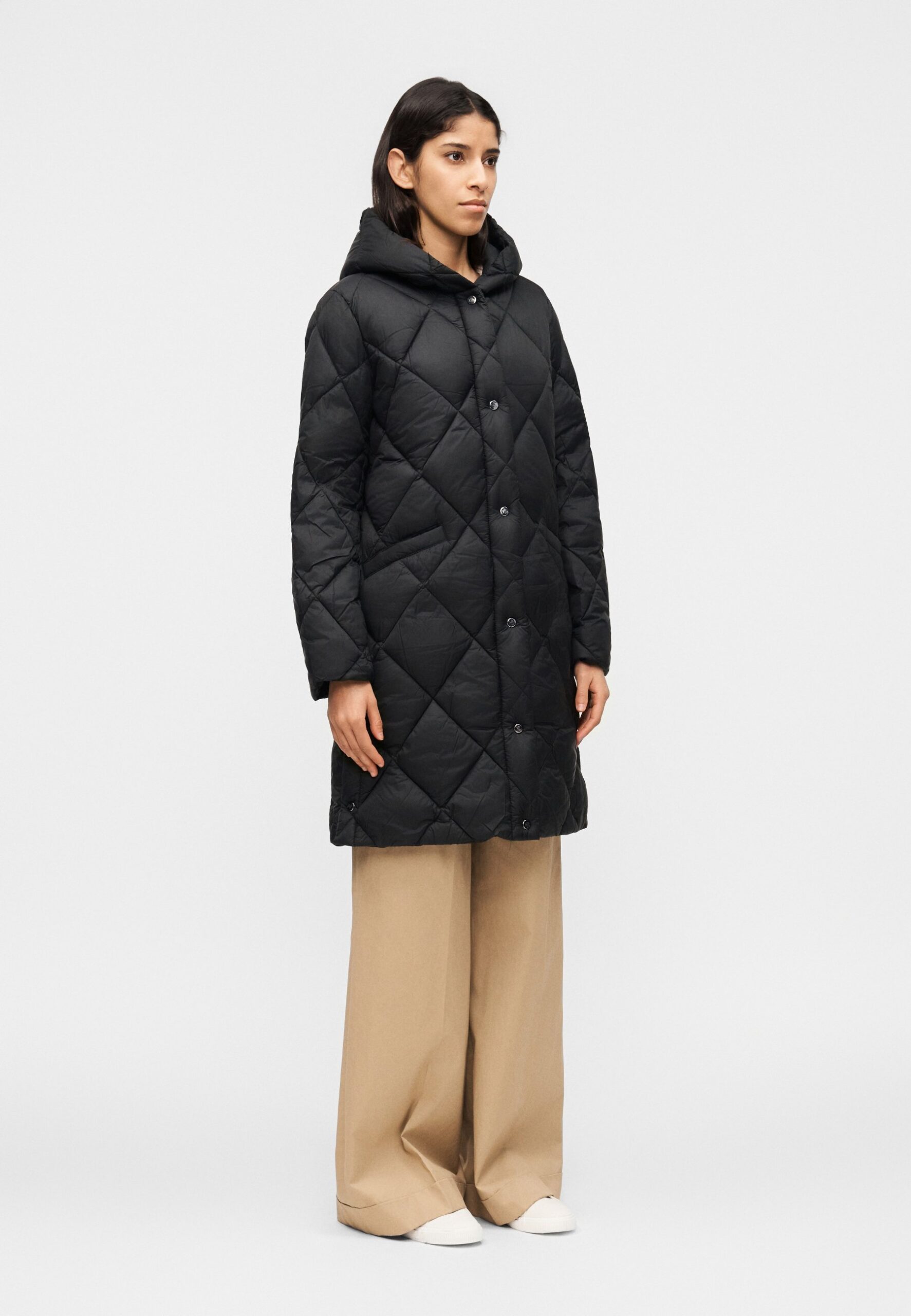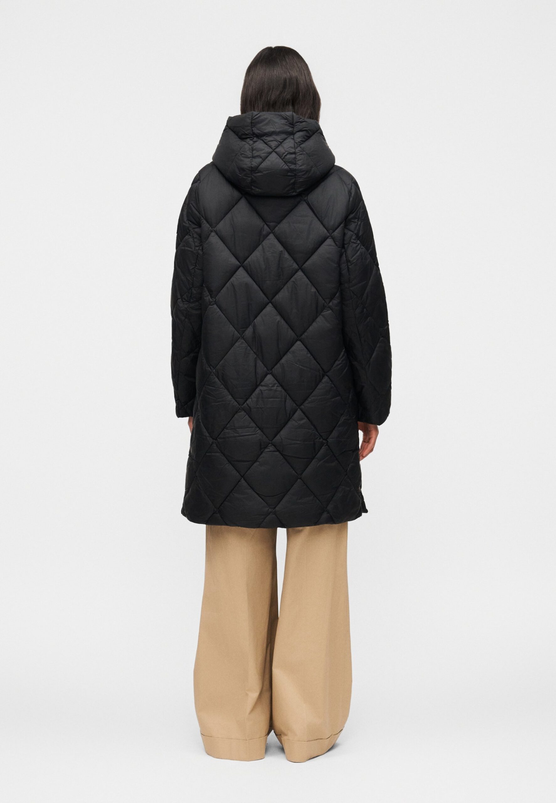 HOODED DIAMOND QUILTED COAT – Down coat – black