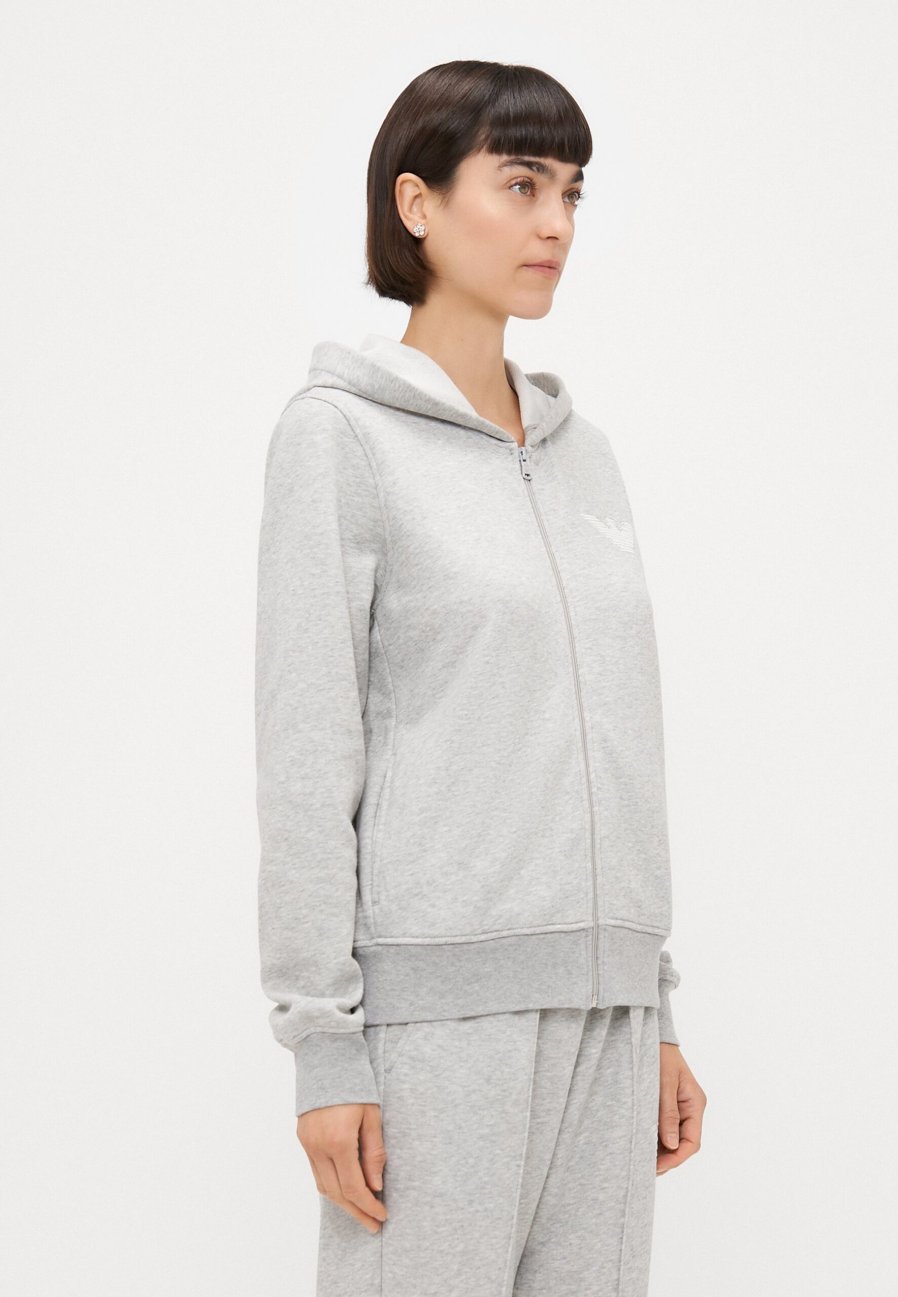 HOODED FULL ZIP – Pyjama top – warm grey melange