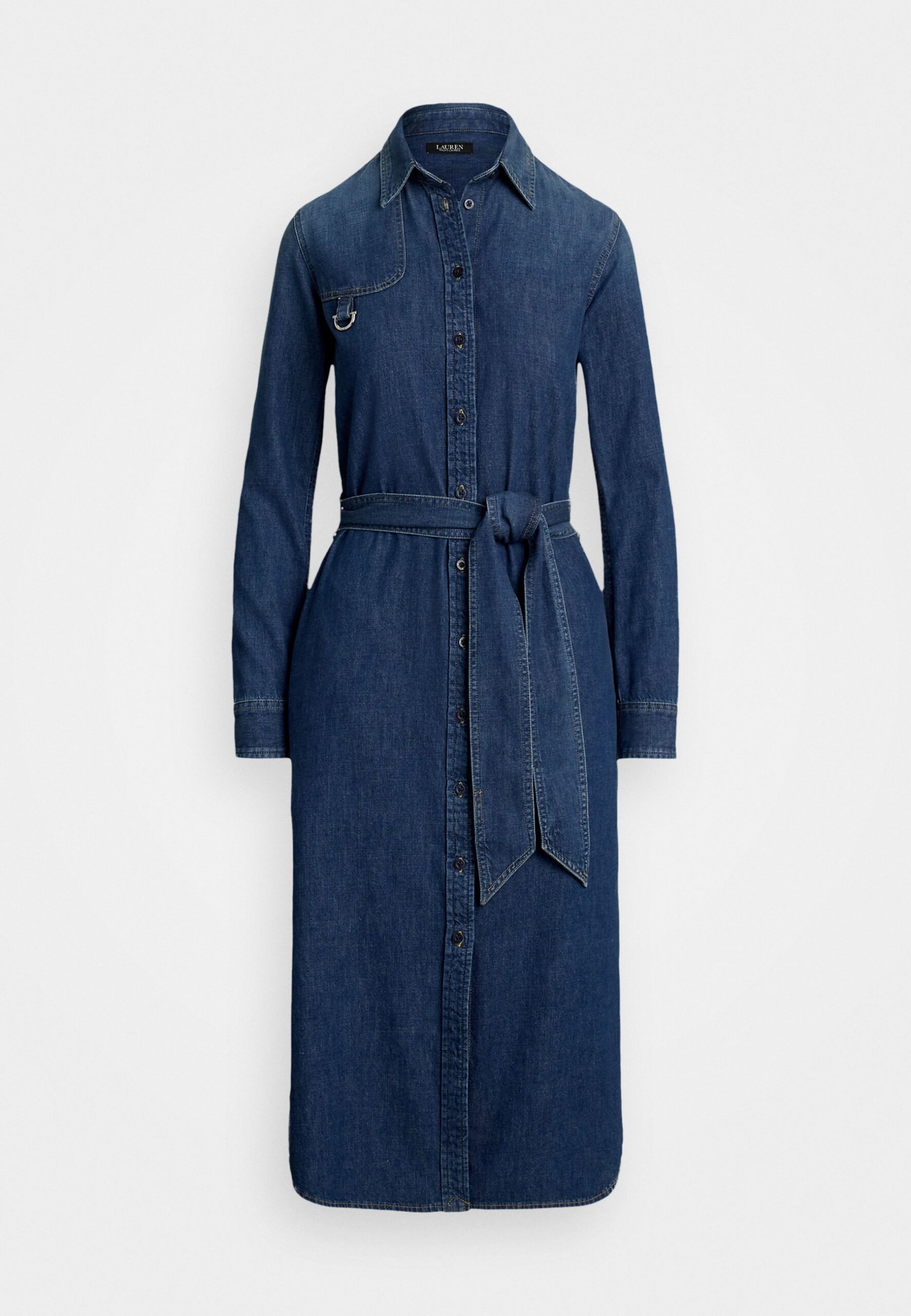 HORSEBIT-TRIM BELTED DENIM SHIRTDRESS – Denim dress – Blue