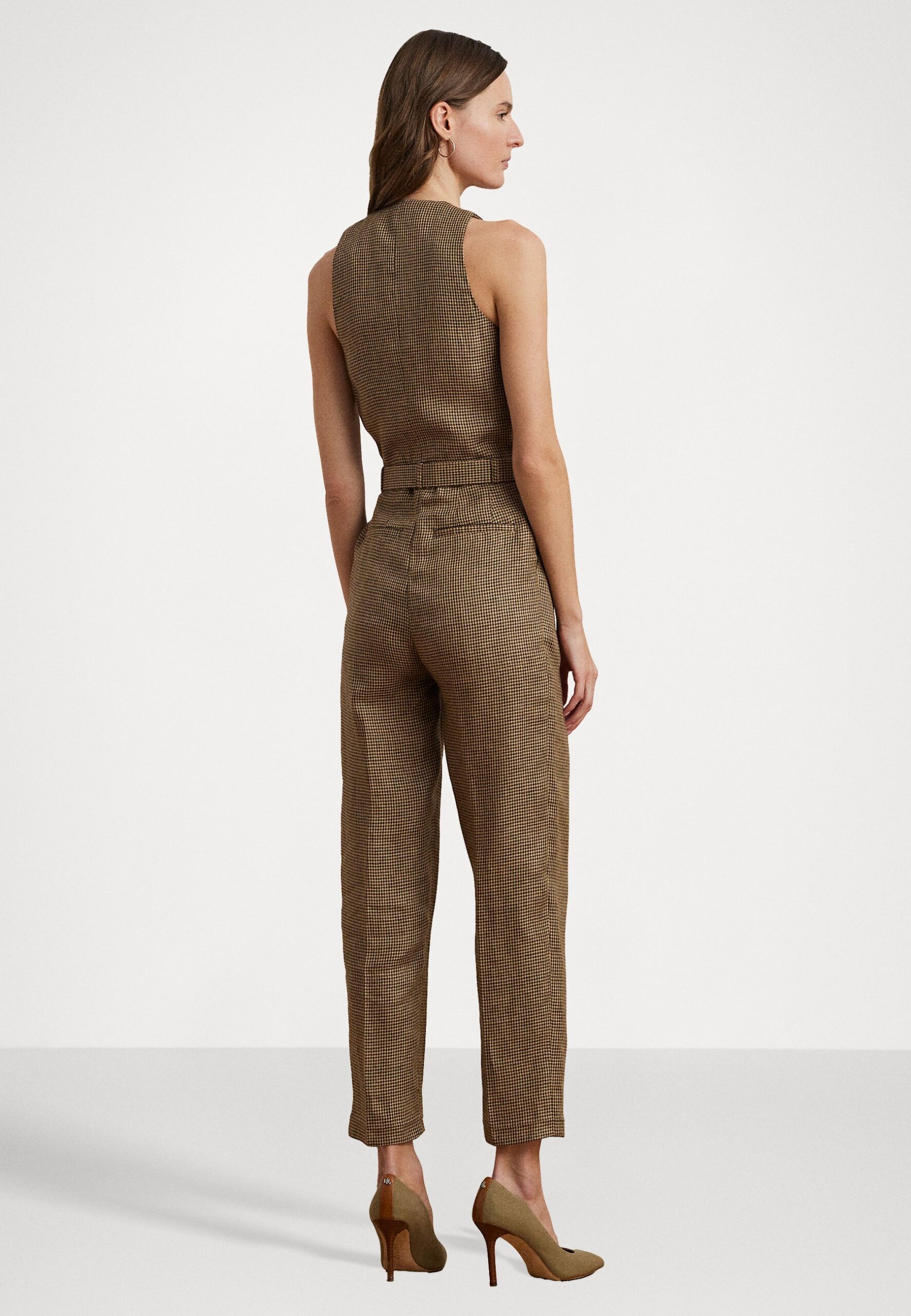 HOUNDSTOOTH BELTED LINEN JUMPSUIT – Jumpsuit – brown/tan multi