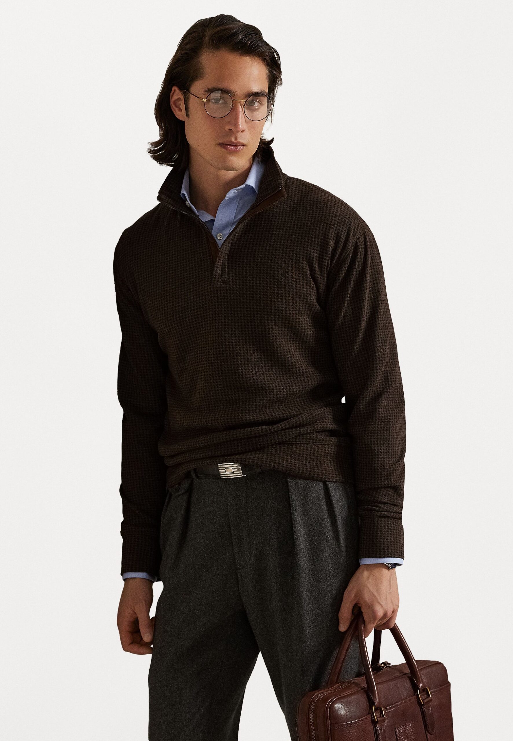 HOUNDSTOOTH LUXURY JERSEY PULLOVER – Jumper – alpine brown