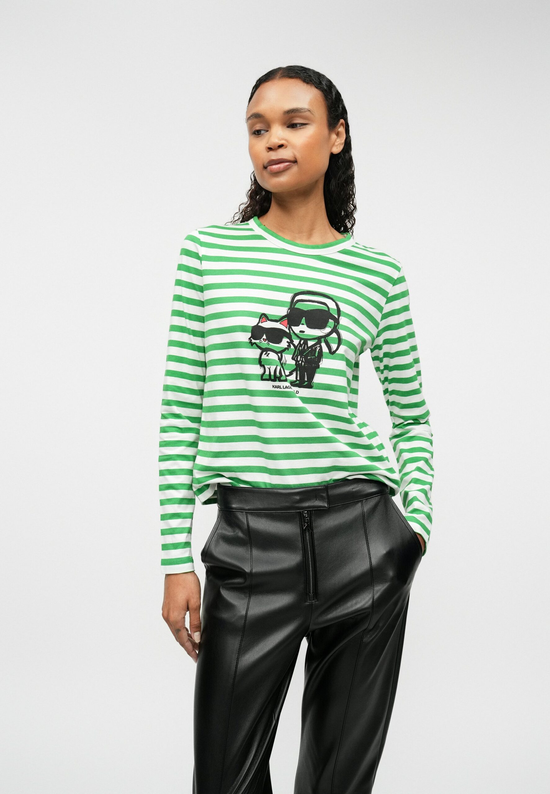IKON STRIPE LONG-SLEEVED – Long sleeved top – cannoli cream/fern green