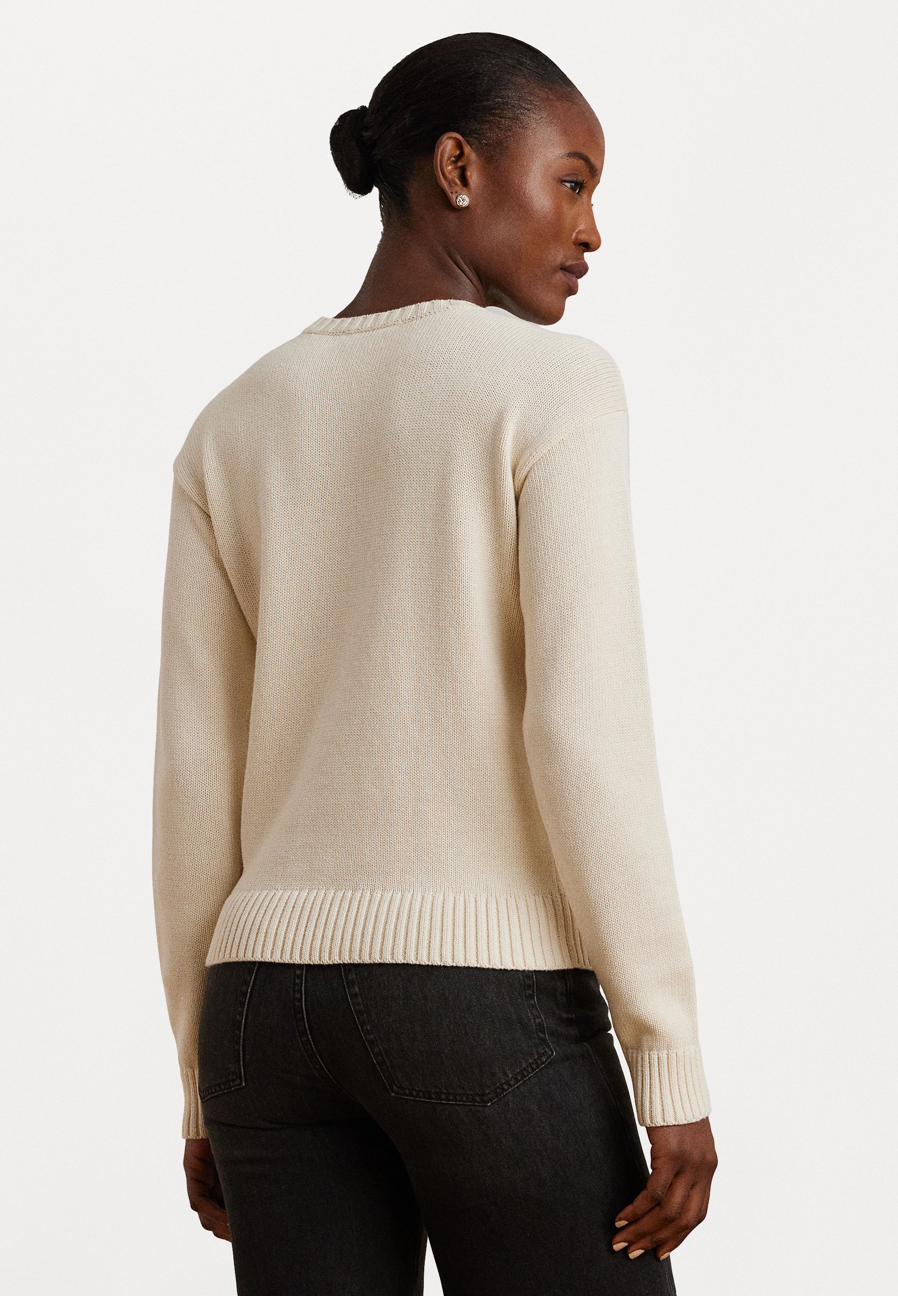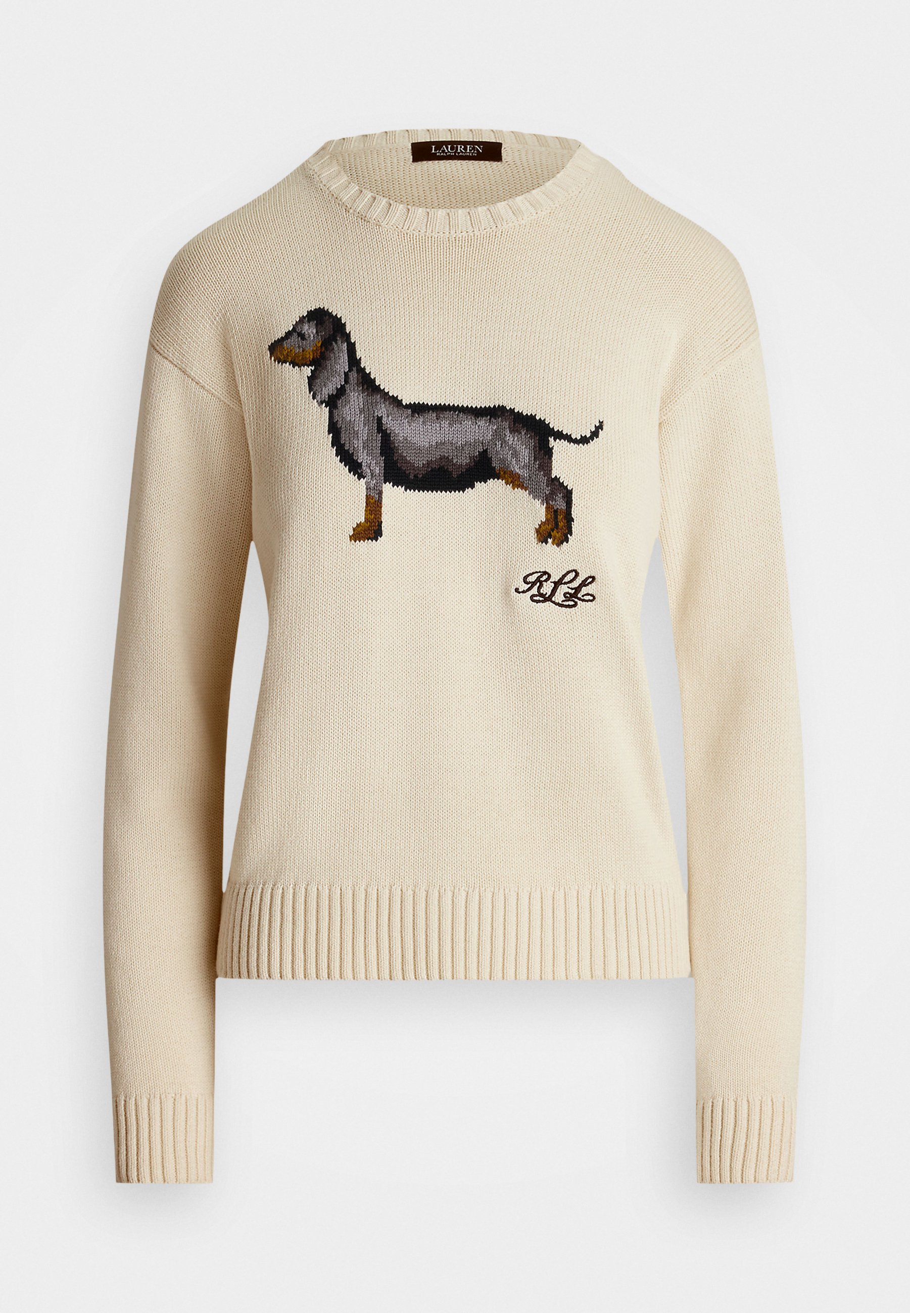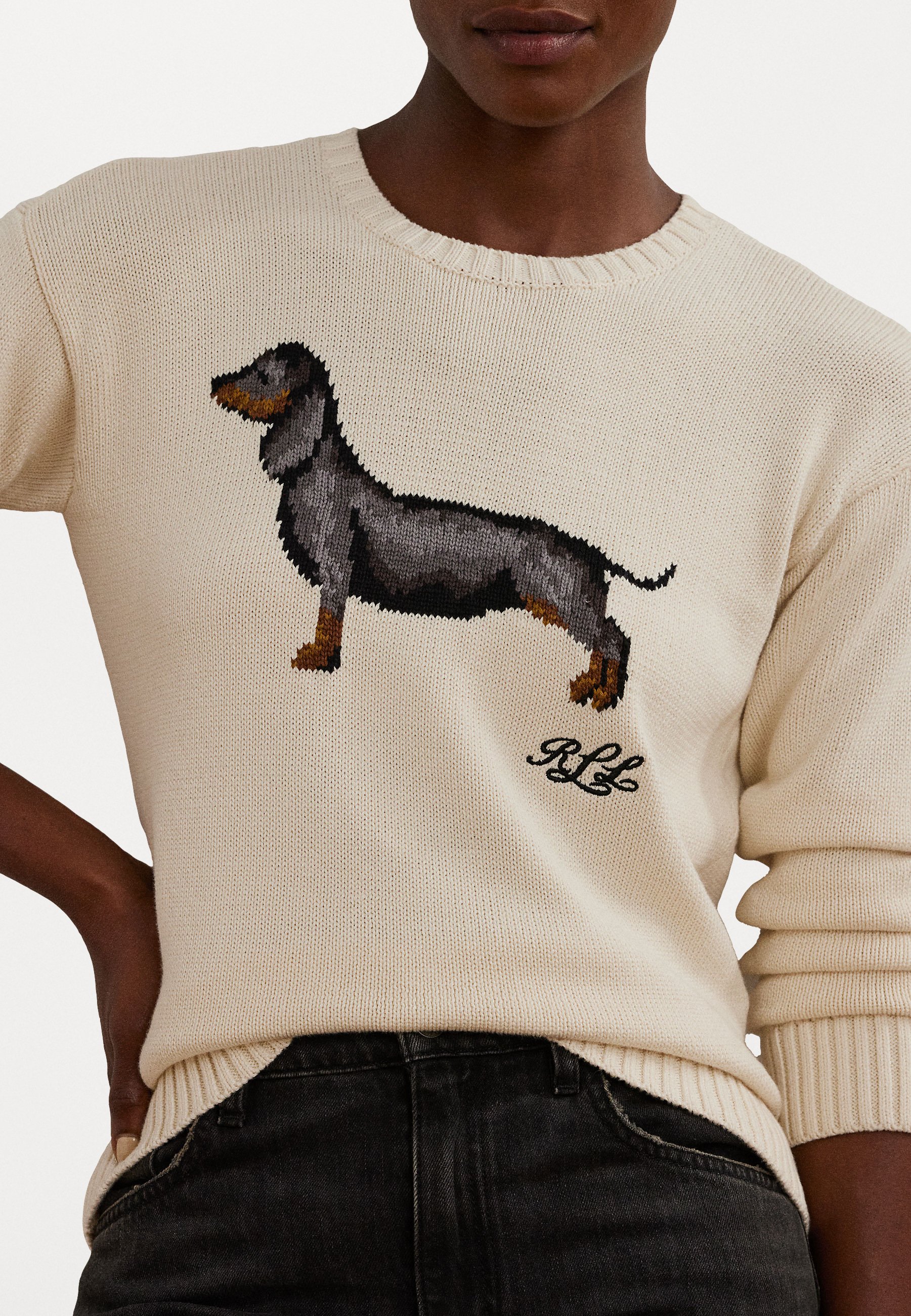 INTARSIA KNIT DACHSUND COTTON SWEATER – Jumper – mascarpone cream