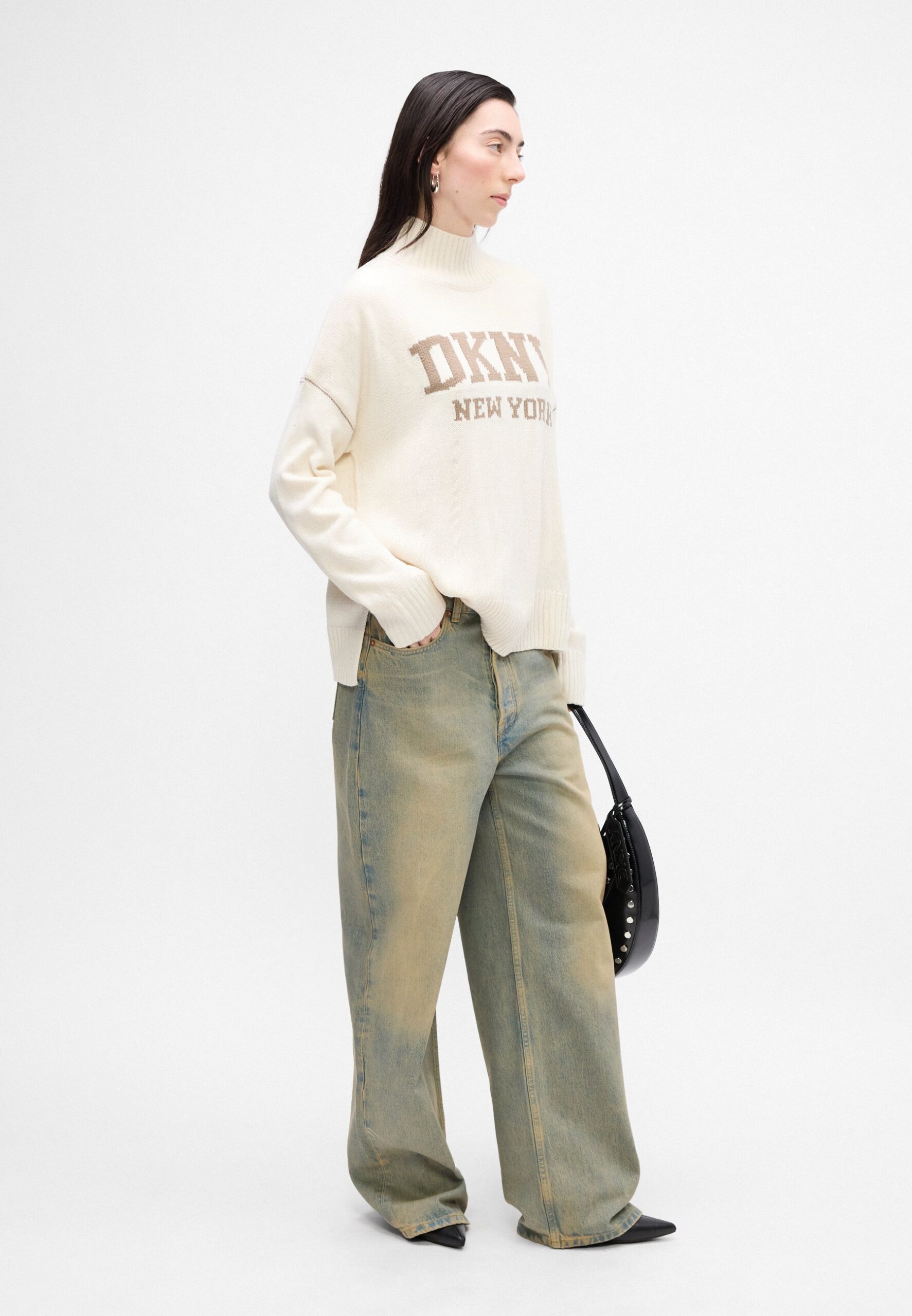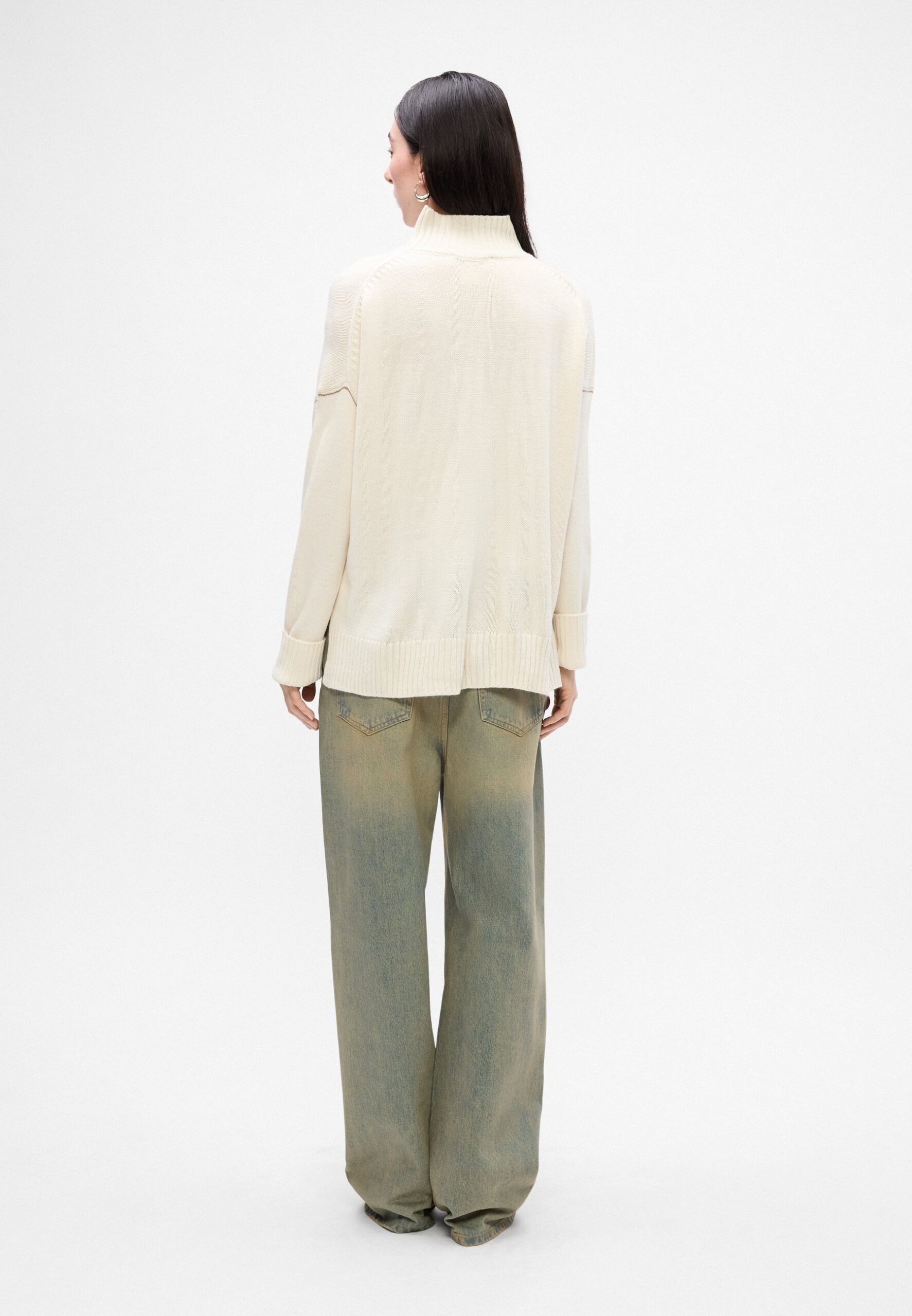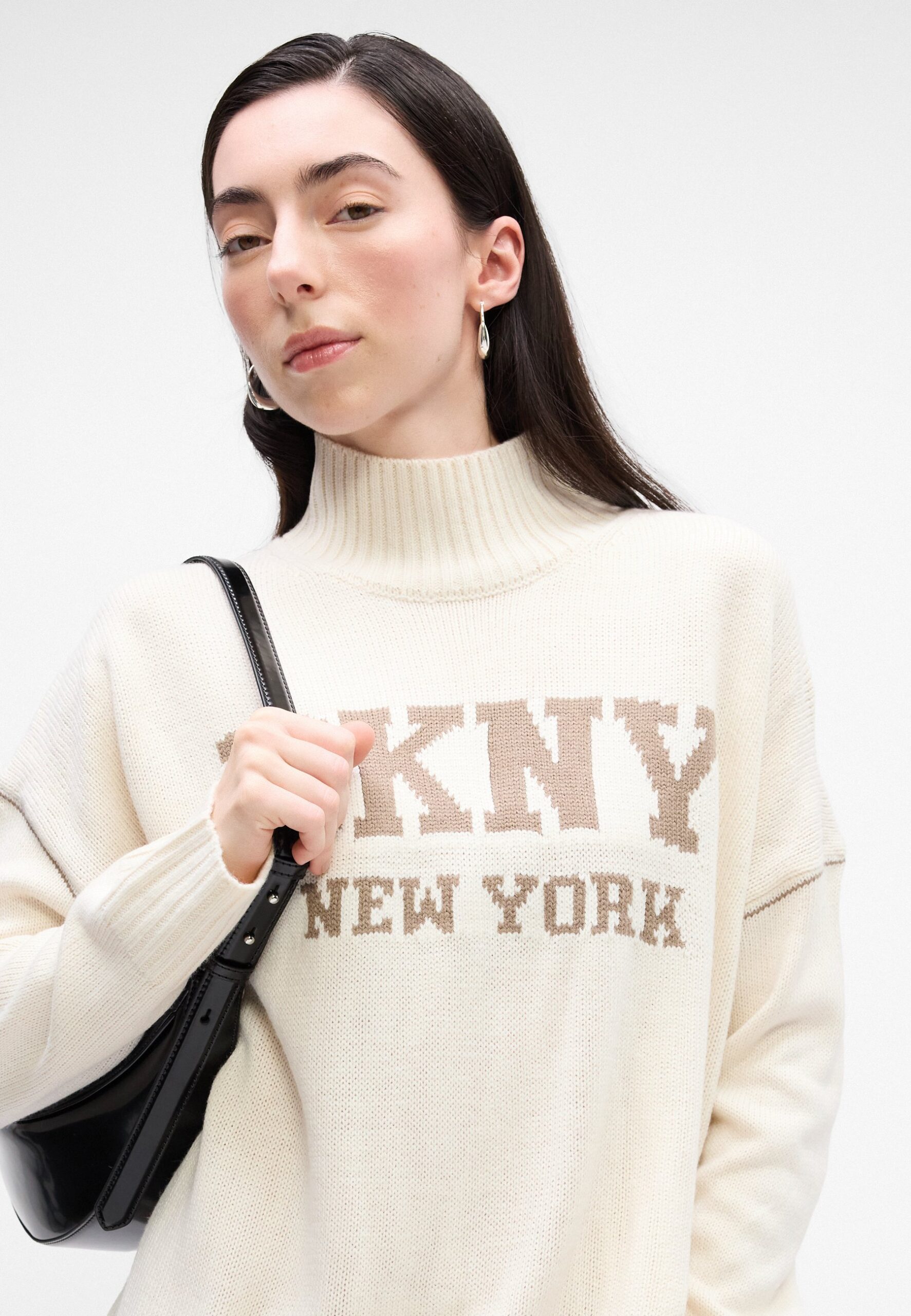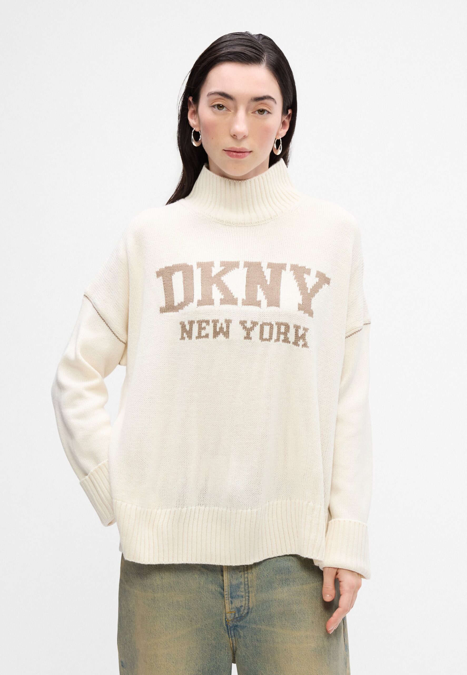 INTARSIA LOGO TURTLENECK HIGH LOW BOXY SWEATER – Jumper – blonde/taupe