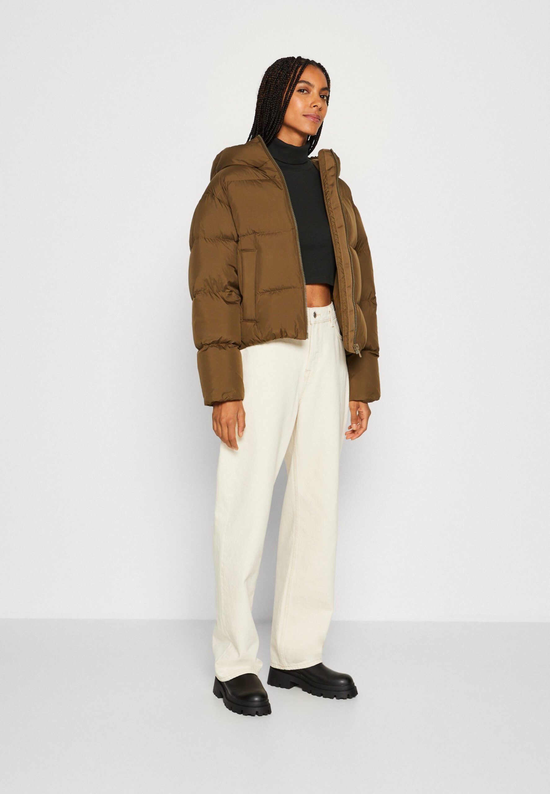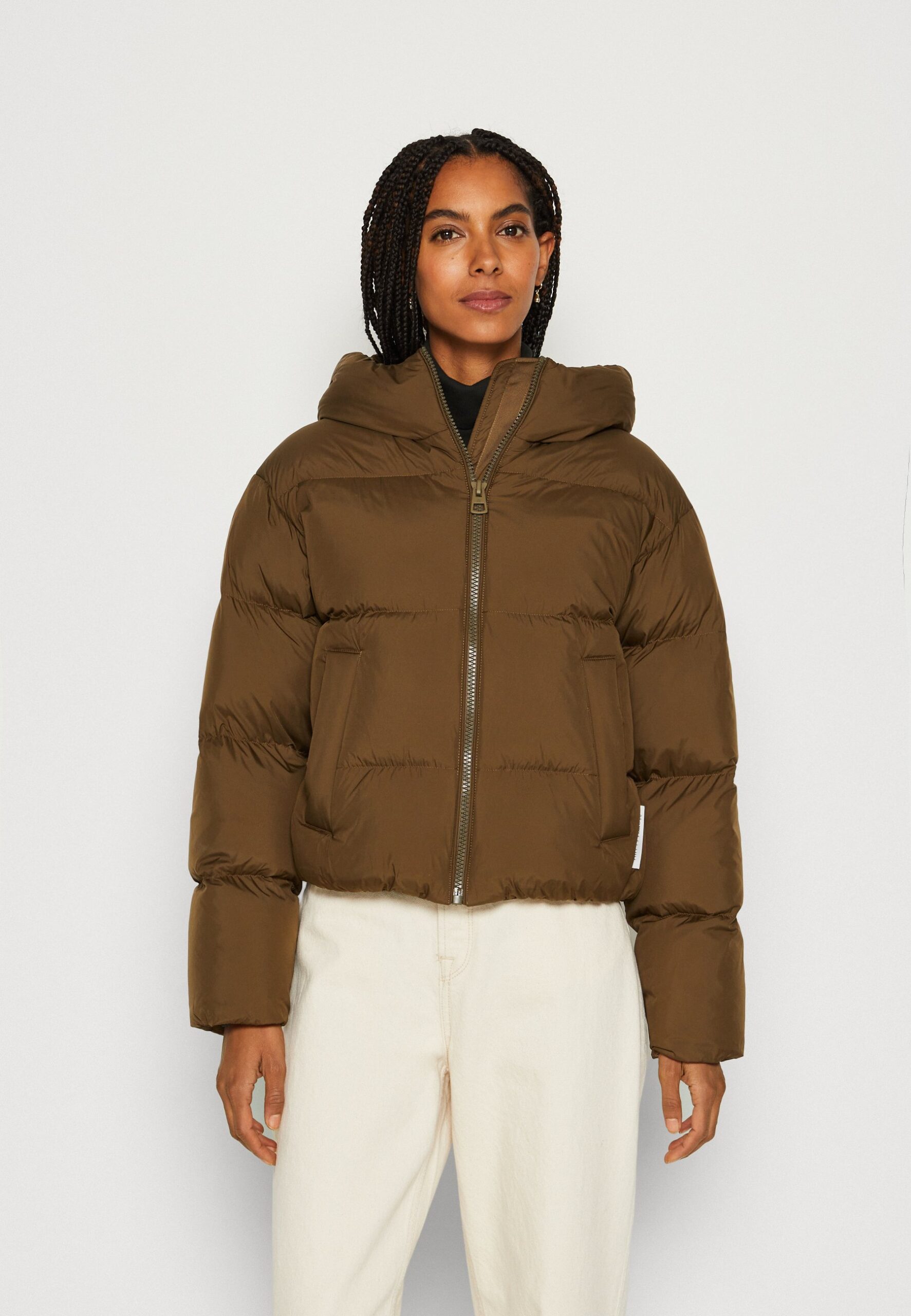 JACKET FIXED HOOD WITH ELASTIC DETAILS WELT POCKETS – Down jacket – forest floor