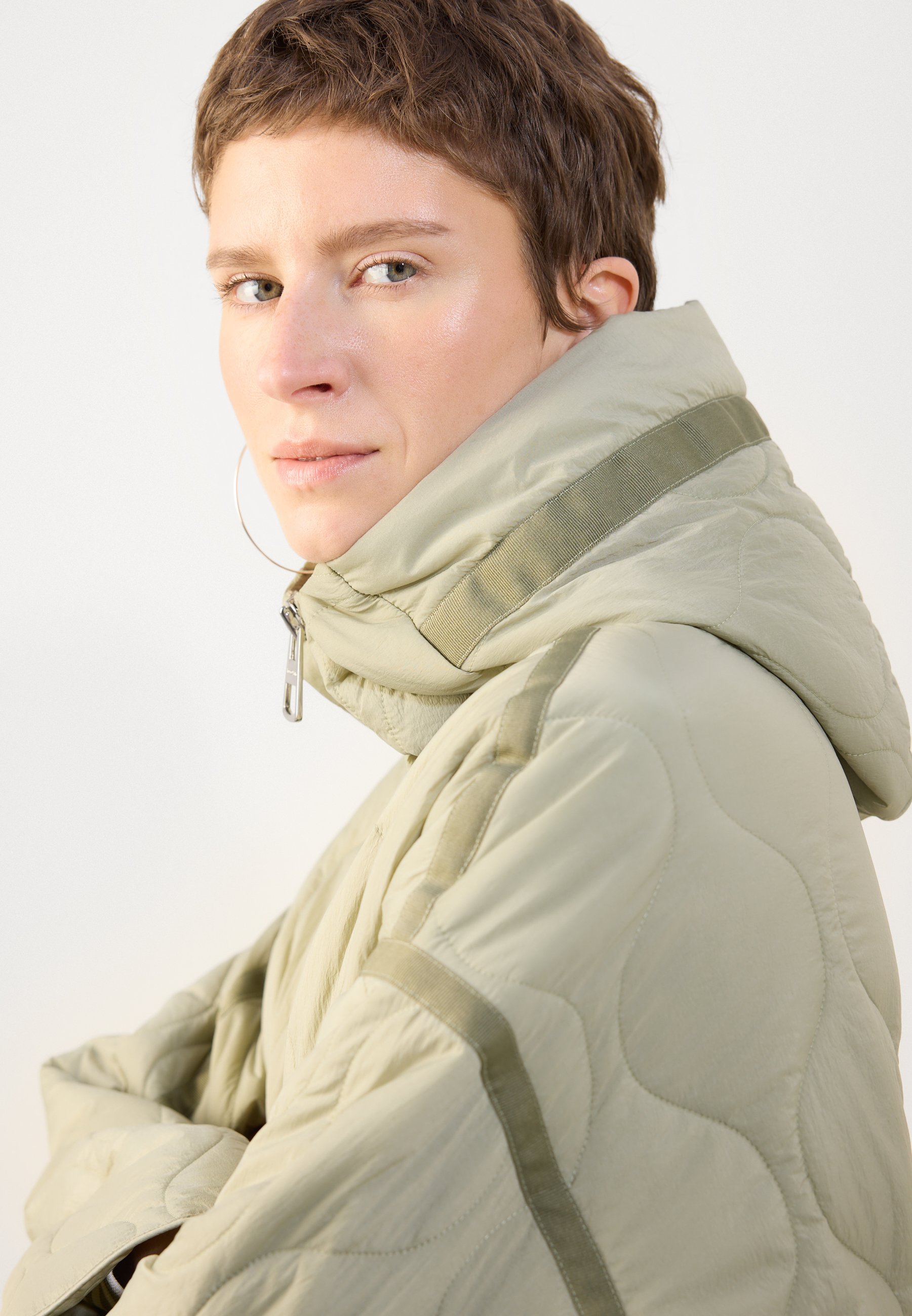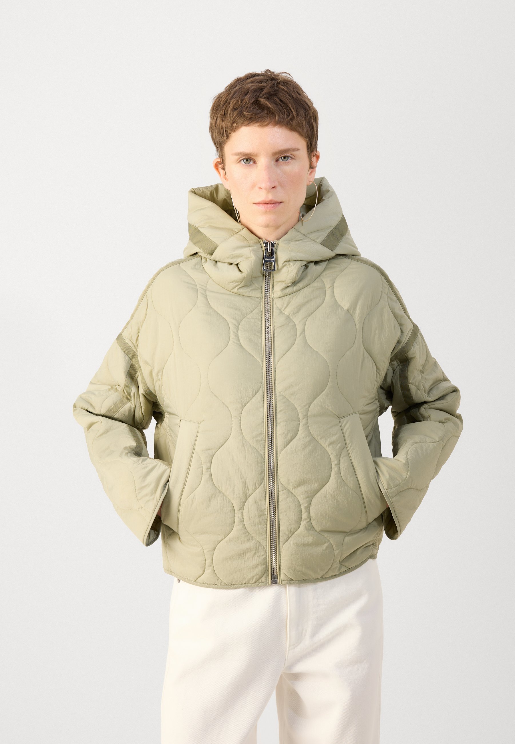 JACKET HOODED WITH TAPES WELT POCKETS – Light jacket – smooth sage