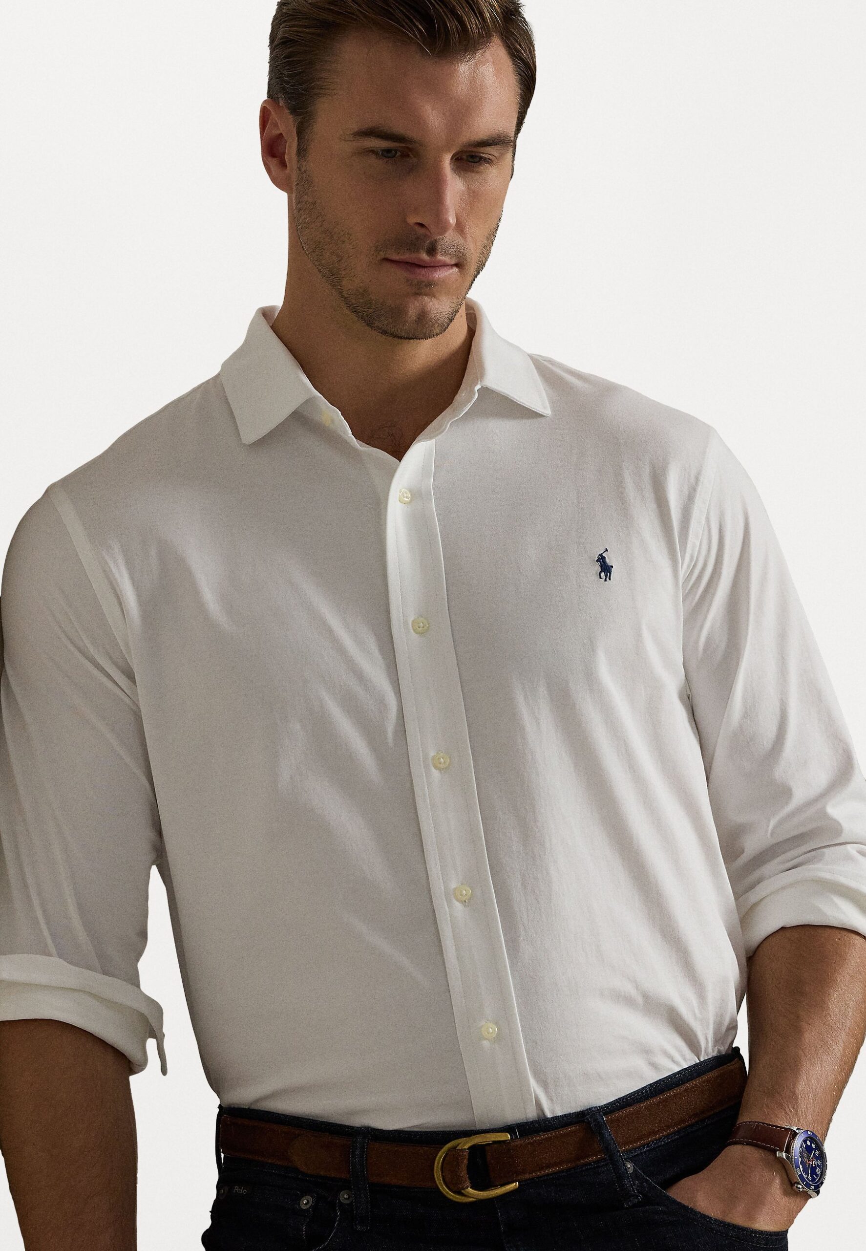 JERSEY SPREAD-COLLAR SHIRT – Shirt – white