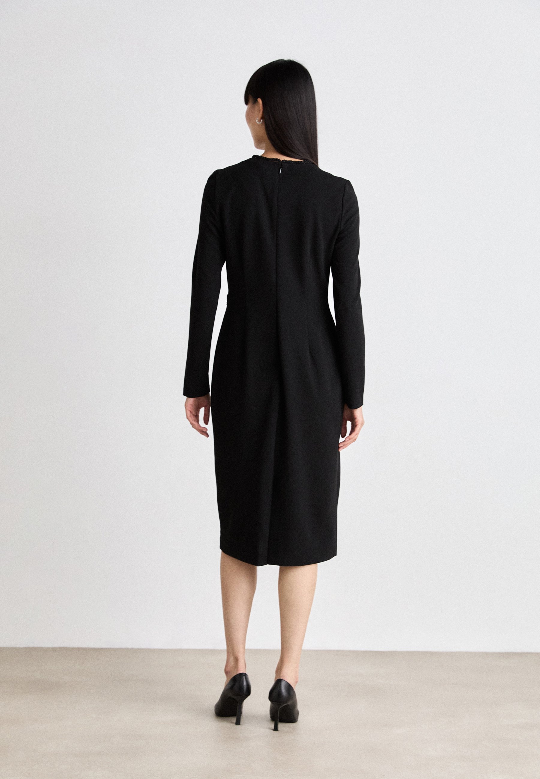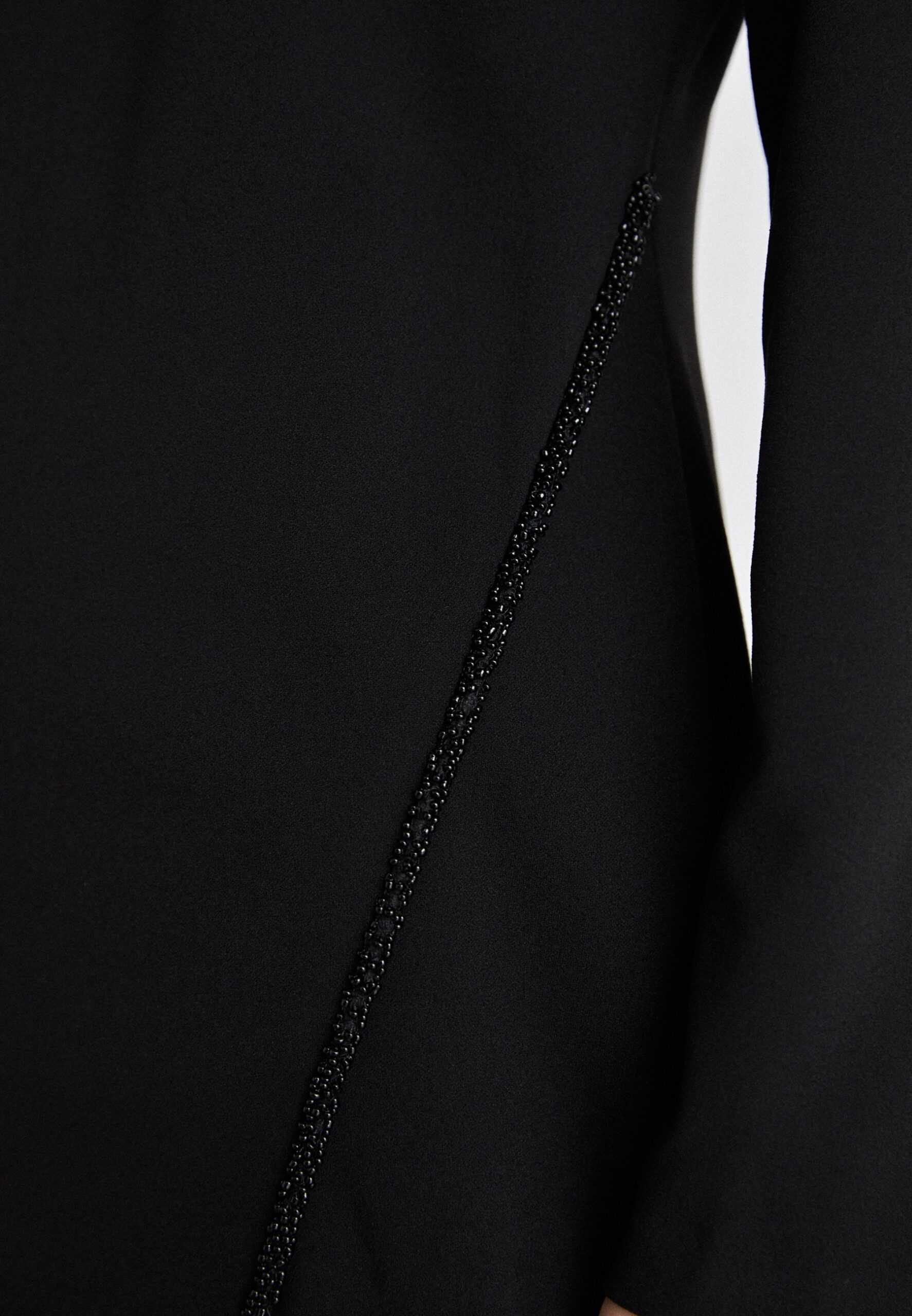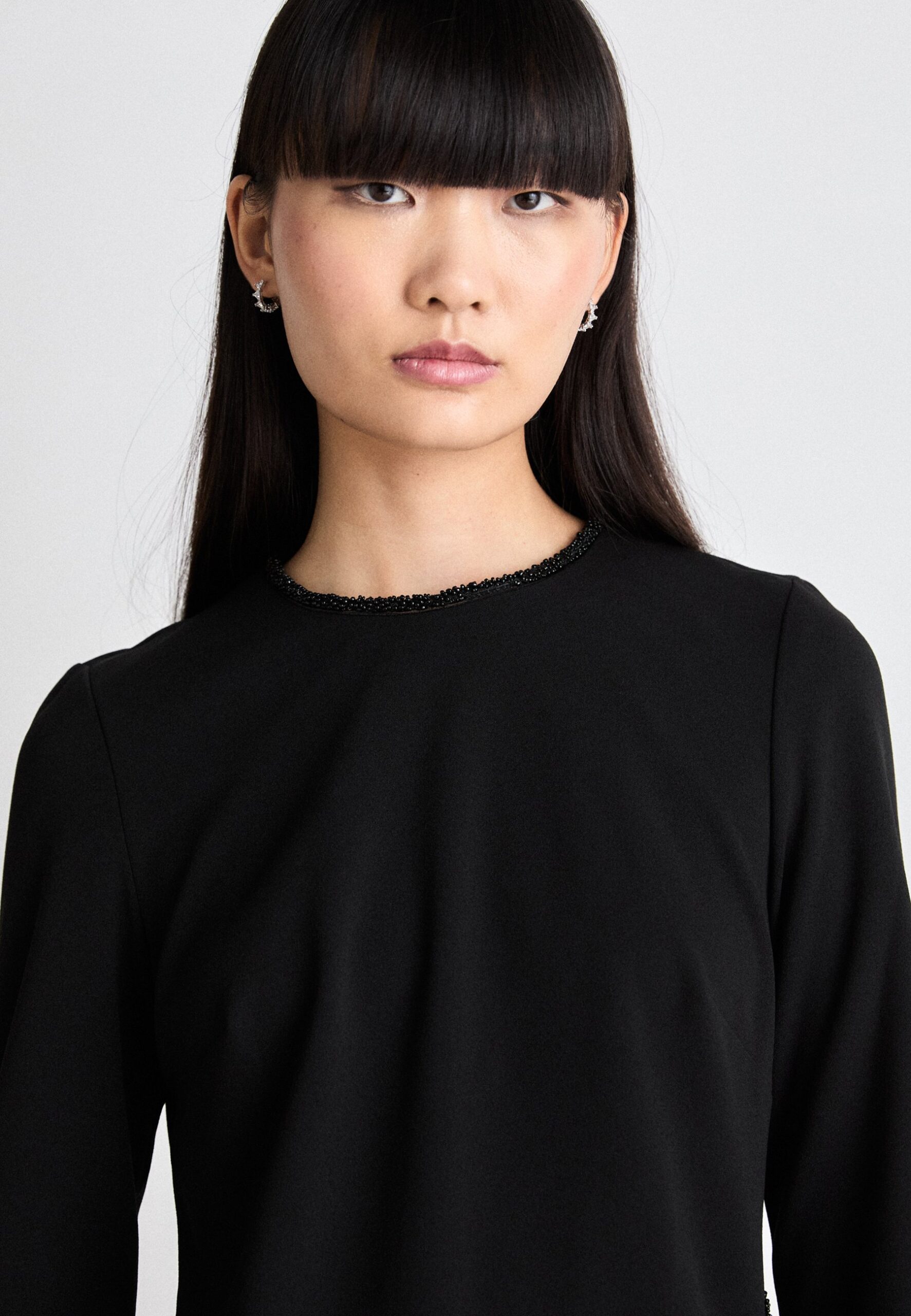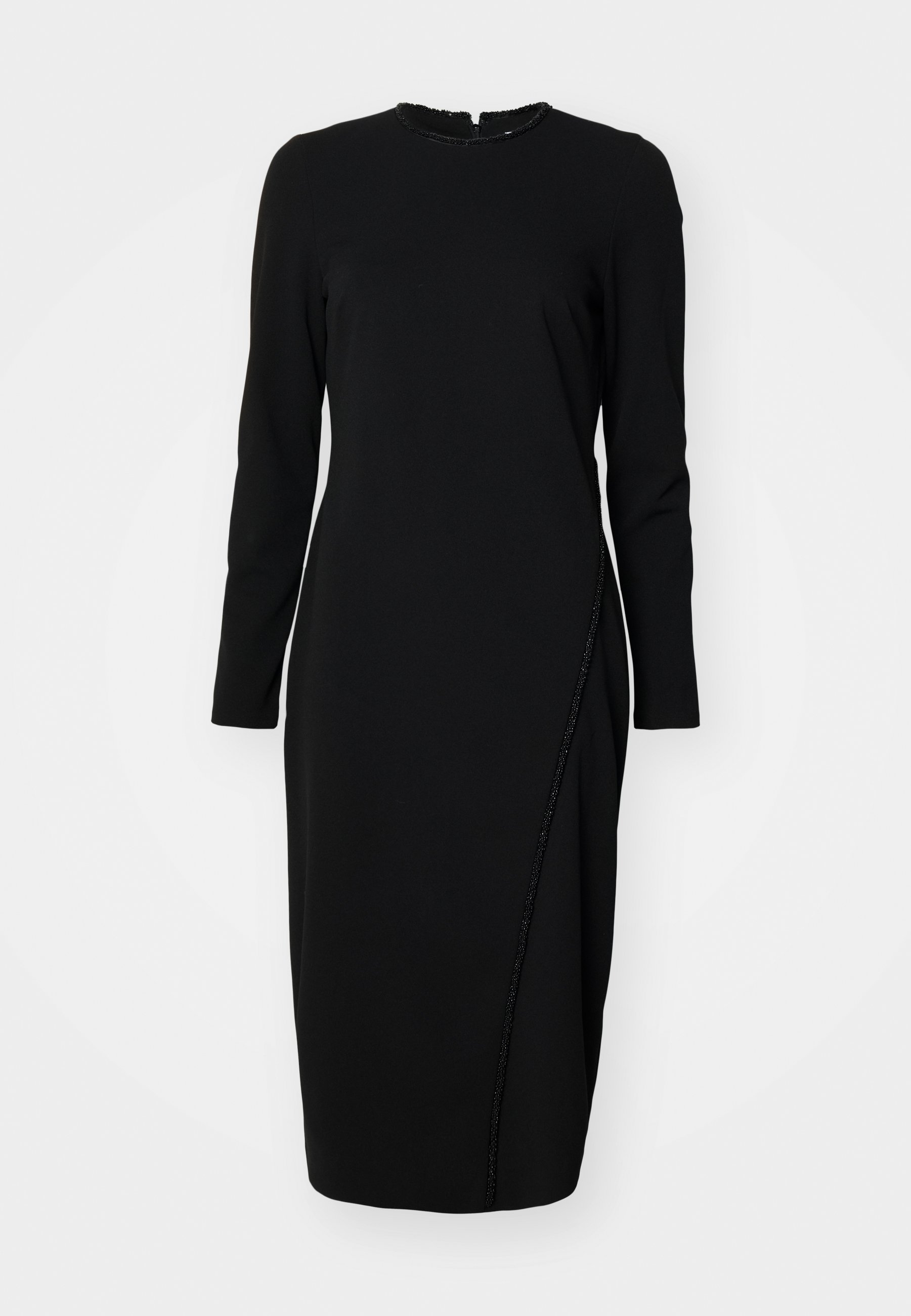 JEWEL NECK BEADS TRIM – Jersey dress – black