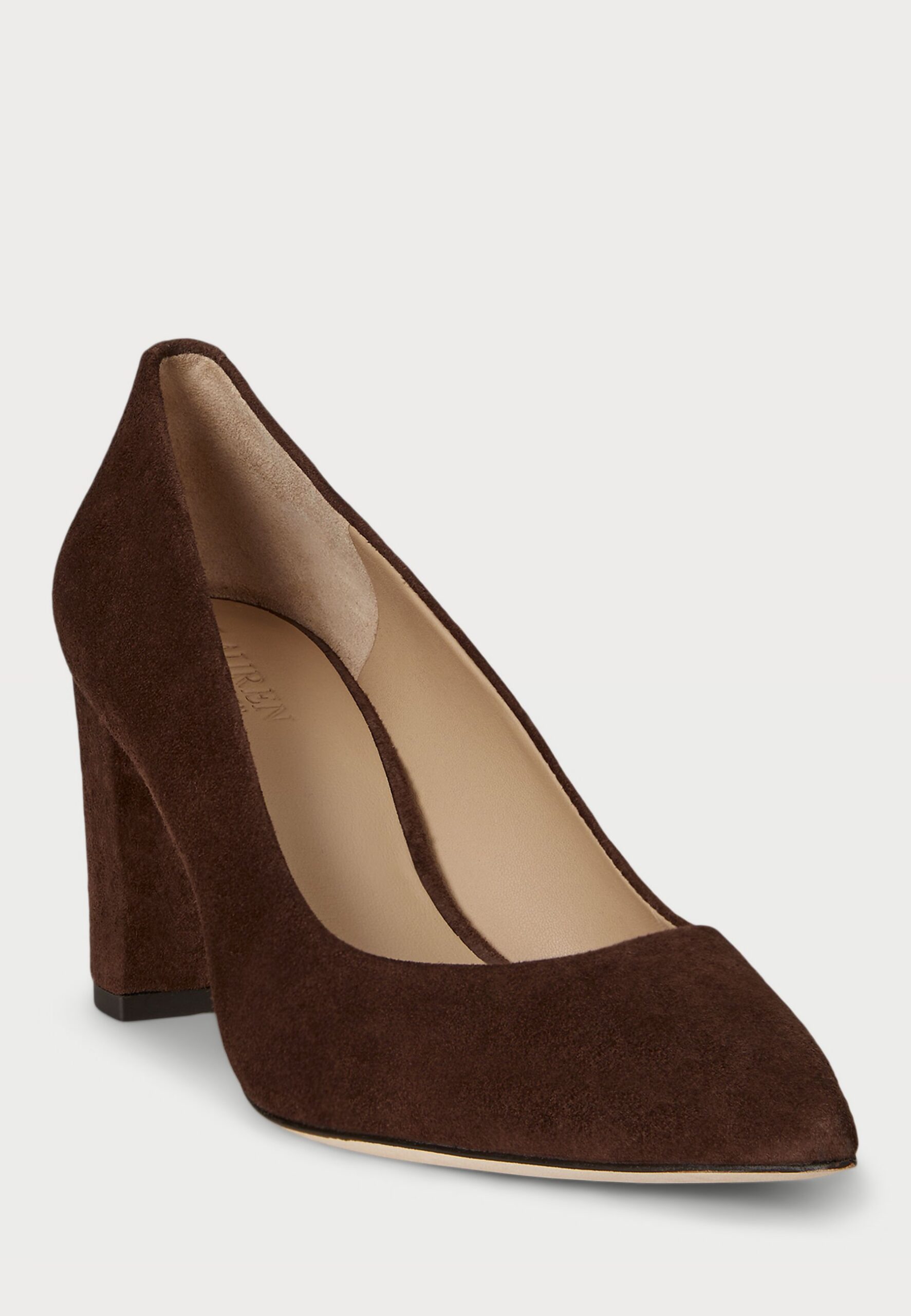 LANETTE SUEDE BLOCK HEEL PUMP – Classic heels – dark hickory