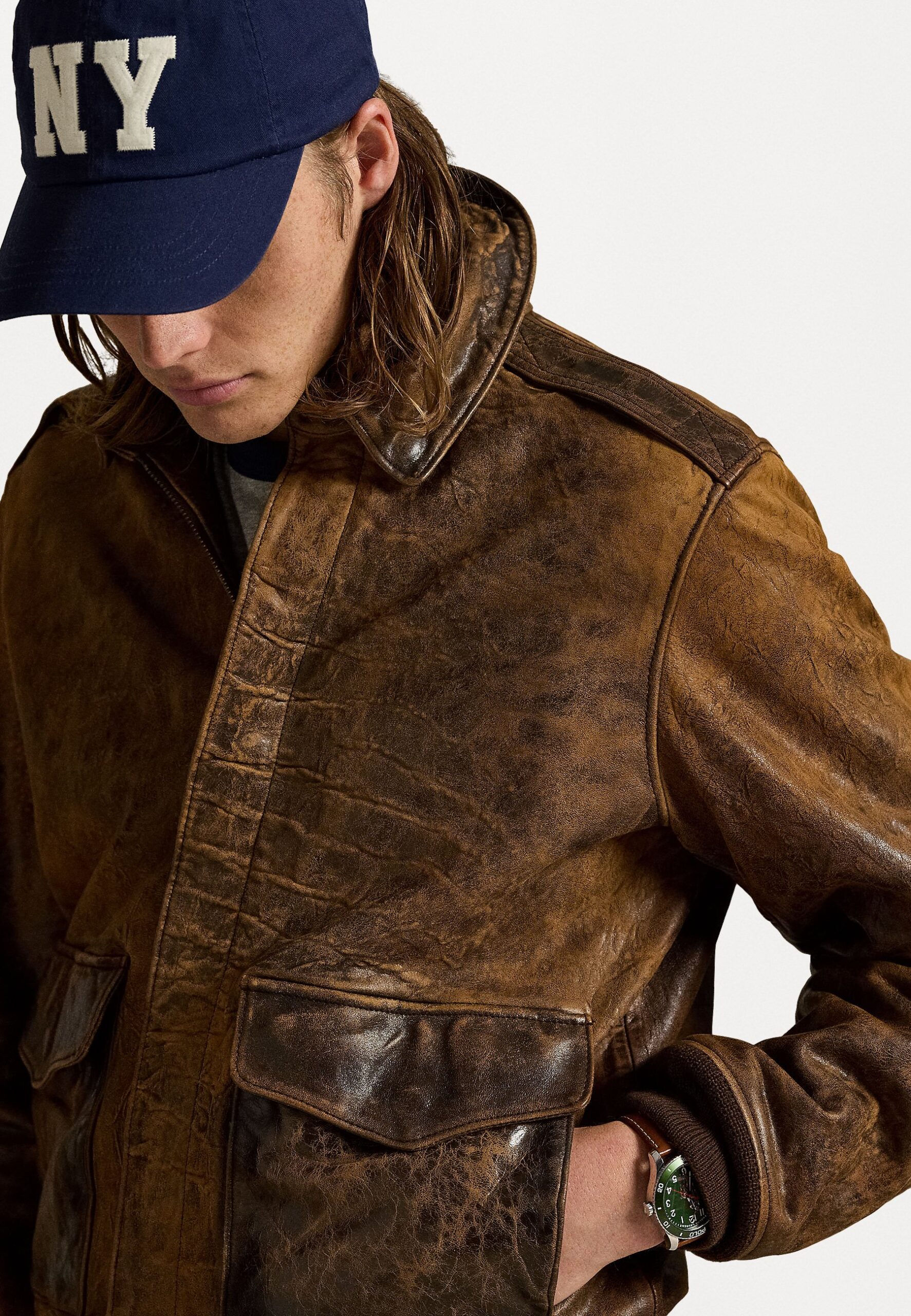 LEATHER FLIGHT JACKET – Leather jacket – hunter brown