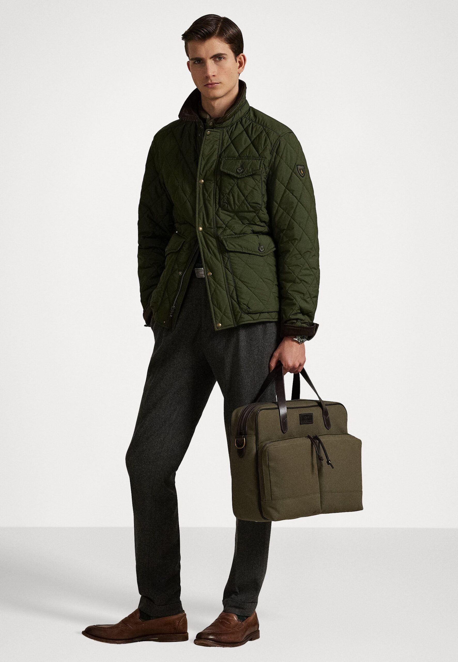 LEATHER TRIM CANVAS COMMUTER BAG – Laptop bag – defender green/dark brown