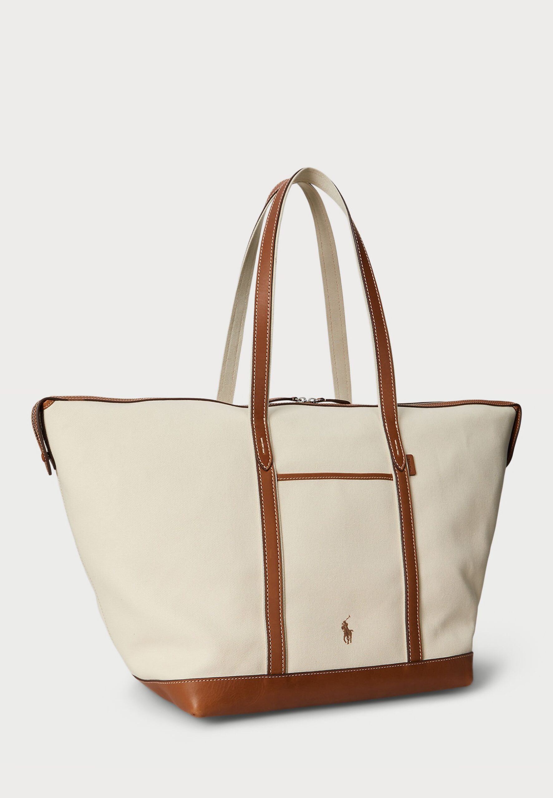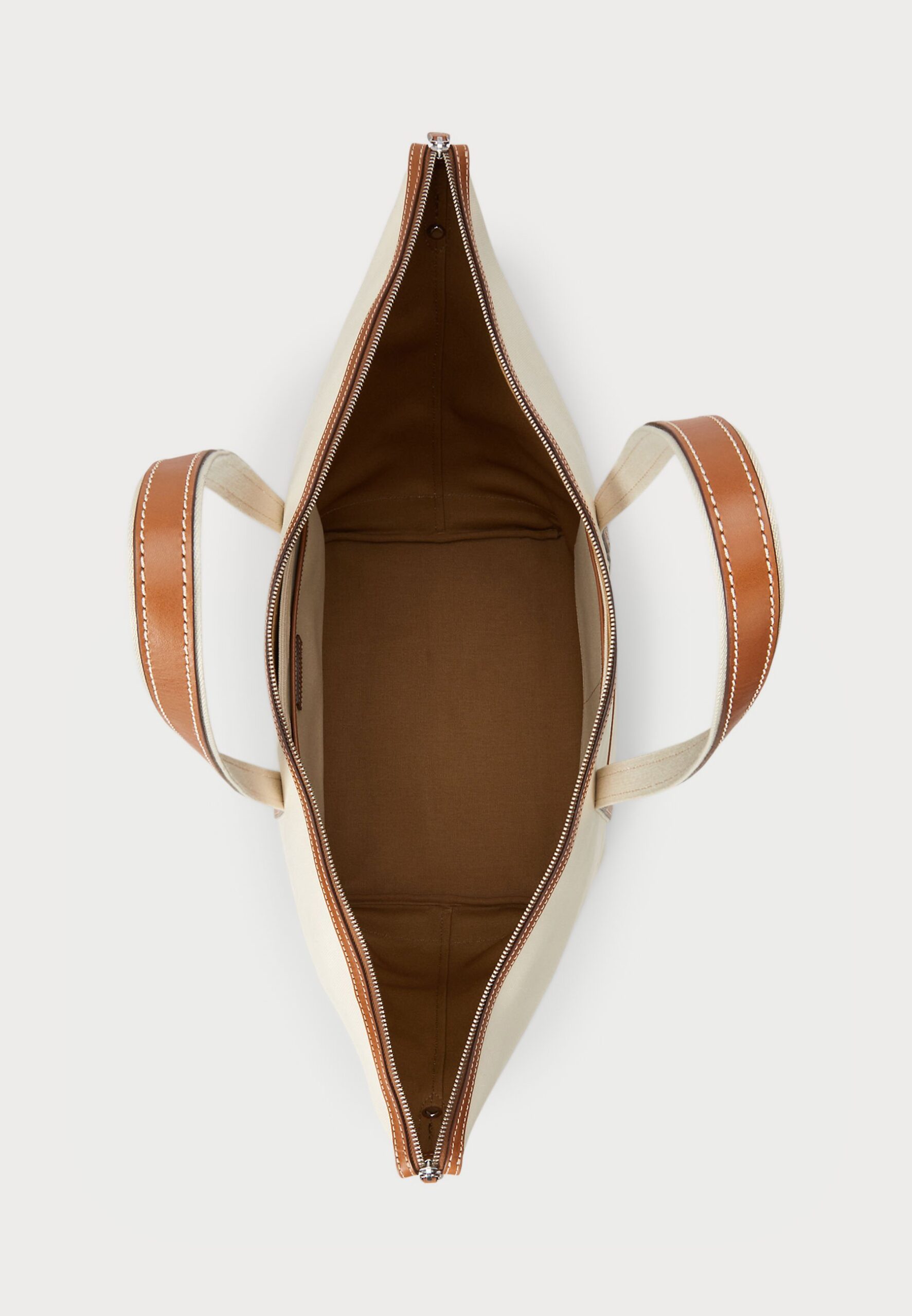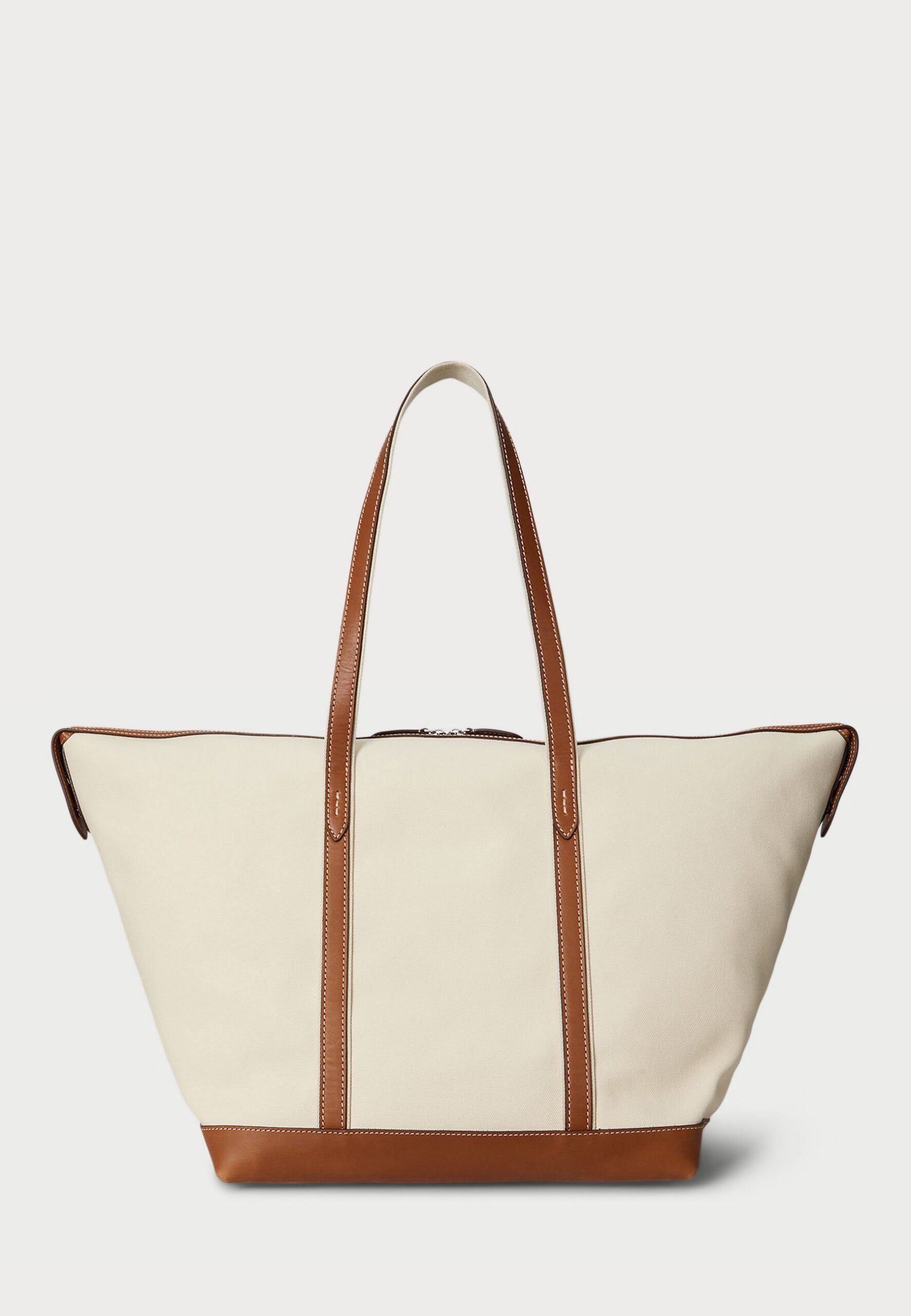 LEATHER-TRIM CANVAS LARGE SHOPPER TOTE – Tote bag – ecru