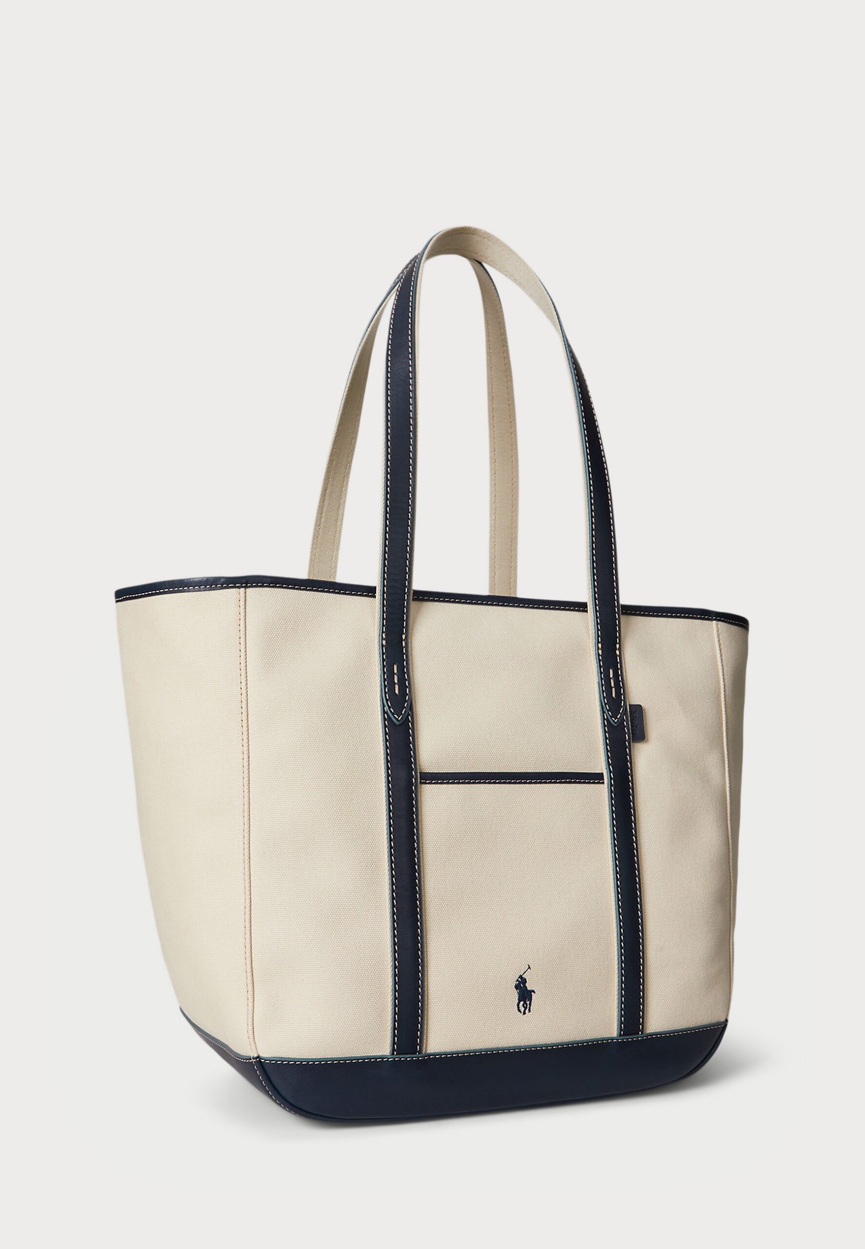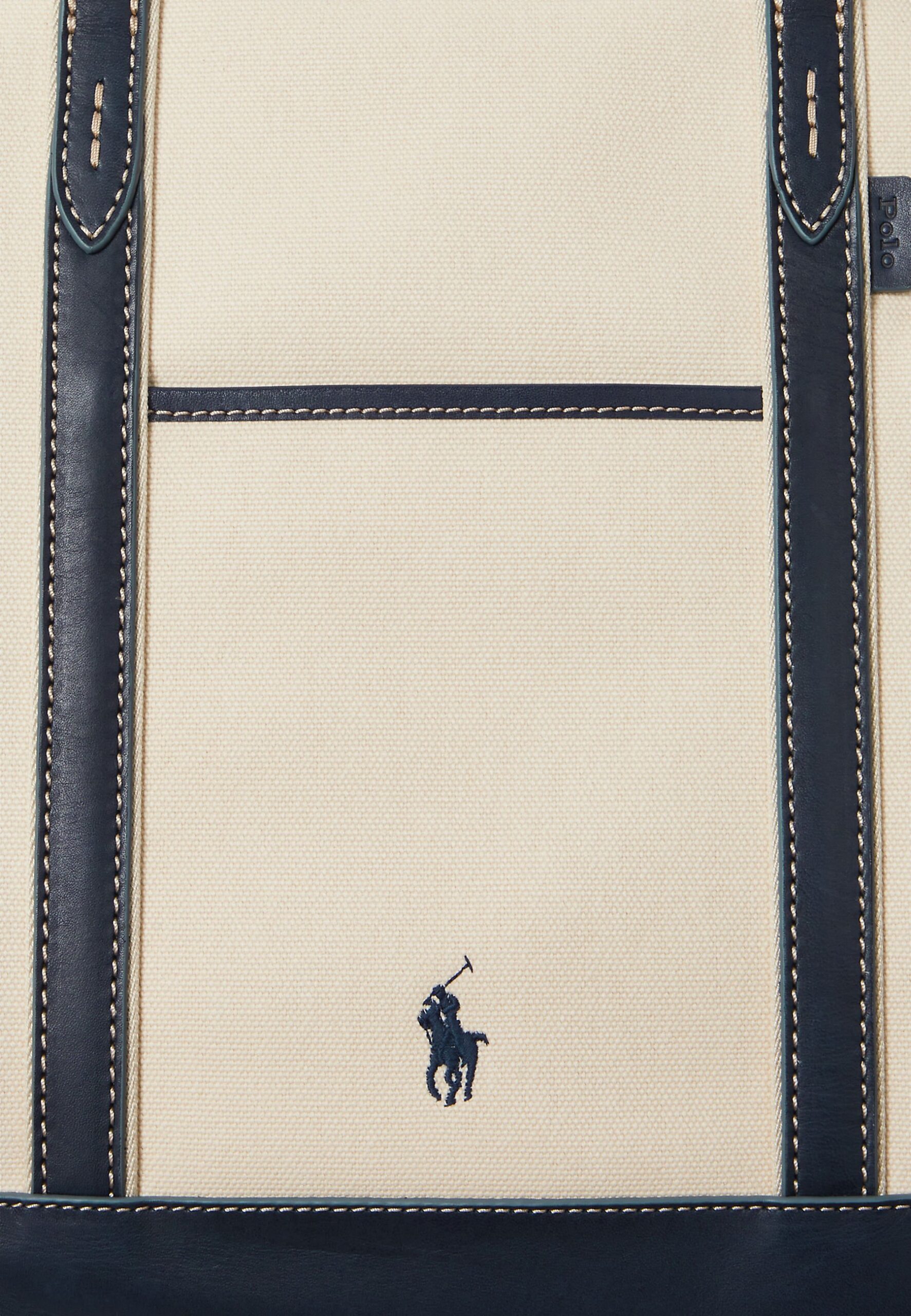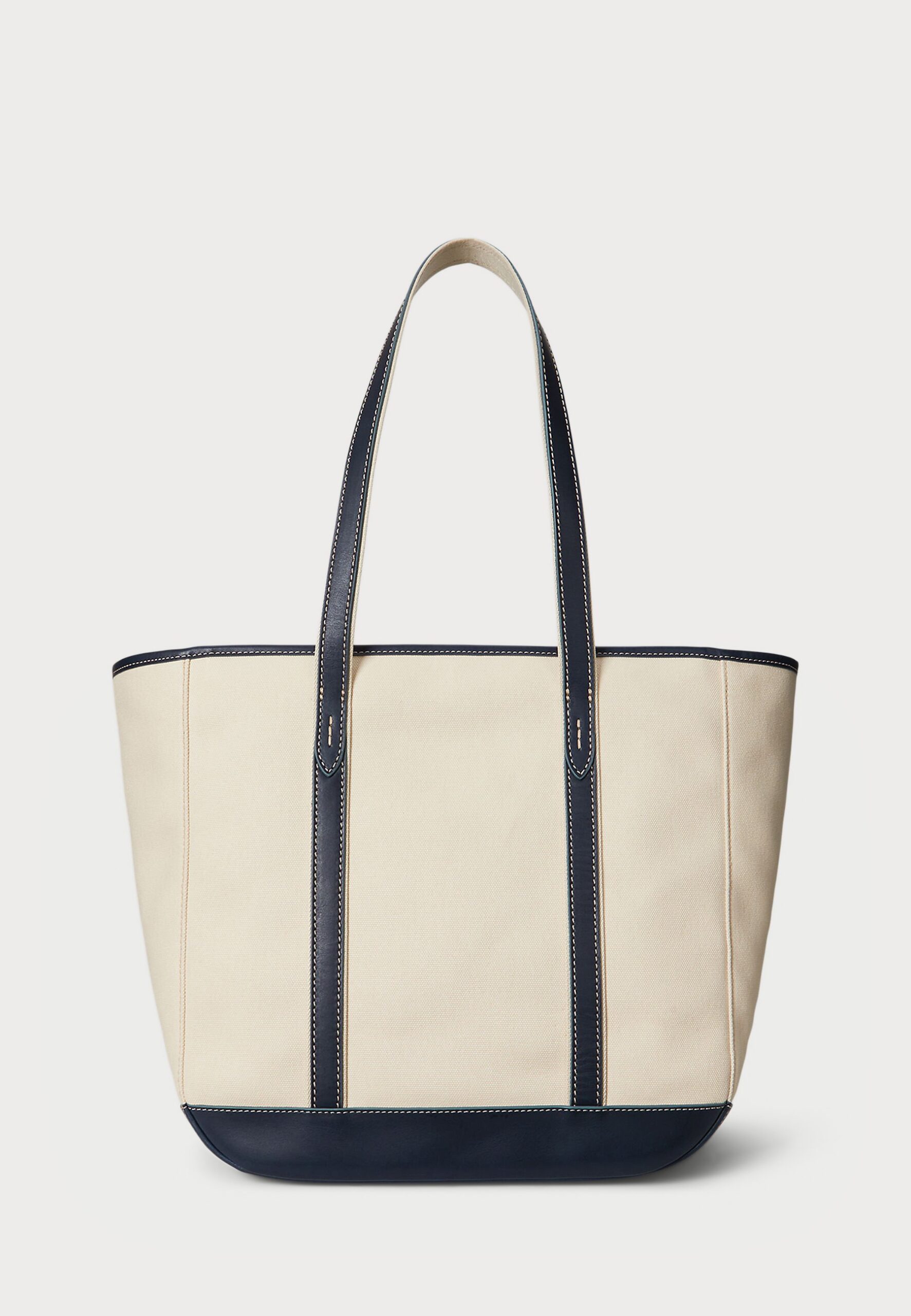 LEATHER-TRIM CANVAS MEDIUM SHOPPER TOTE – Tote bag – ecru/navy