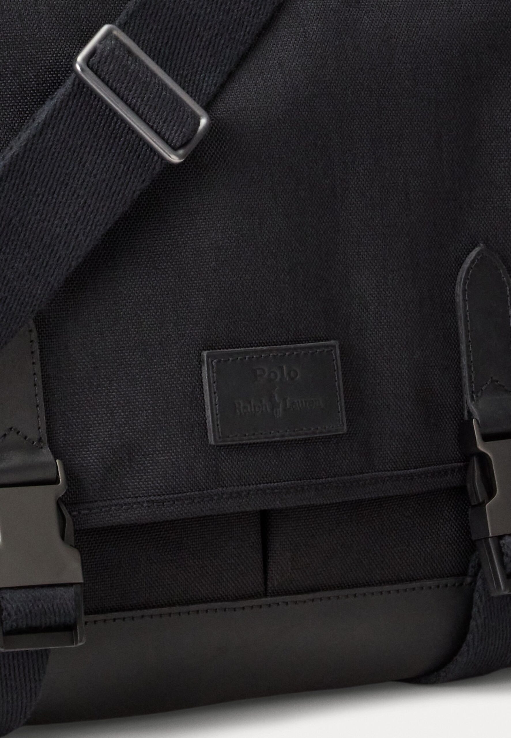 LEATHER-TRIM TRAVEL MESSENGER BAG – Cross body bag – black/black
