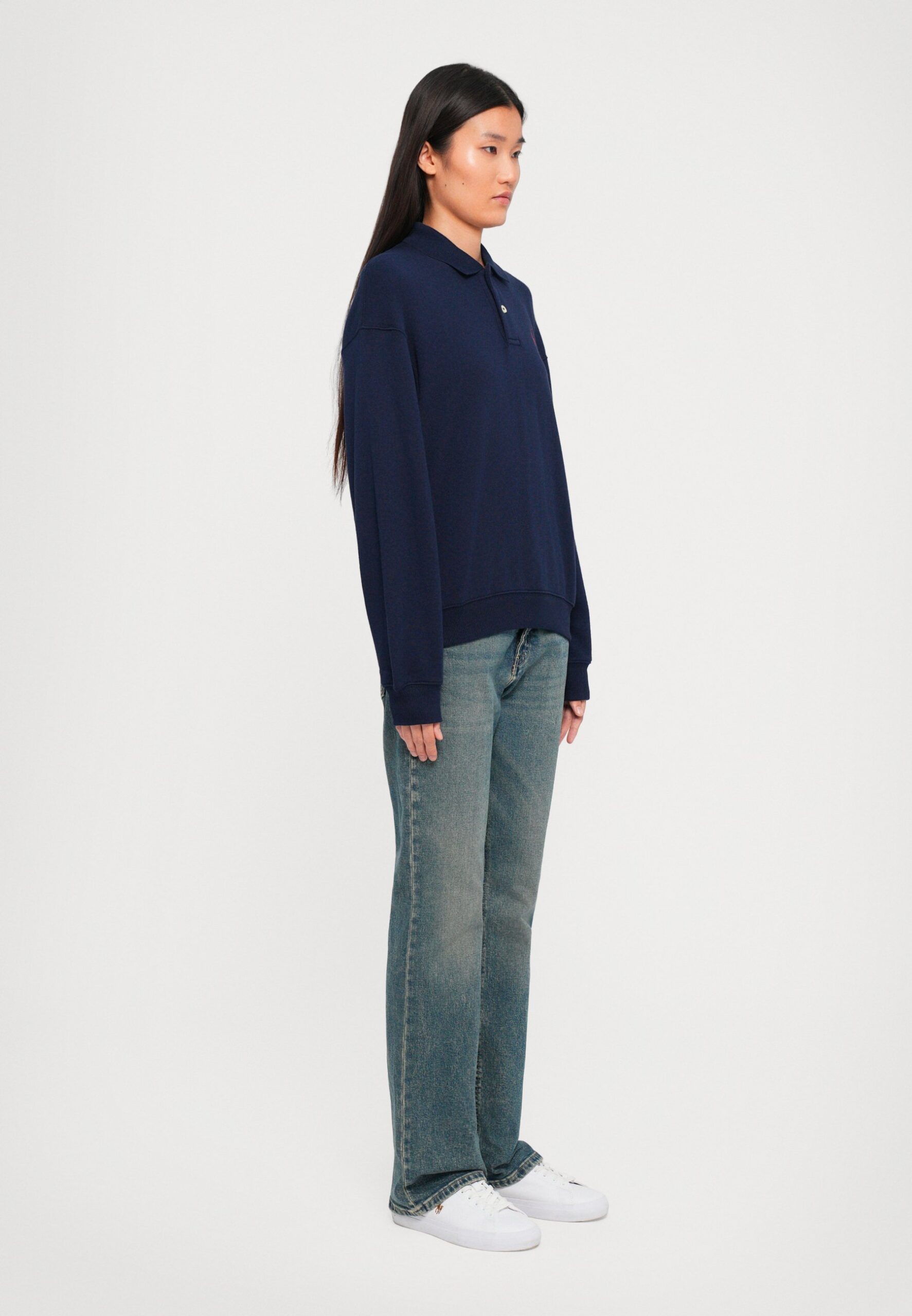 LIGHTWEIGHT FLEECE LONG-SLEEVE POLO – Long sleeved top – cruise navy