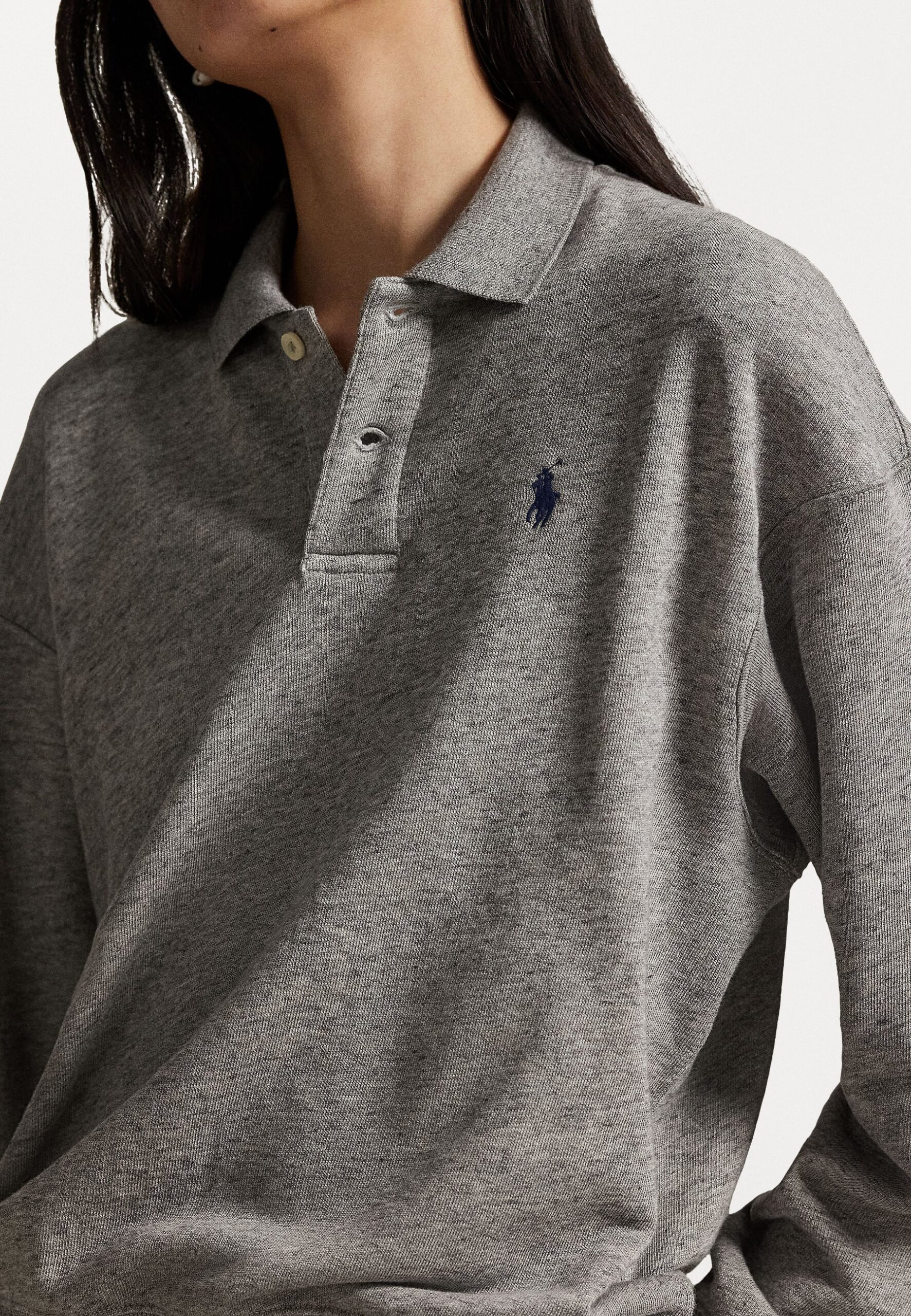 LIGHTWEIGHT FLEECE LONG-SLEEVE POLO – Long sleeved top – dark vintage heather