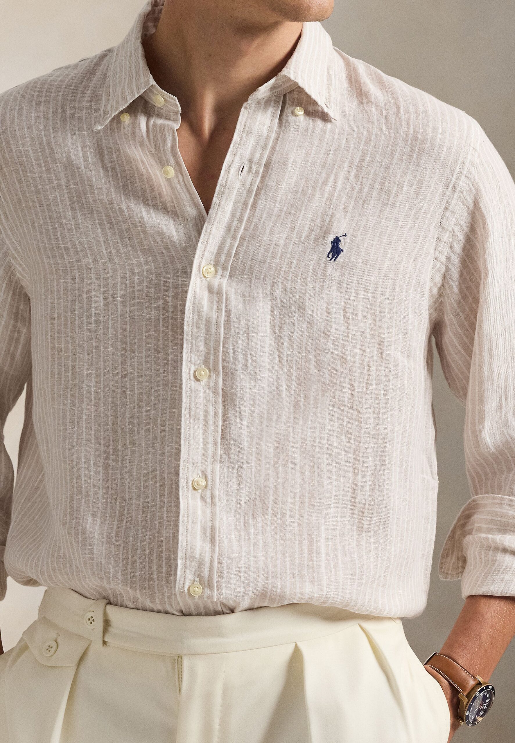LINEN LONG SLEEVE SPORT – Shirt – coastal beige white