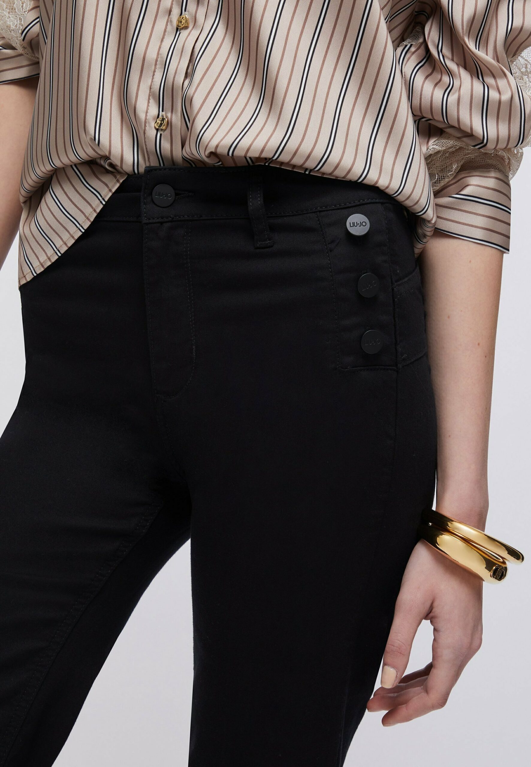 LIU JO FLARED TROUSERS WITH BRANDED BUTTONS – Trousers – black
