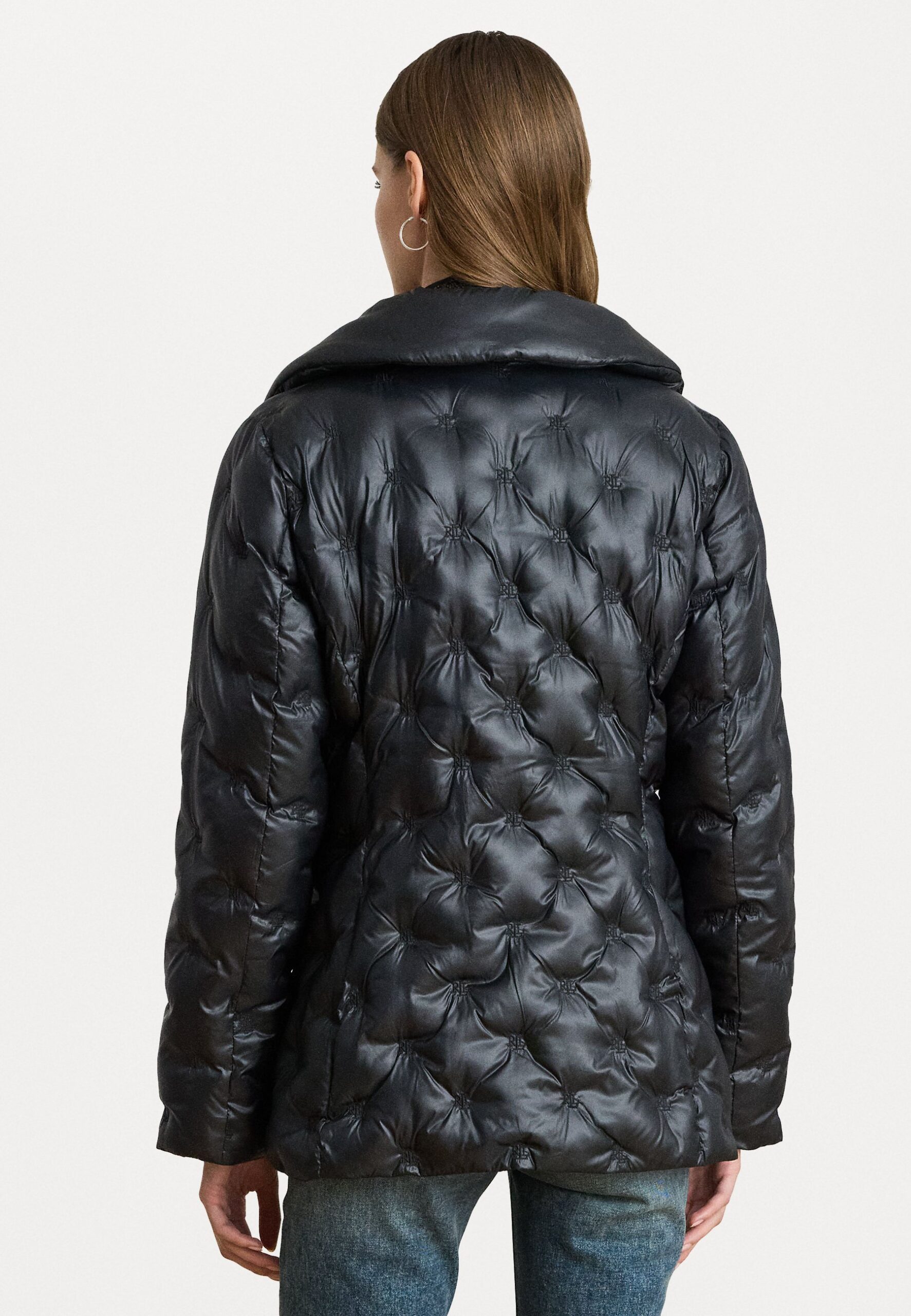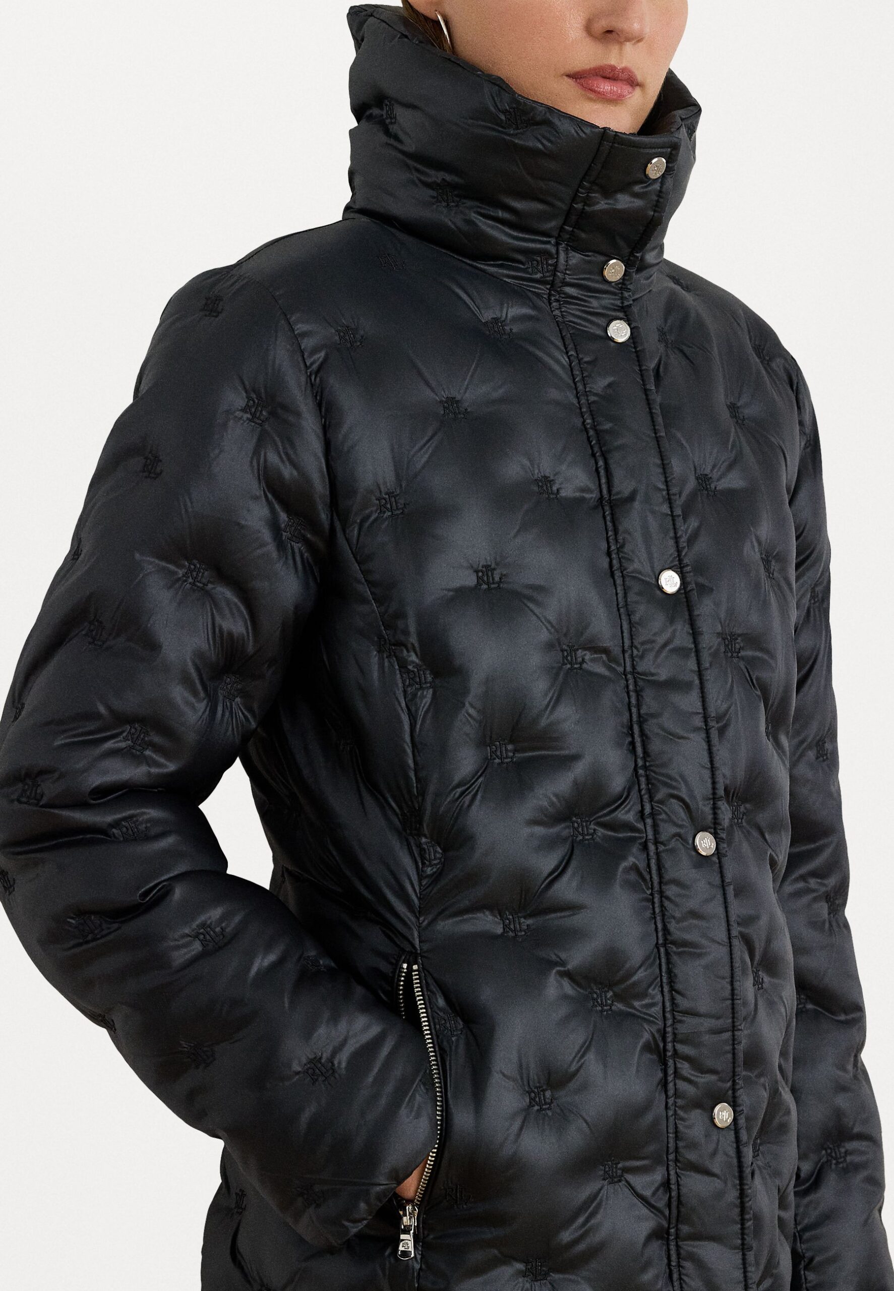 LOGO QUILTED FUNNELNECK PUFFER COAT – Winter jacket – black