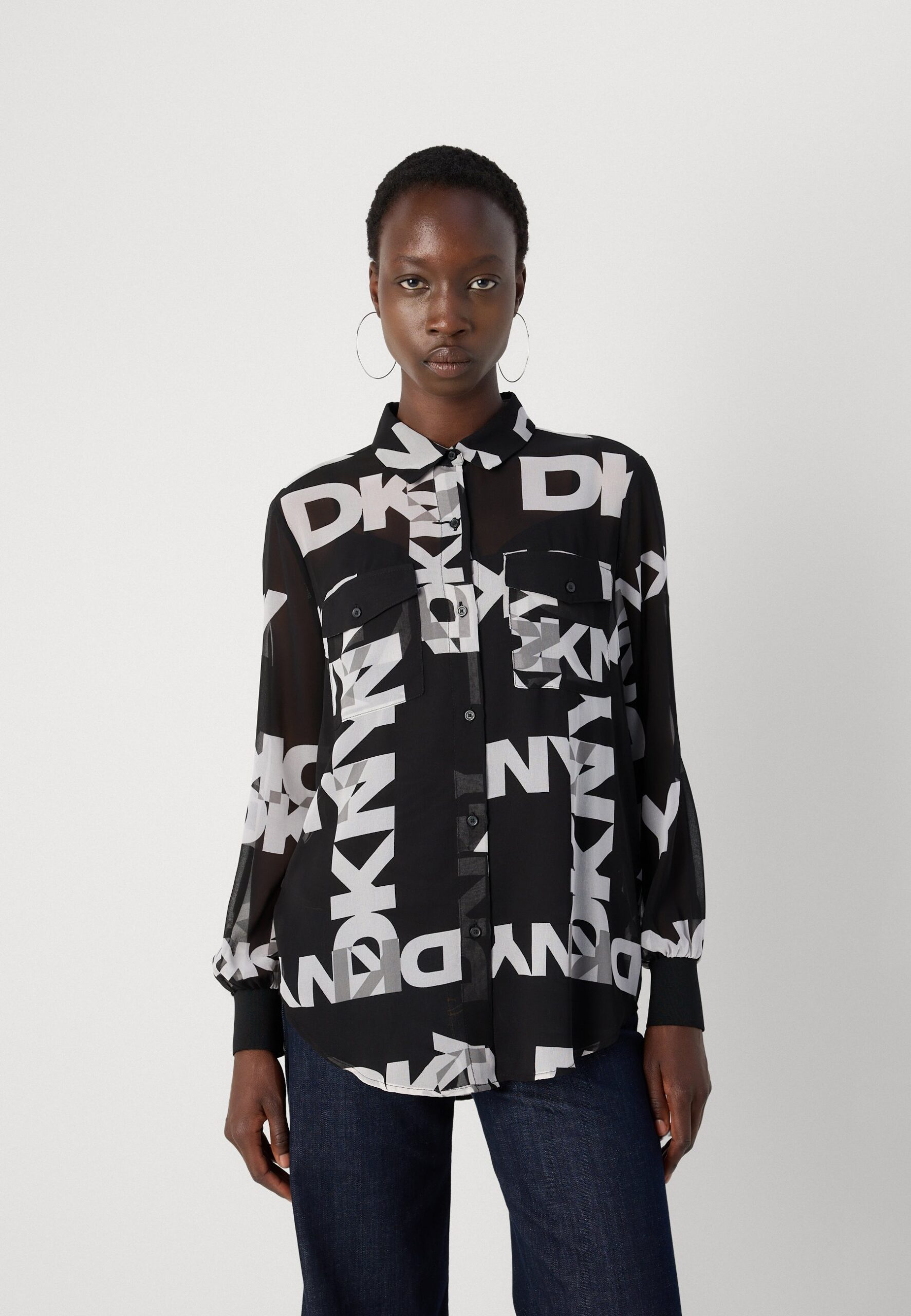 LOGO SHIRT – Button-down blouse – black/ivory