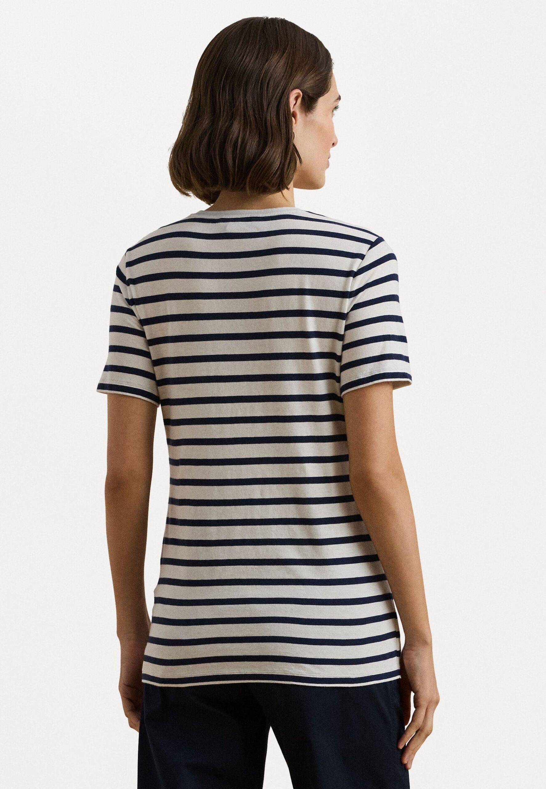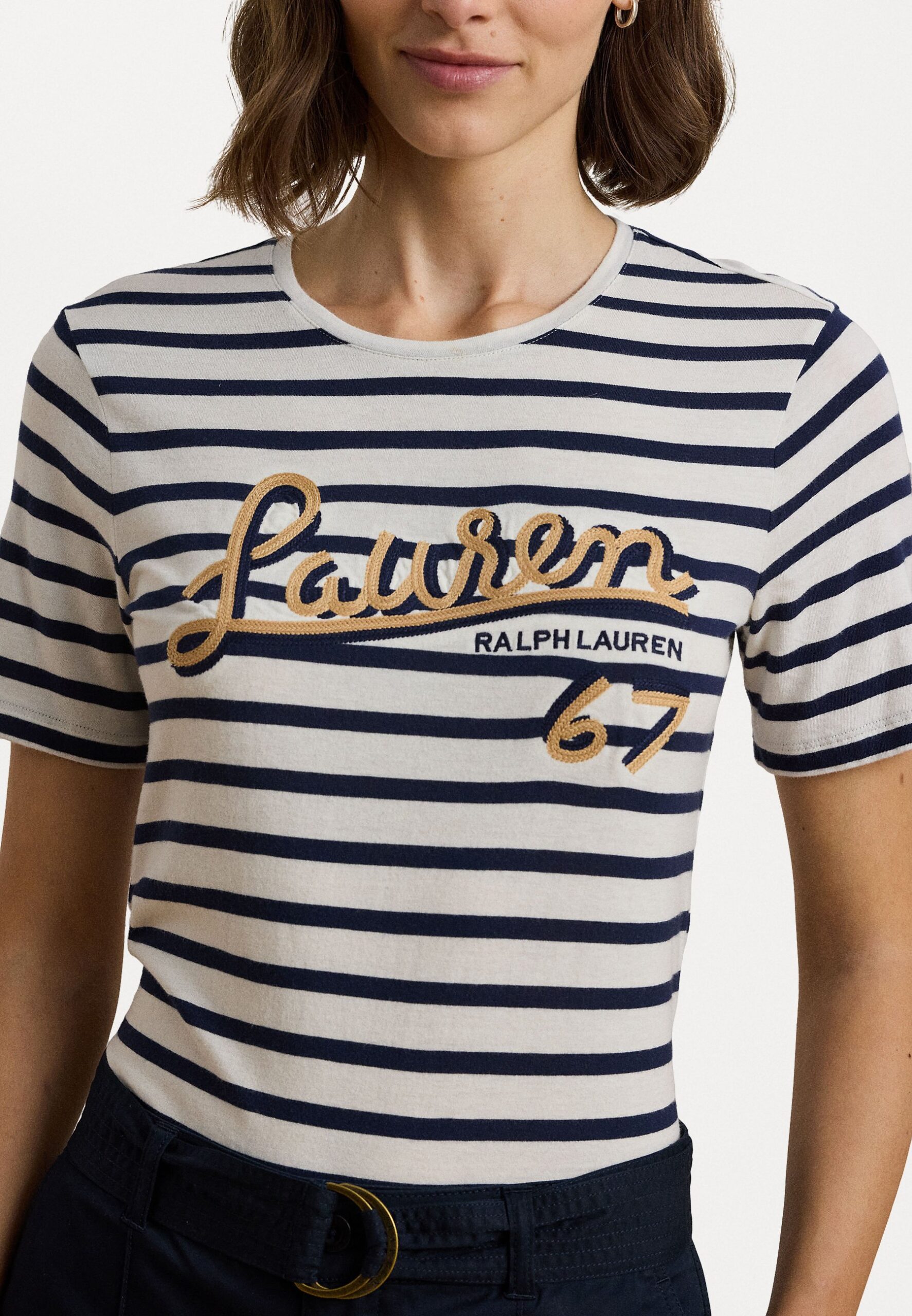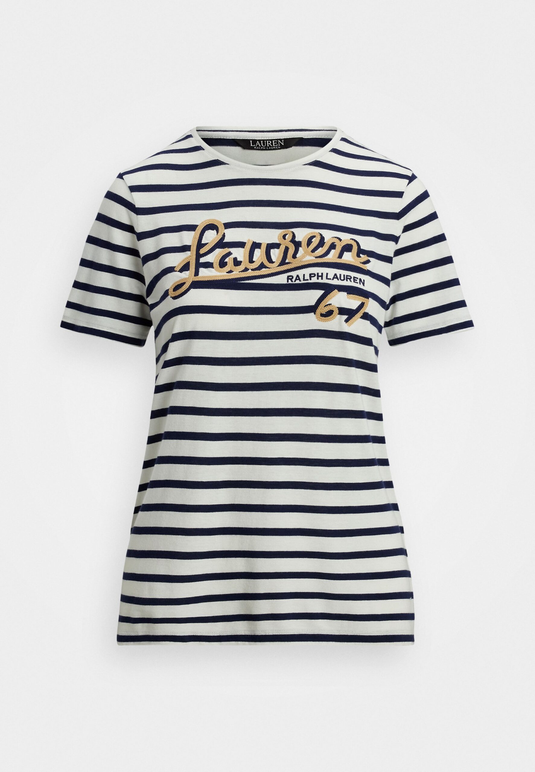 LOGO STRIPED COTTON BLEND JERSEY TEE – Print T-shirt – white/refined navy