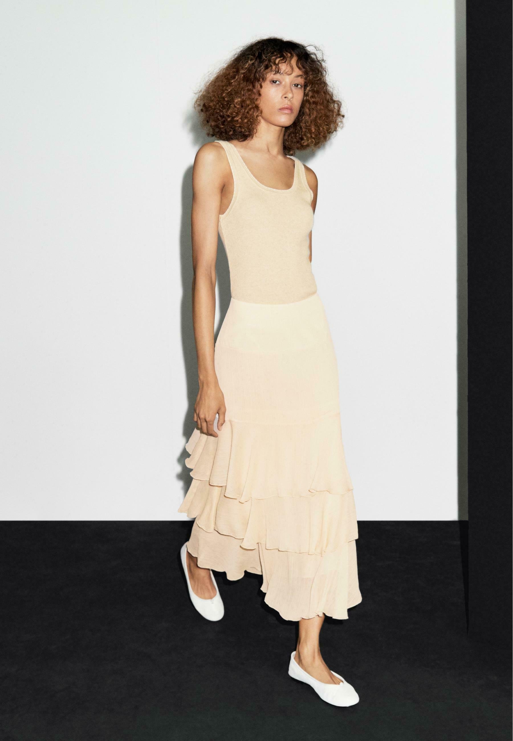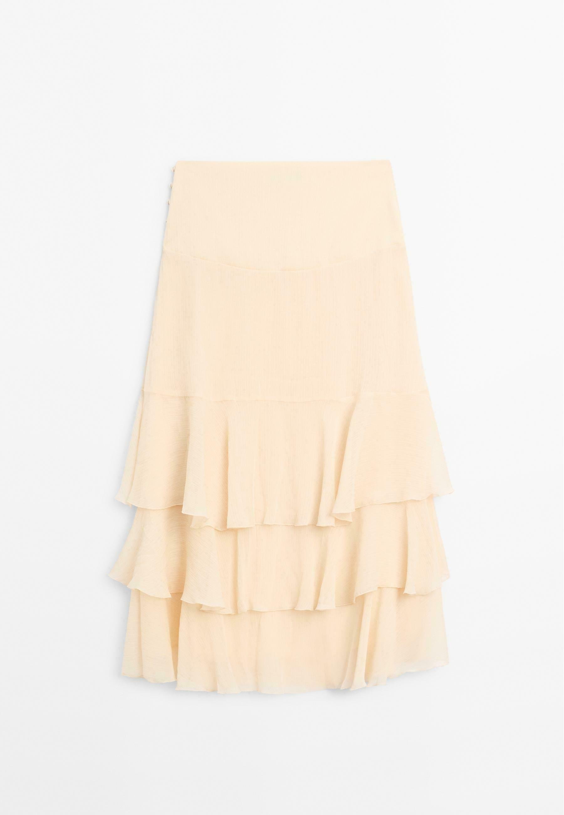 LONG RUFFLED WITH SASH – A-line skirt – beige