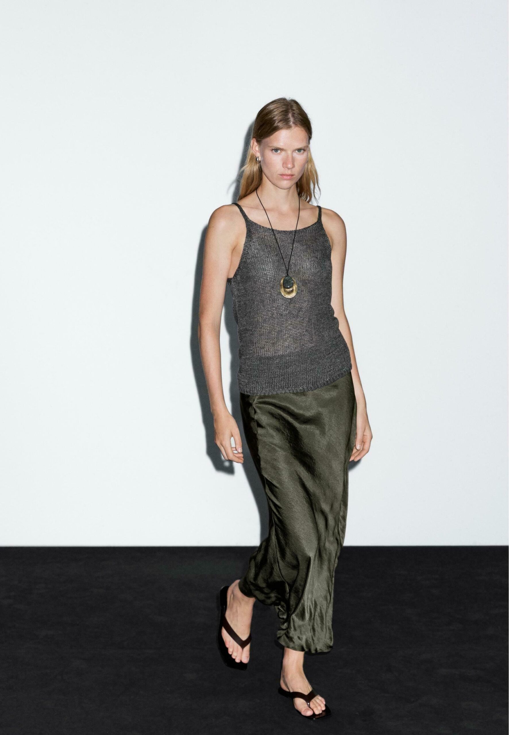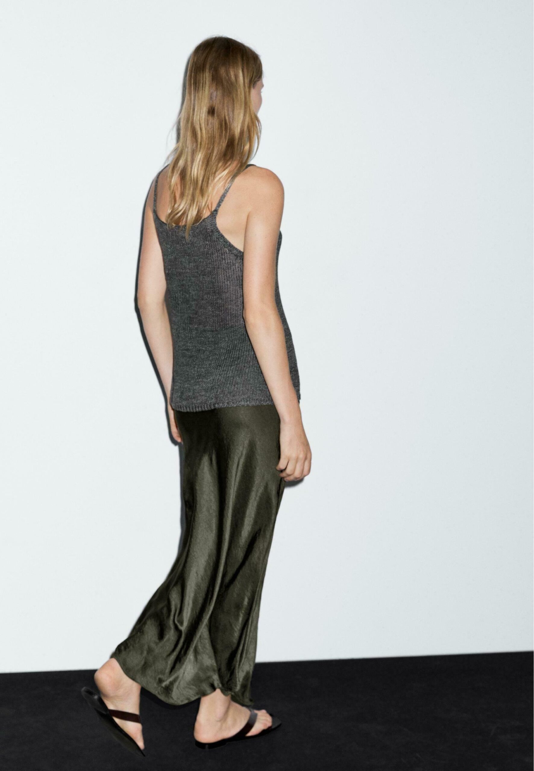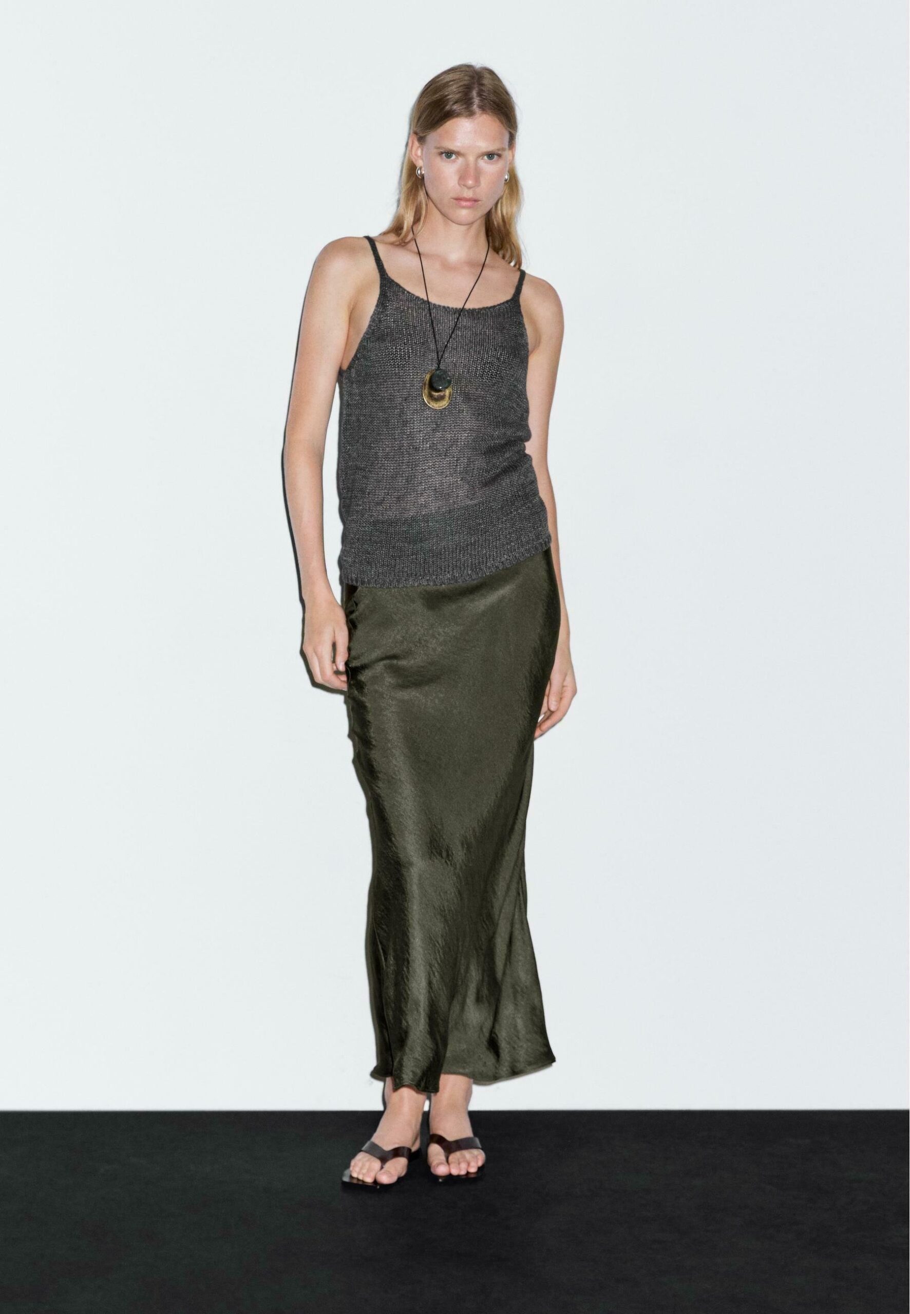 LONG SATIN – Maxi skirt – mottled dark green