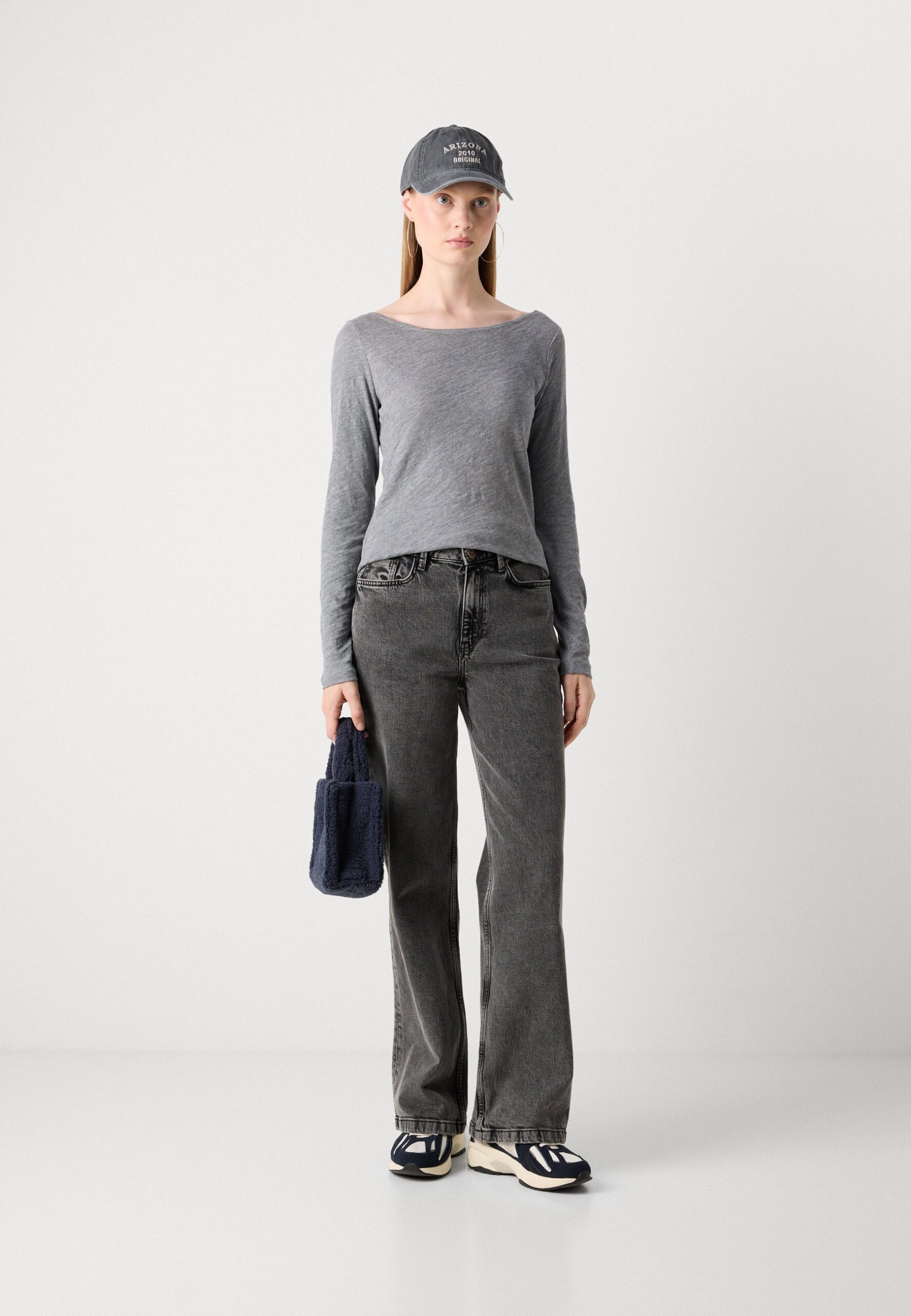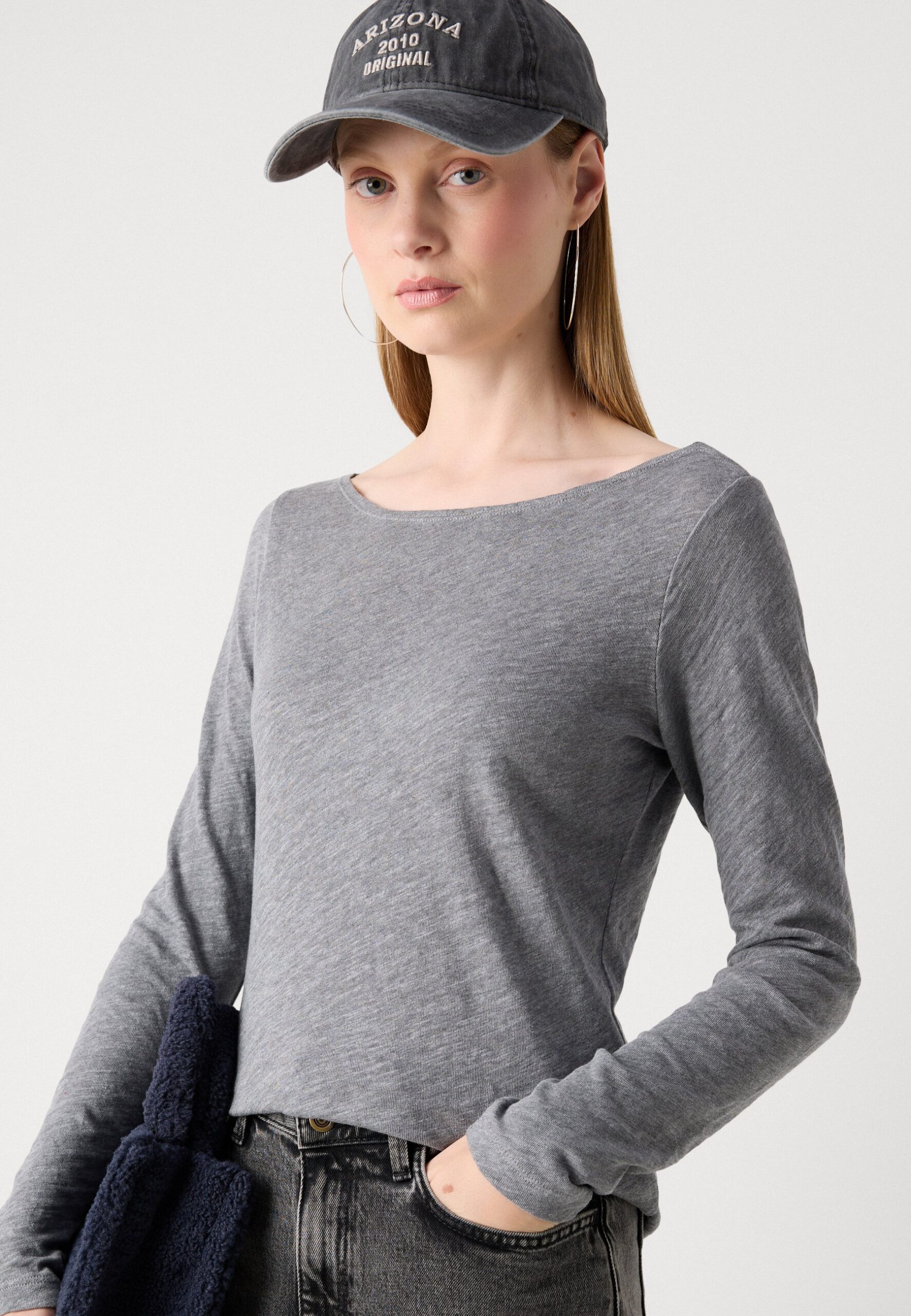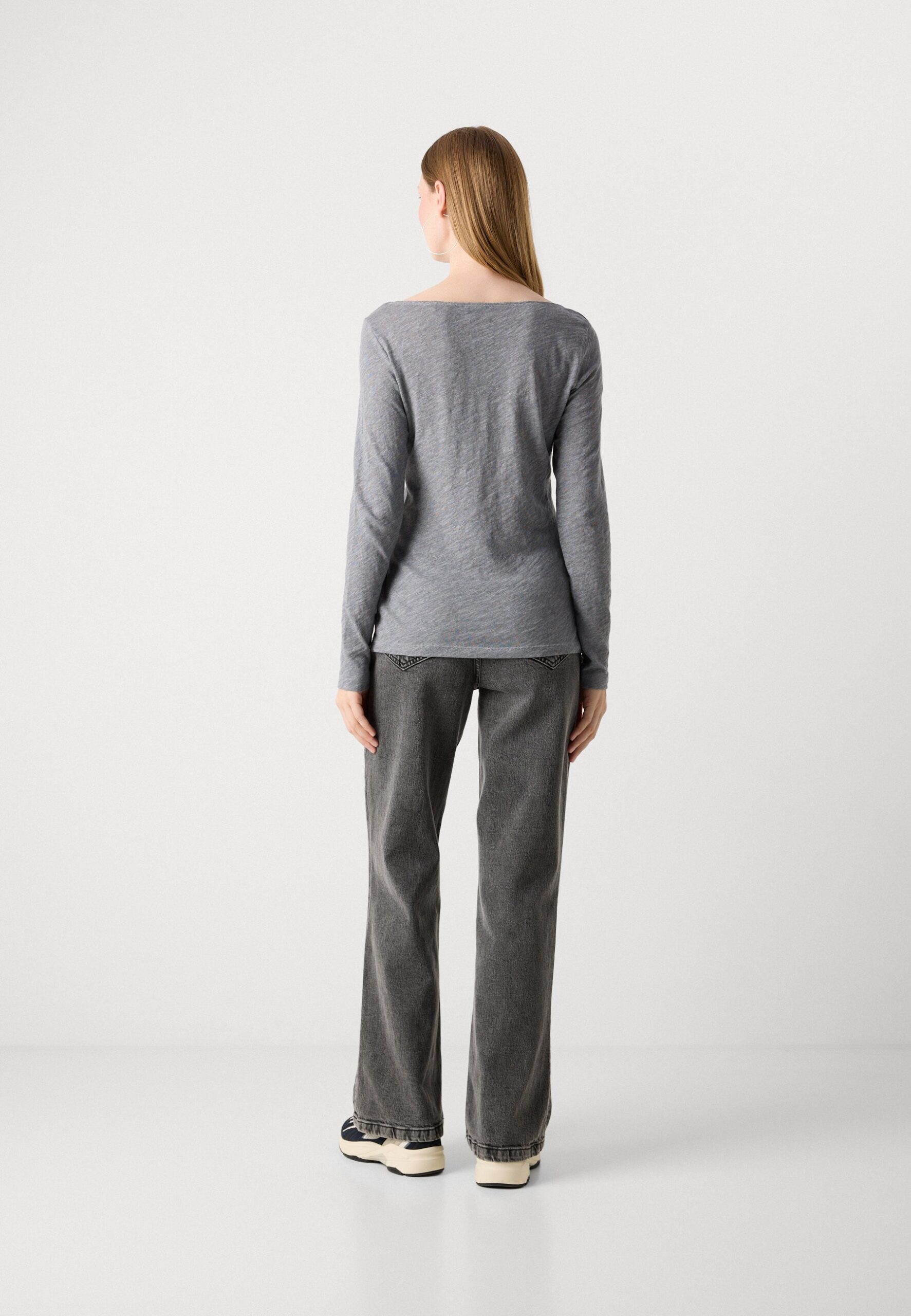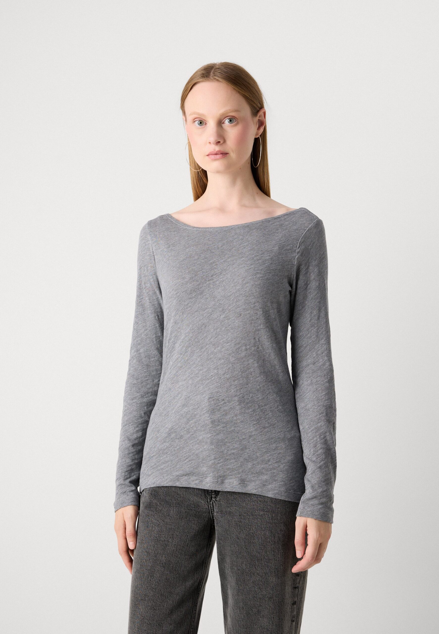LONG SLEEVE BOAT NECK – Long sleeved top – grey granite melange