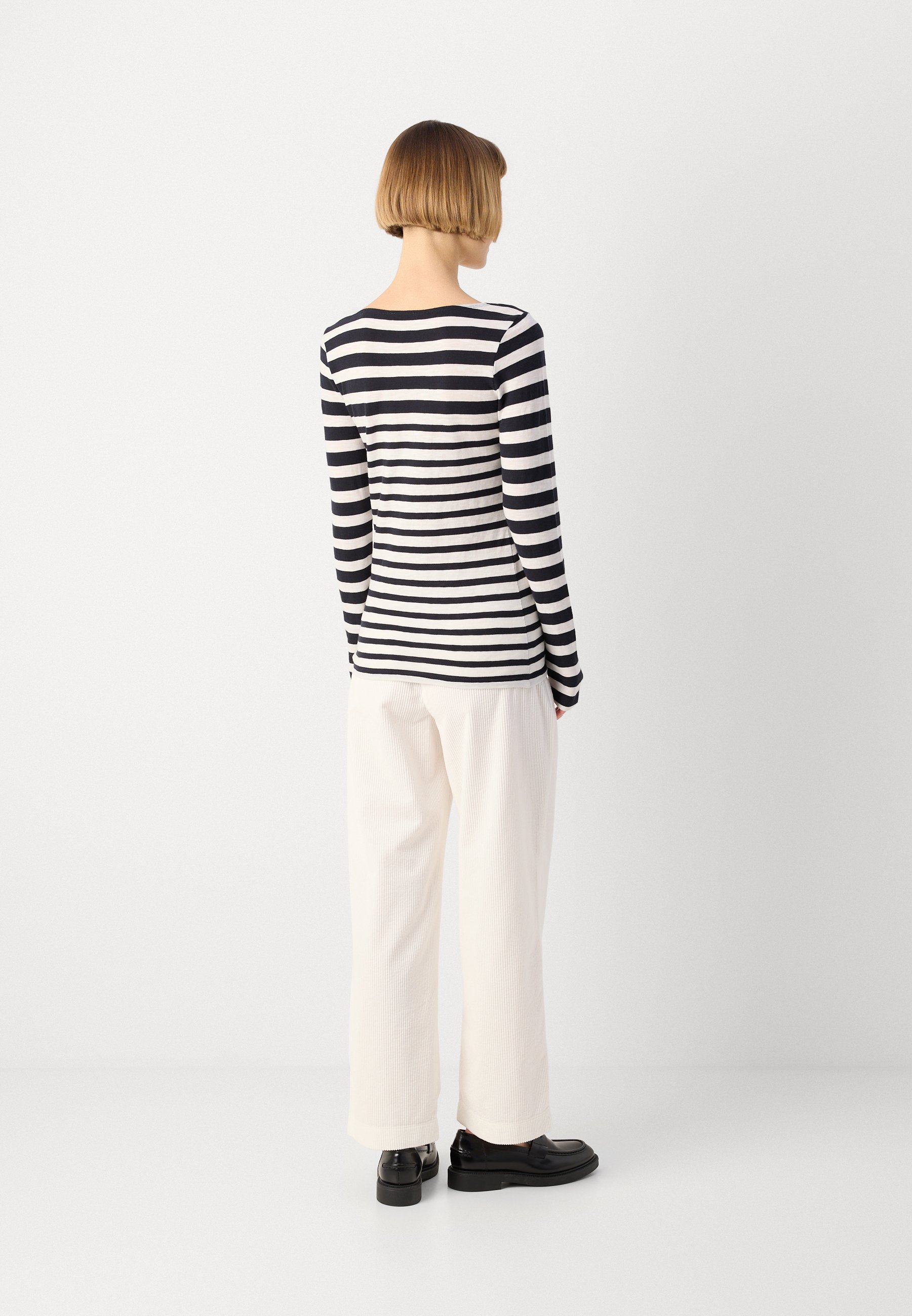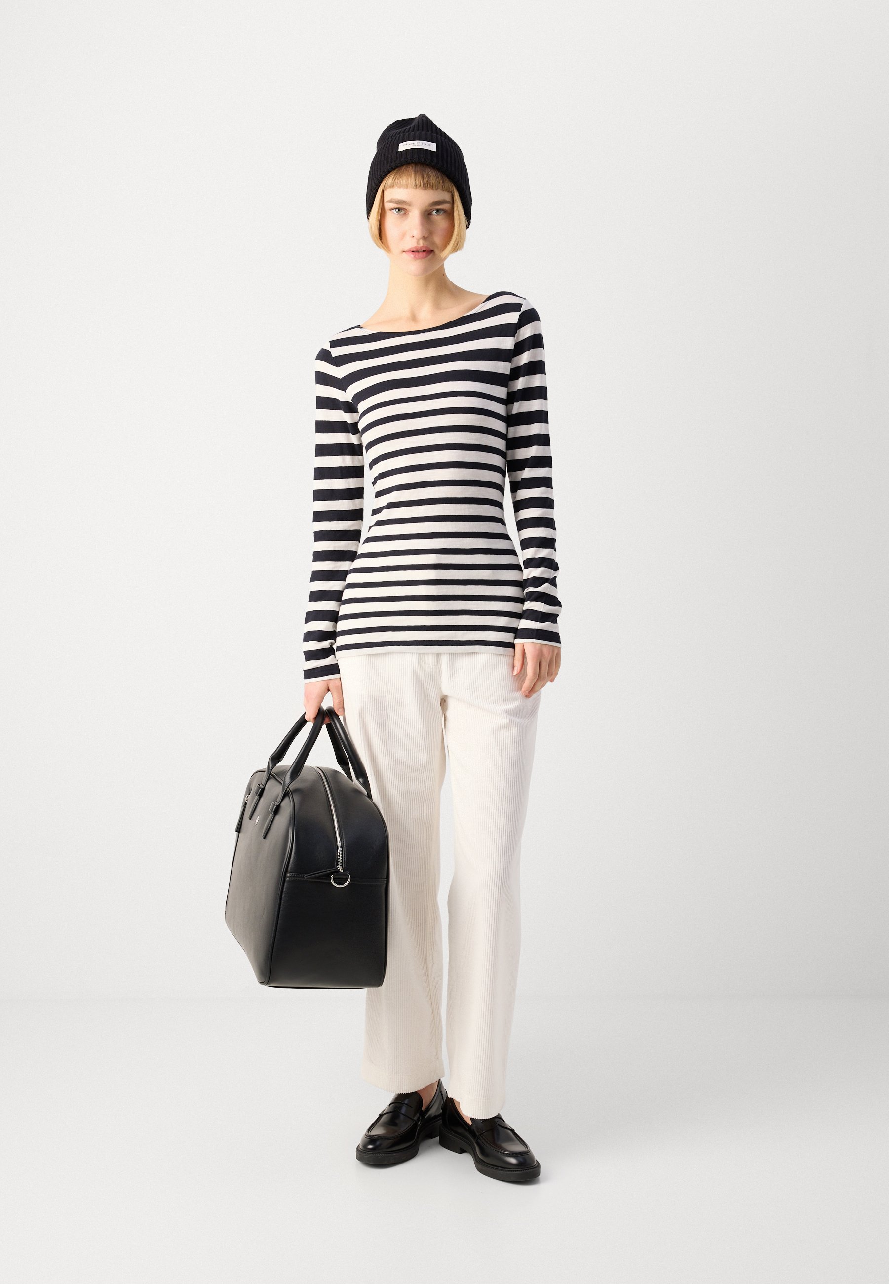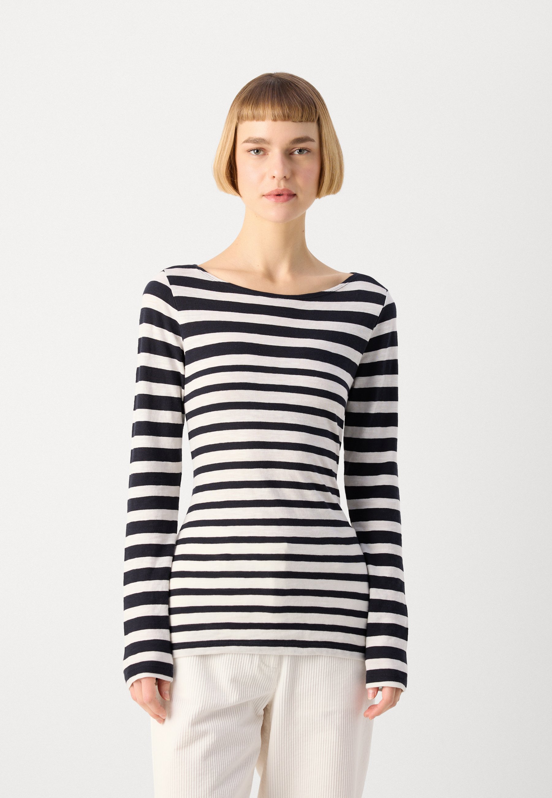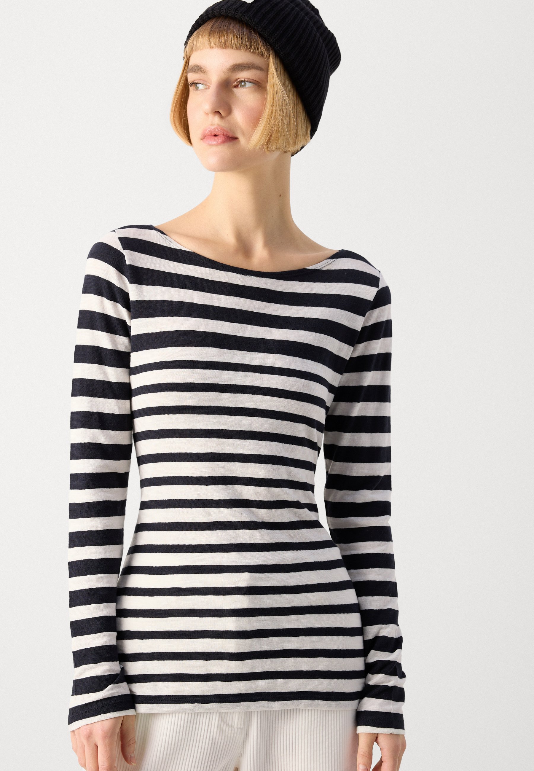 LONG SLEEVE BOAT NECK STRIPED – Long sleeved top – black/white