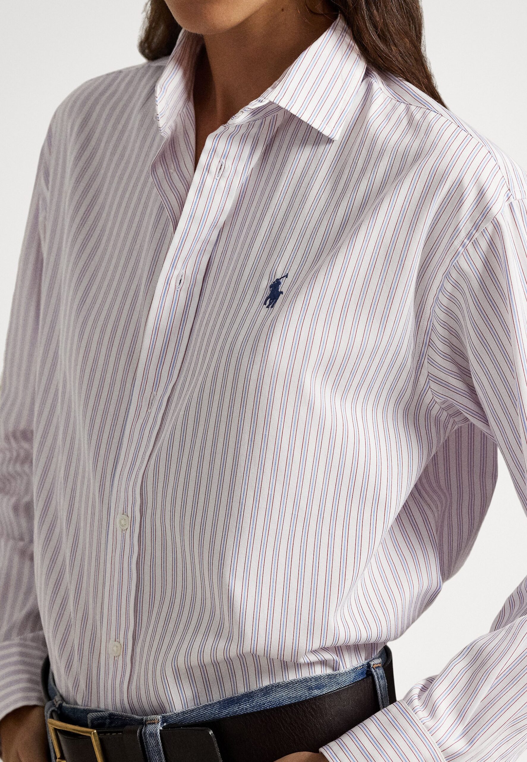 RELAXED FIT STRIPED COTTON SHIRT – Button-down blouse – white/red/blue