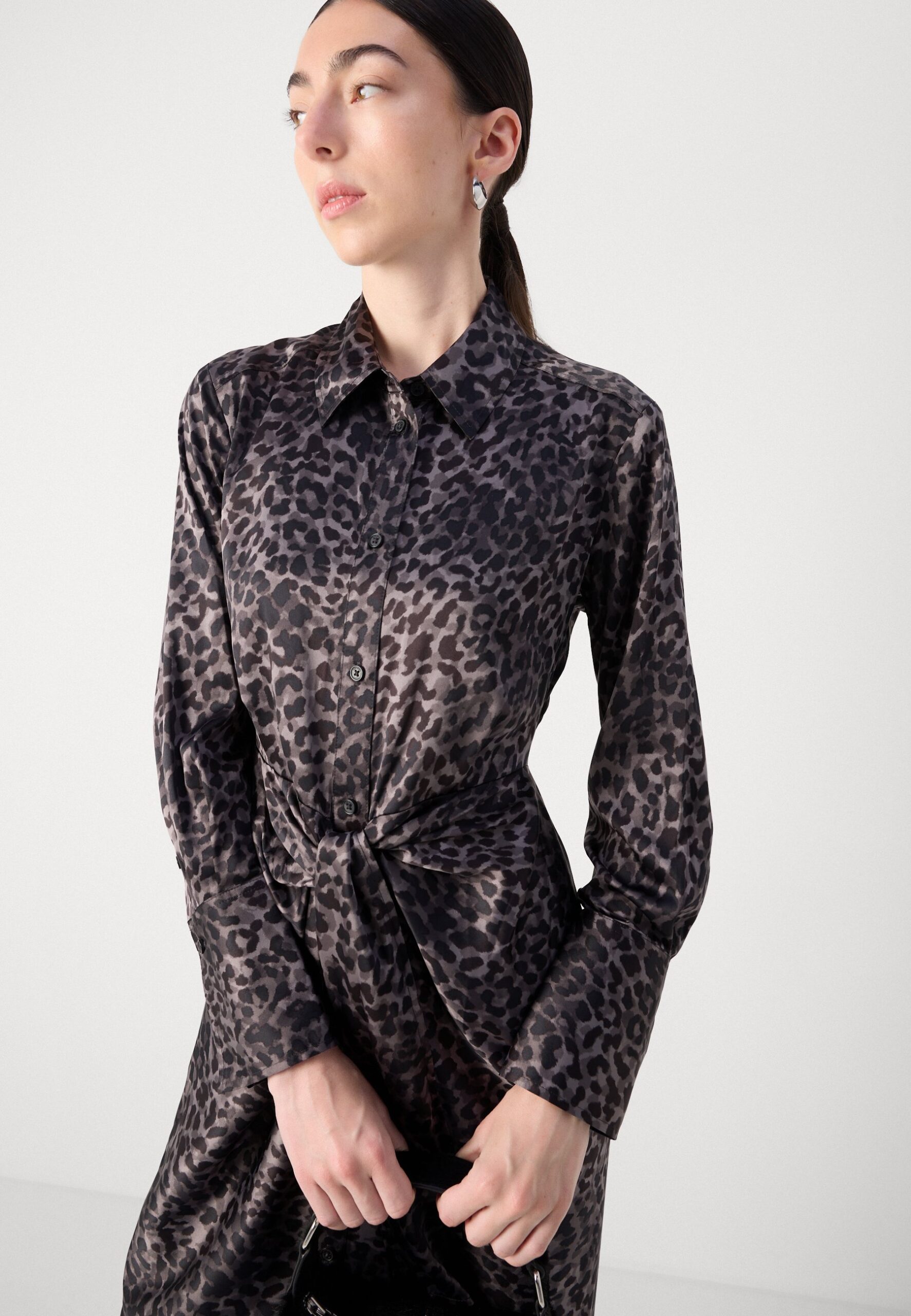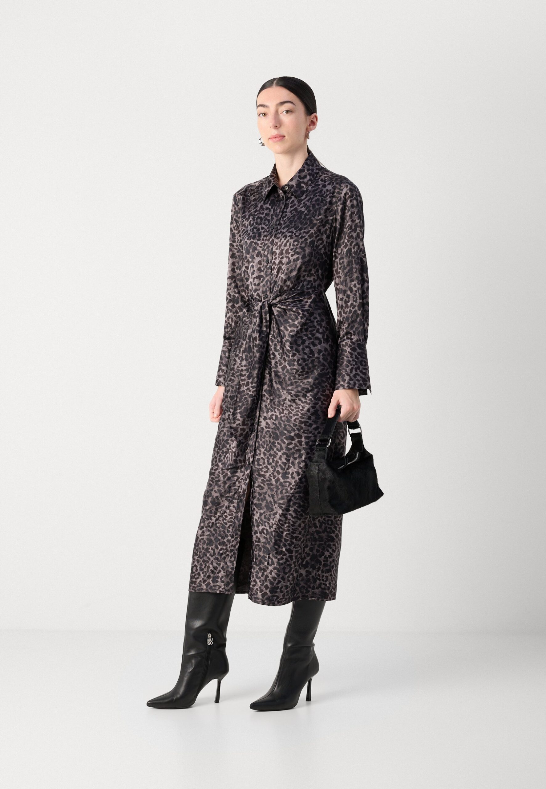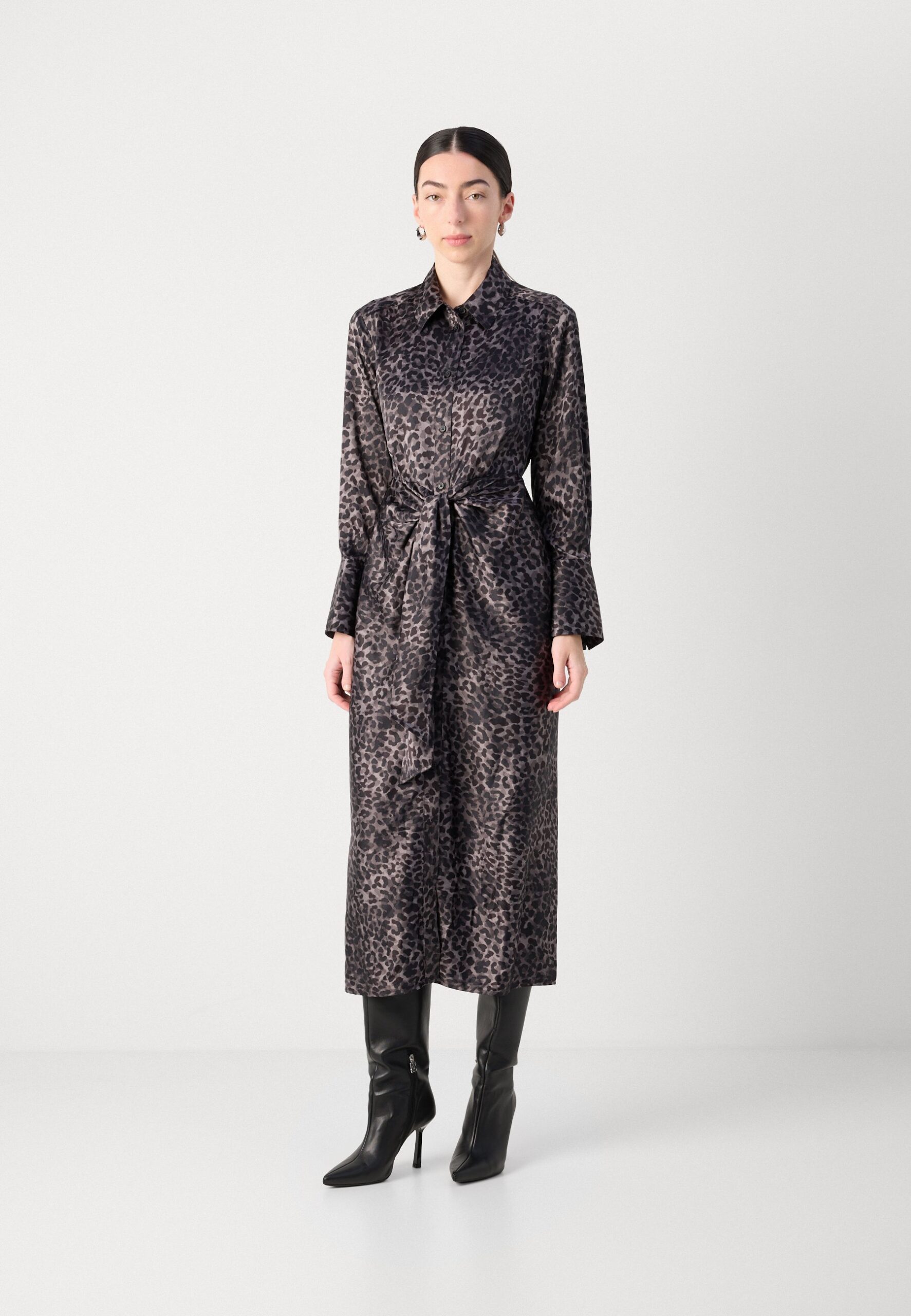 LONG SLEEVE BUTTON FRONT SHIRT DRESS TIE AT WAIST – Shirt dress – disguise black