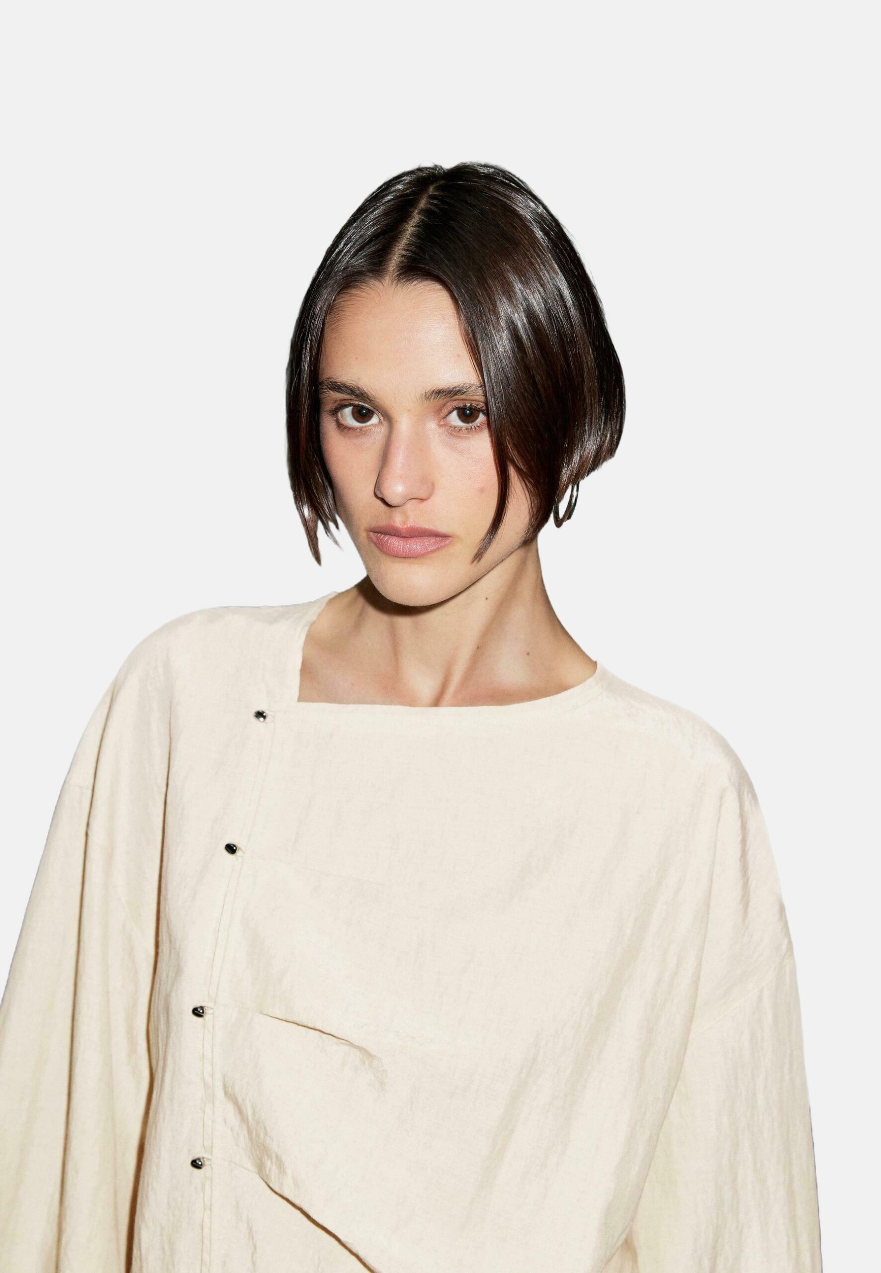 LONG SLEEVE GARMENT WITH SIDE BUTTON FASTENING – Blouse – beige